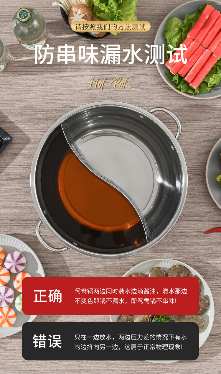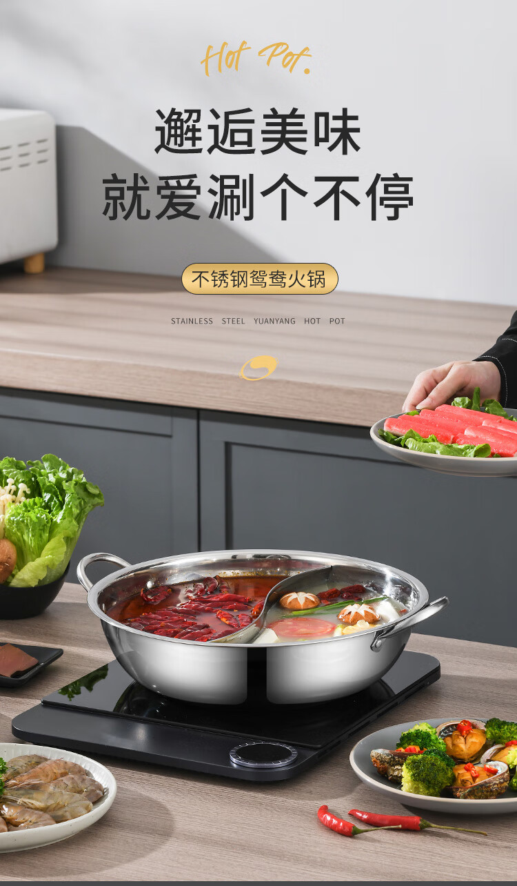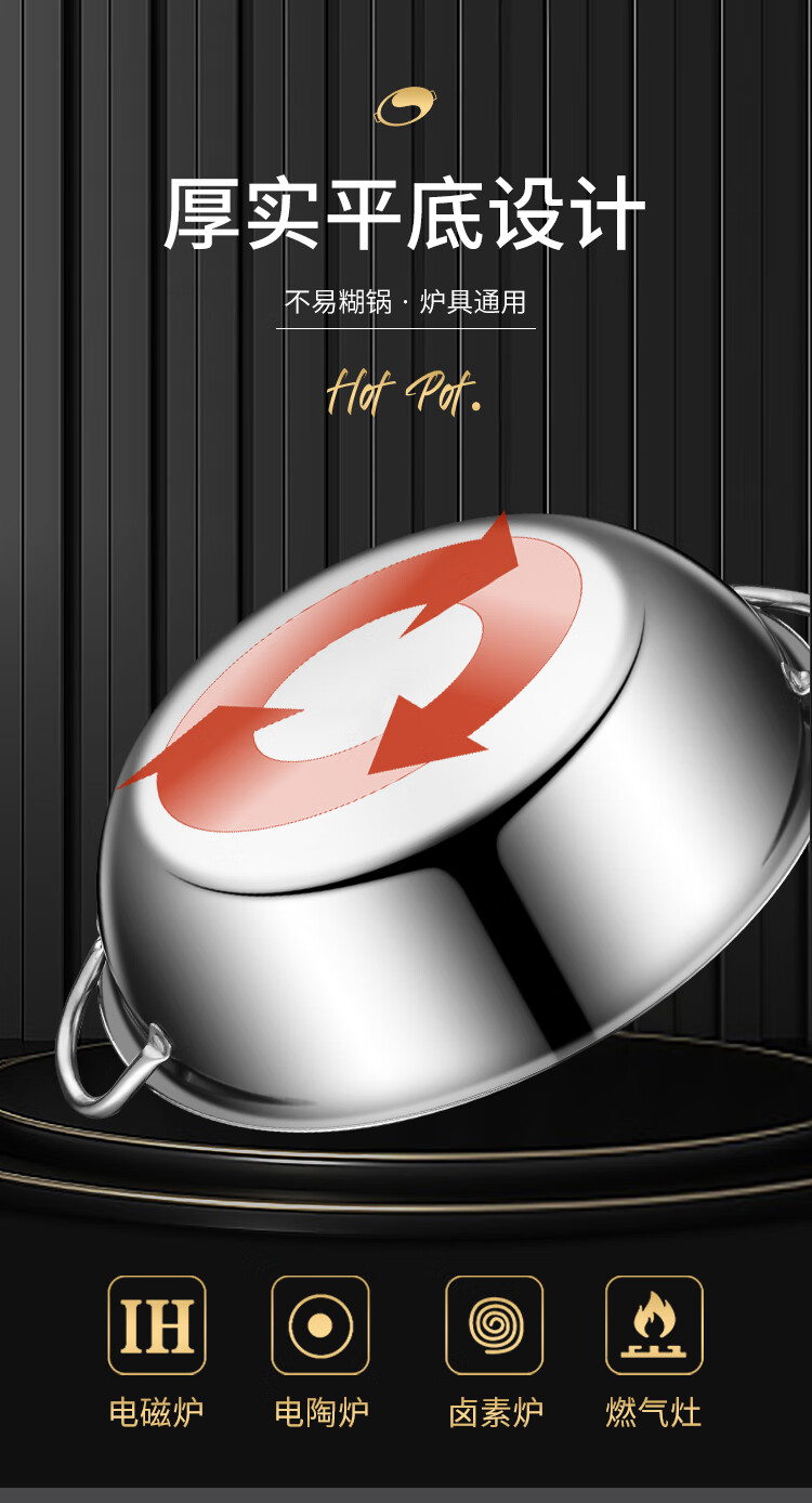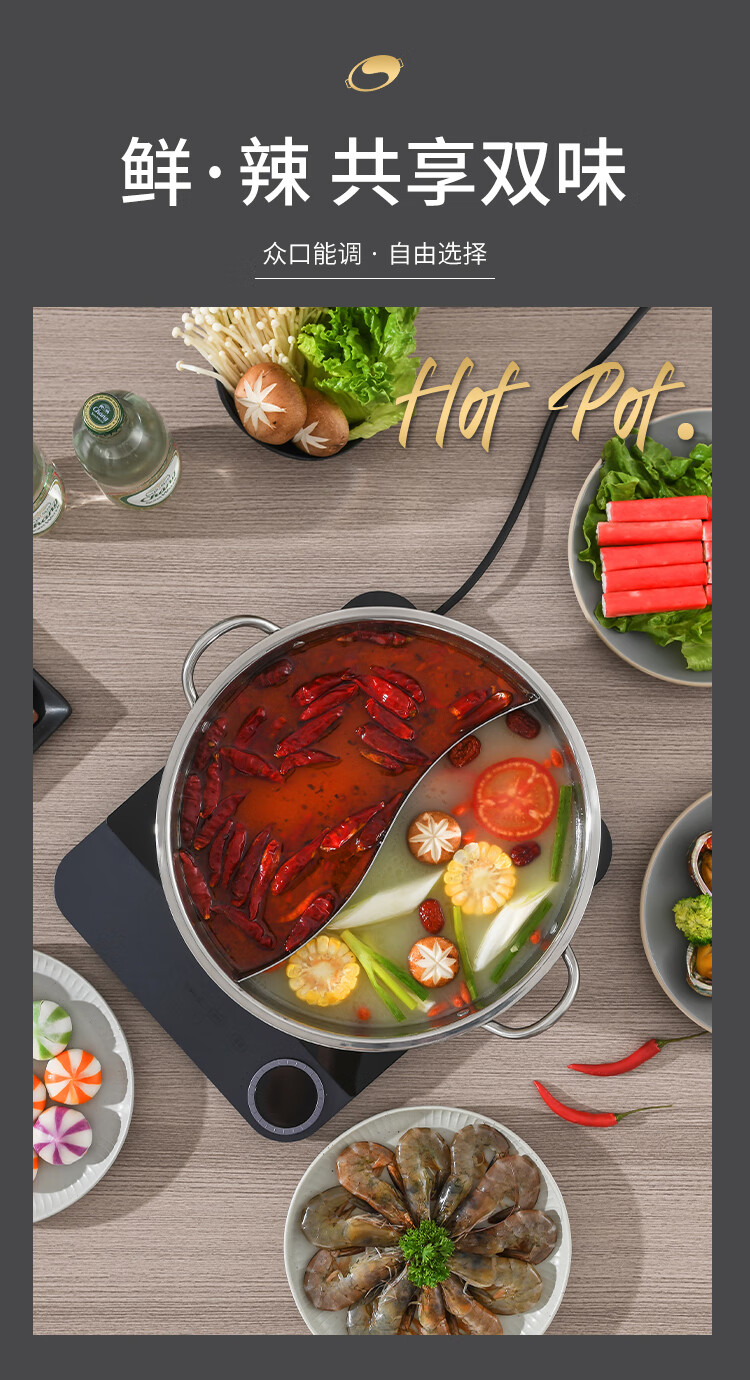 拜格(BAYCO)鸳鸯锅30CM大容量火锅专用锅具汤锅电磁炉用煤燃气灶涮锅BG1517