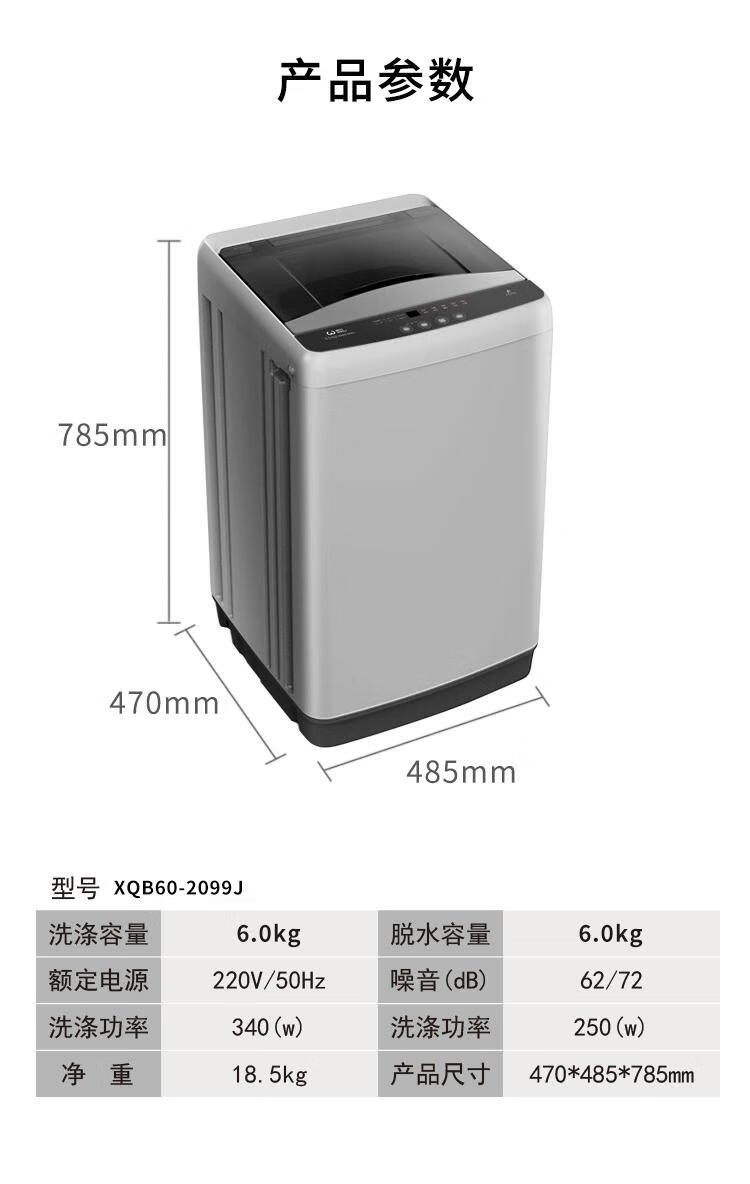 威力【租房推荐】威力6KG波轮洗衣机出租屋宿舍小容量家用XQB60-2099J