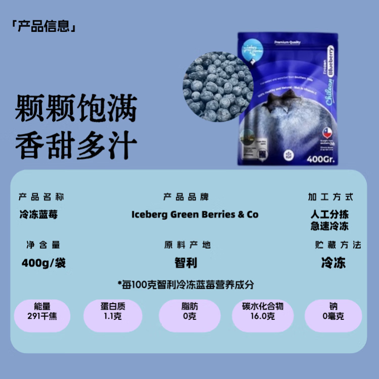 京鲜生有机蓝莓智利原装进口冷冻蓝莓生鲜水果400g