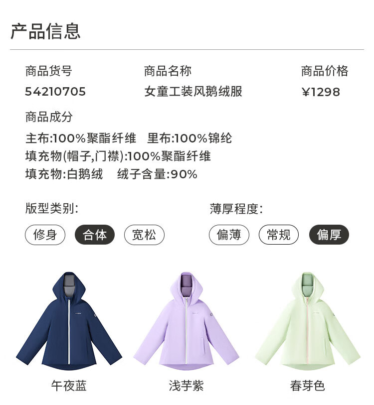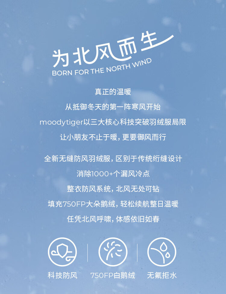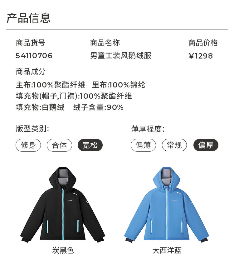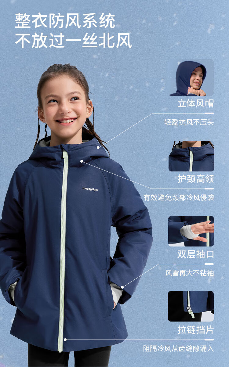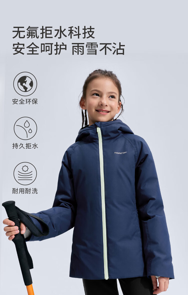 moodytiger儿童羽绒服防风拒水25年冬新品男女童鹅绒服保暖工装风户外运动服