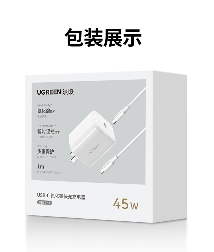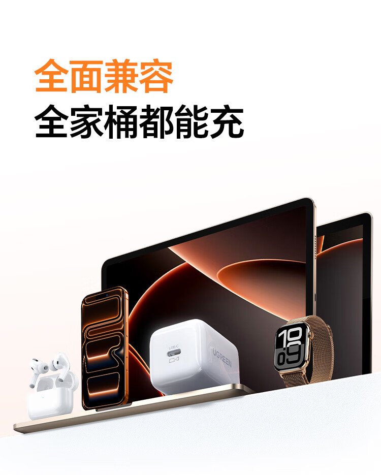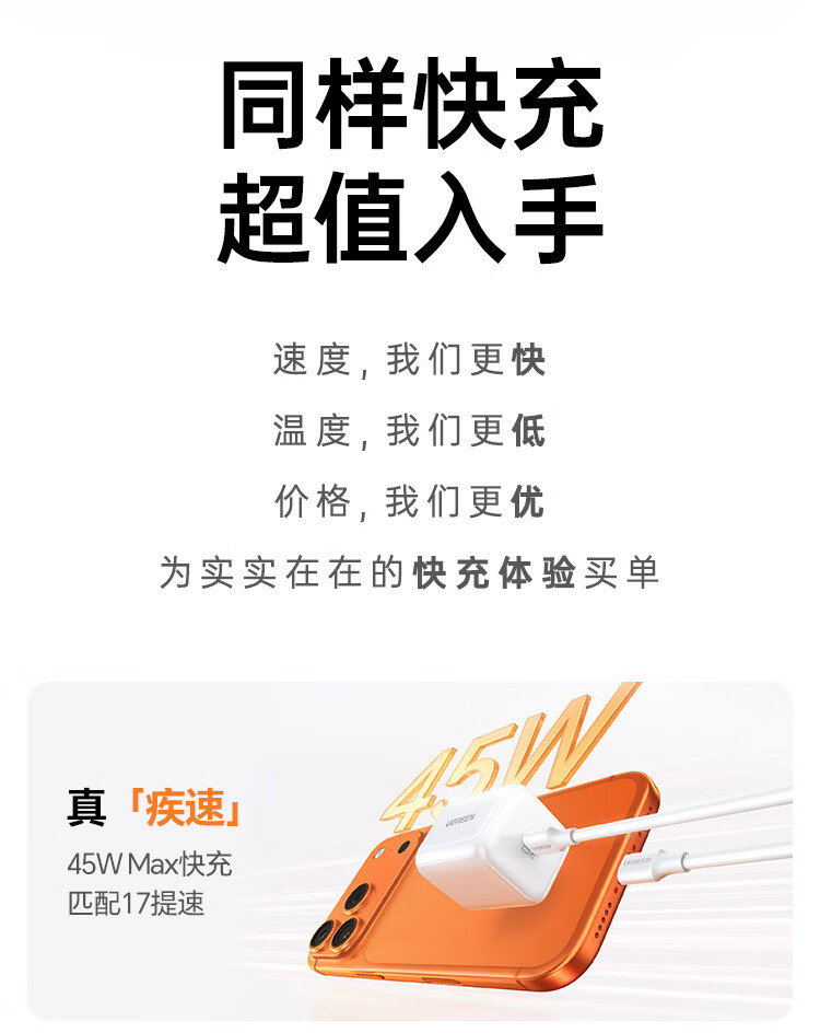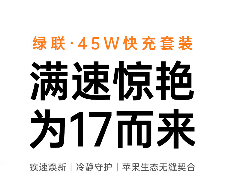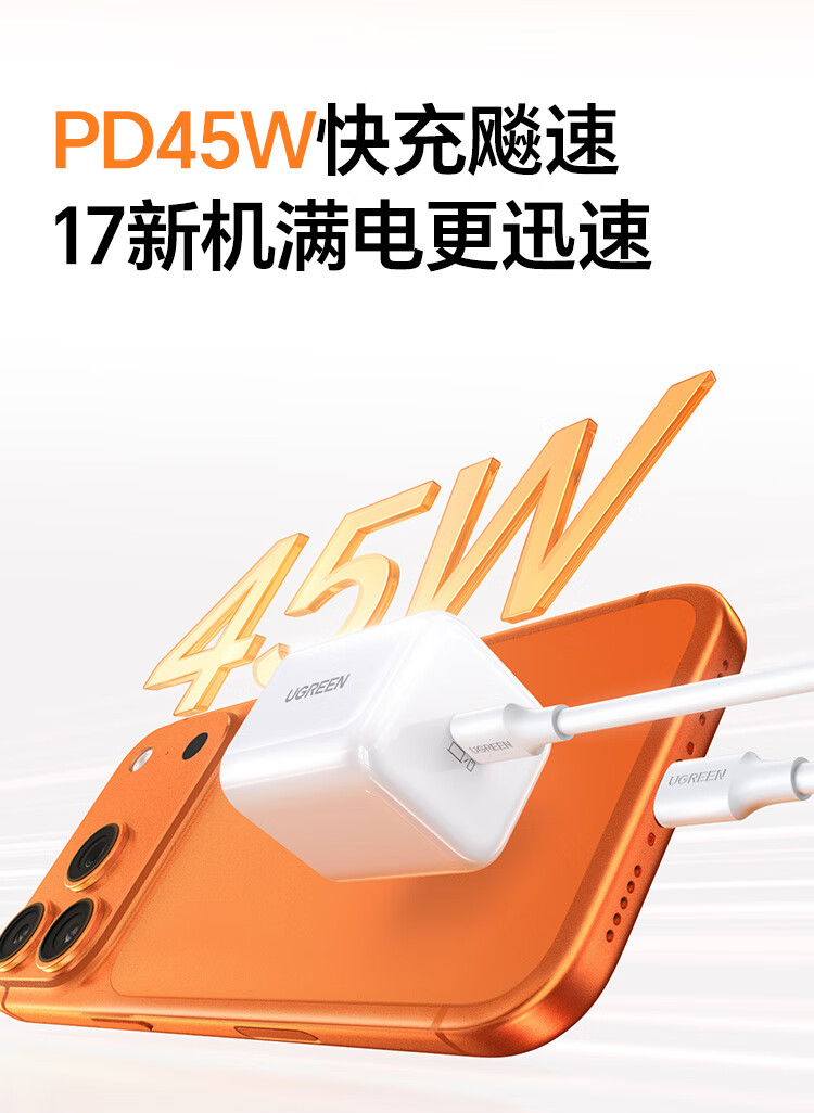 绿联45W适用苹果17充电器套装iPhone17/16ProMax/plus/Air手机PD40W氮化镓快充头Type-C数据线ipad插头