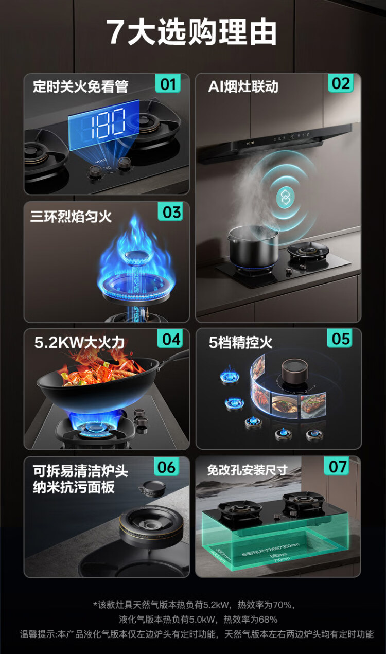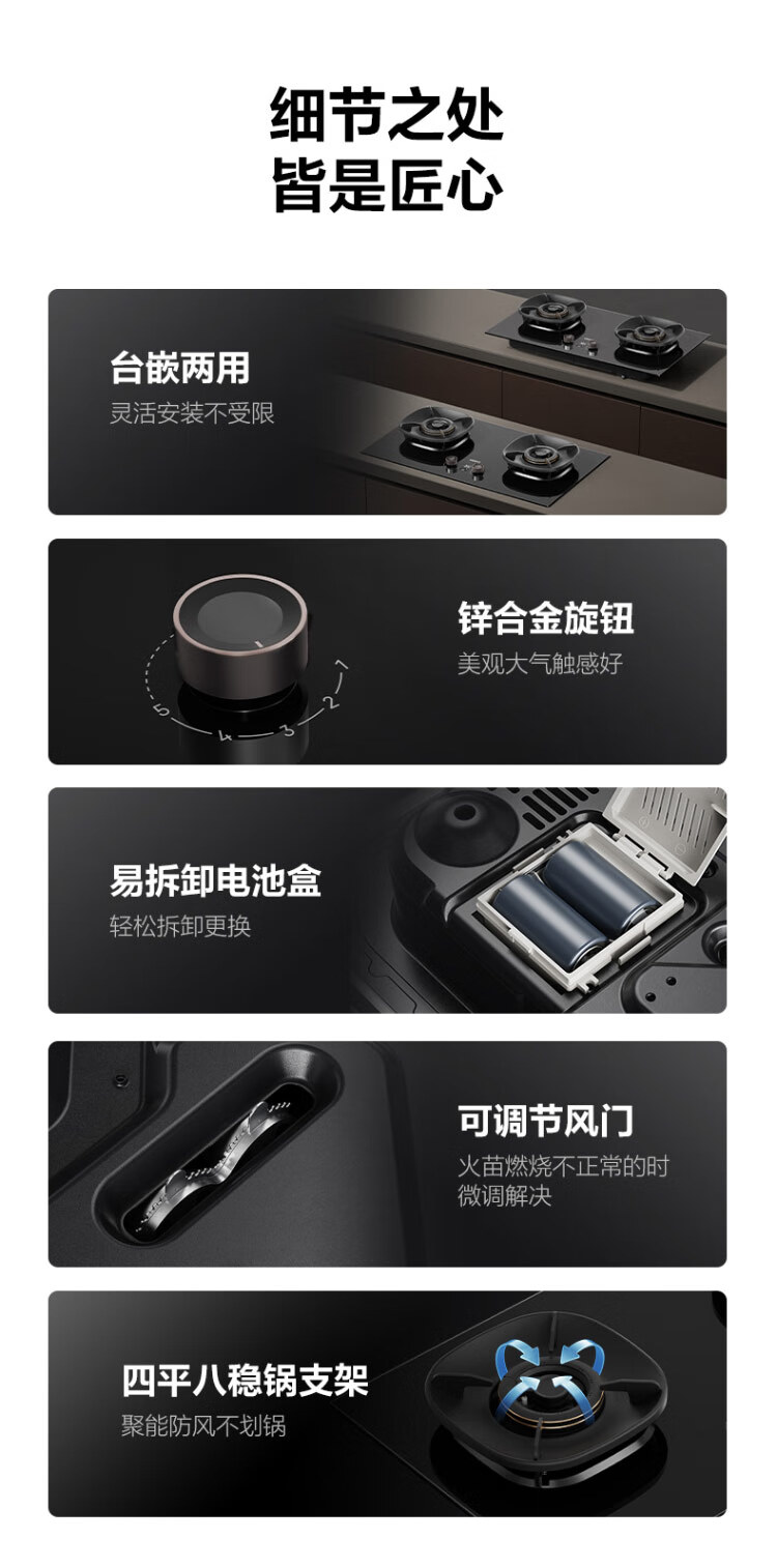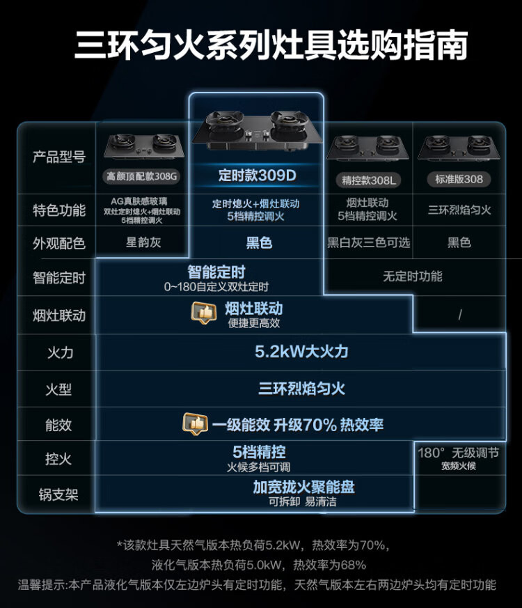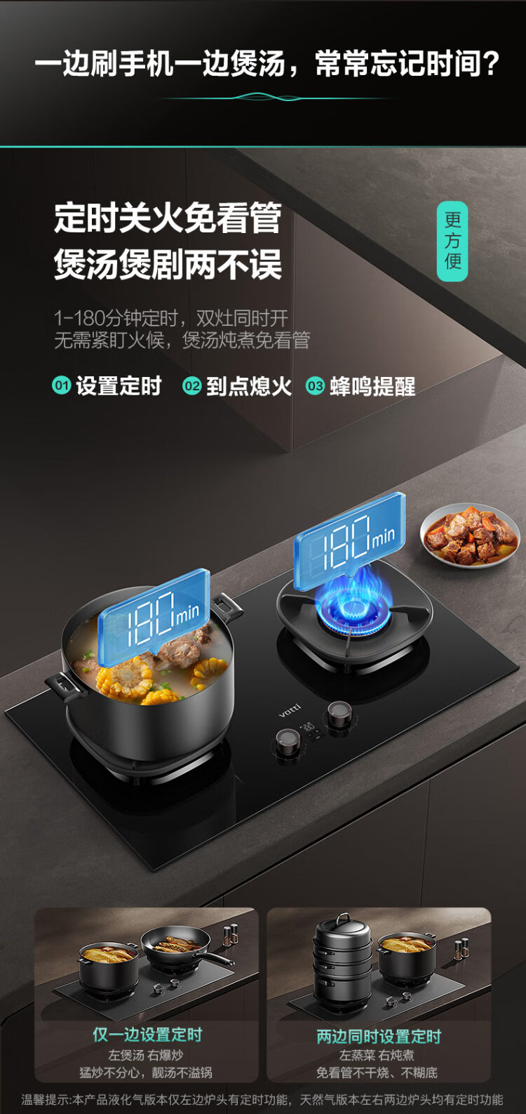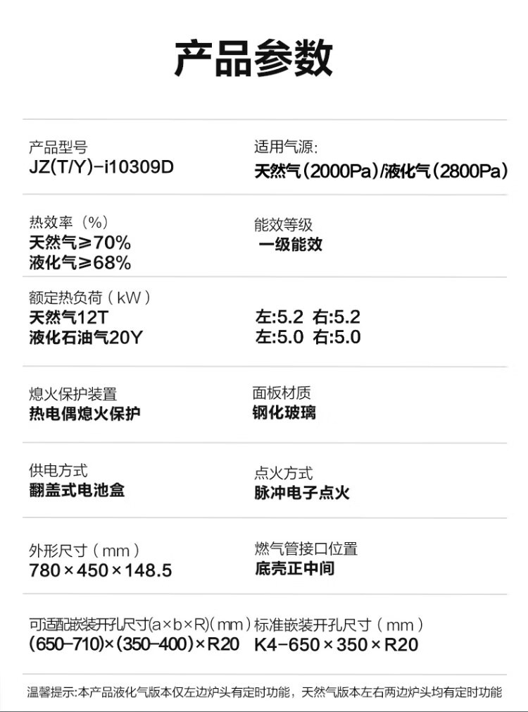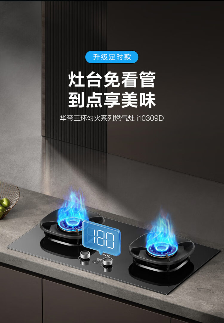 华帝(VATTI)燃气灶【省气大师】国家补贴20%灶具天然气小飞翼小飞碟Max嵌入式台式两用双灶5.2kW猛火一级能效 i10309D 升级70%高热效+双定时+联动 天然气5.2kW