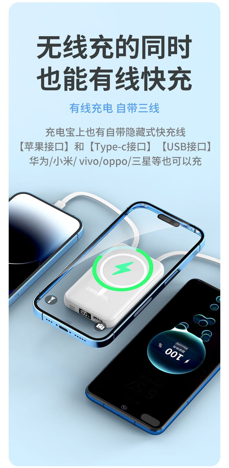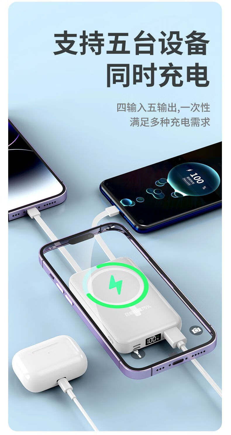 自带线苹果磁吸充电宝【3C认证】magsafe10000毫安适用苹果15-16手机快充移动电源