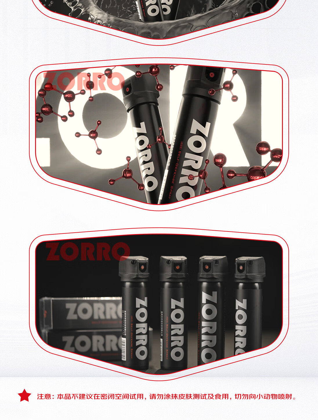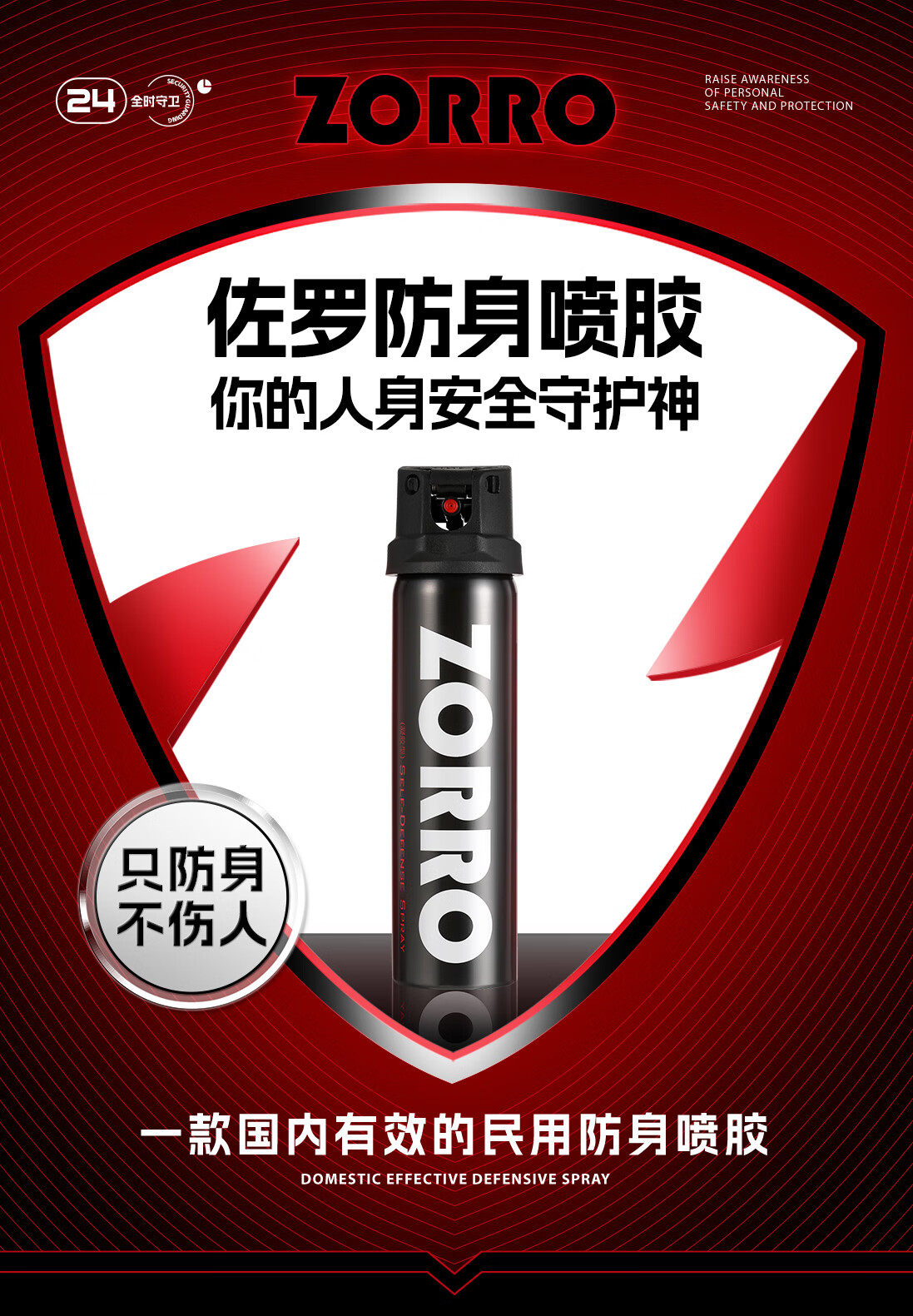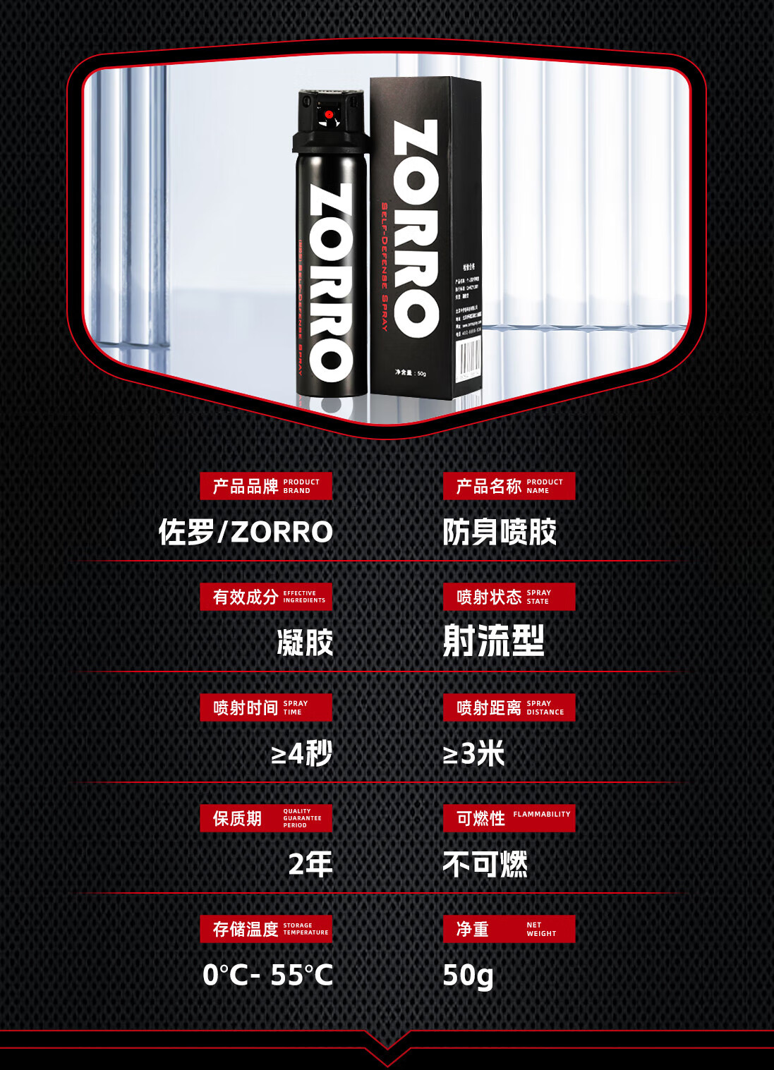 佐罗(ZORRO)骑士黑 防卫器剂防身防狼喷胶 防狼神器房车防身用品