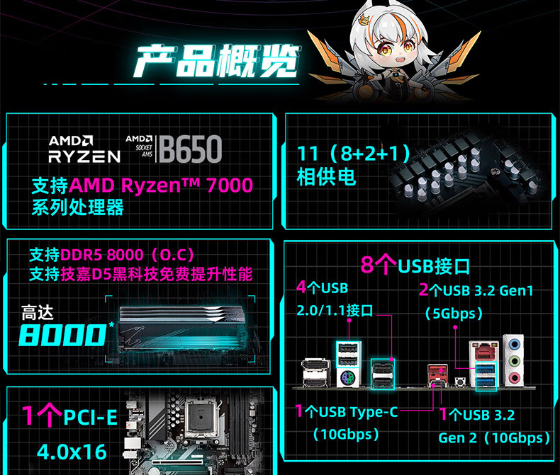 技嘉(GIGABYTE)B650M K主板DDR5支持AMD CPU AM5 7950X3D/7900X3D/7800X3D