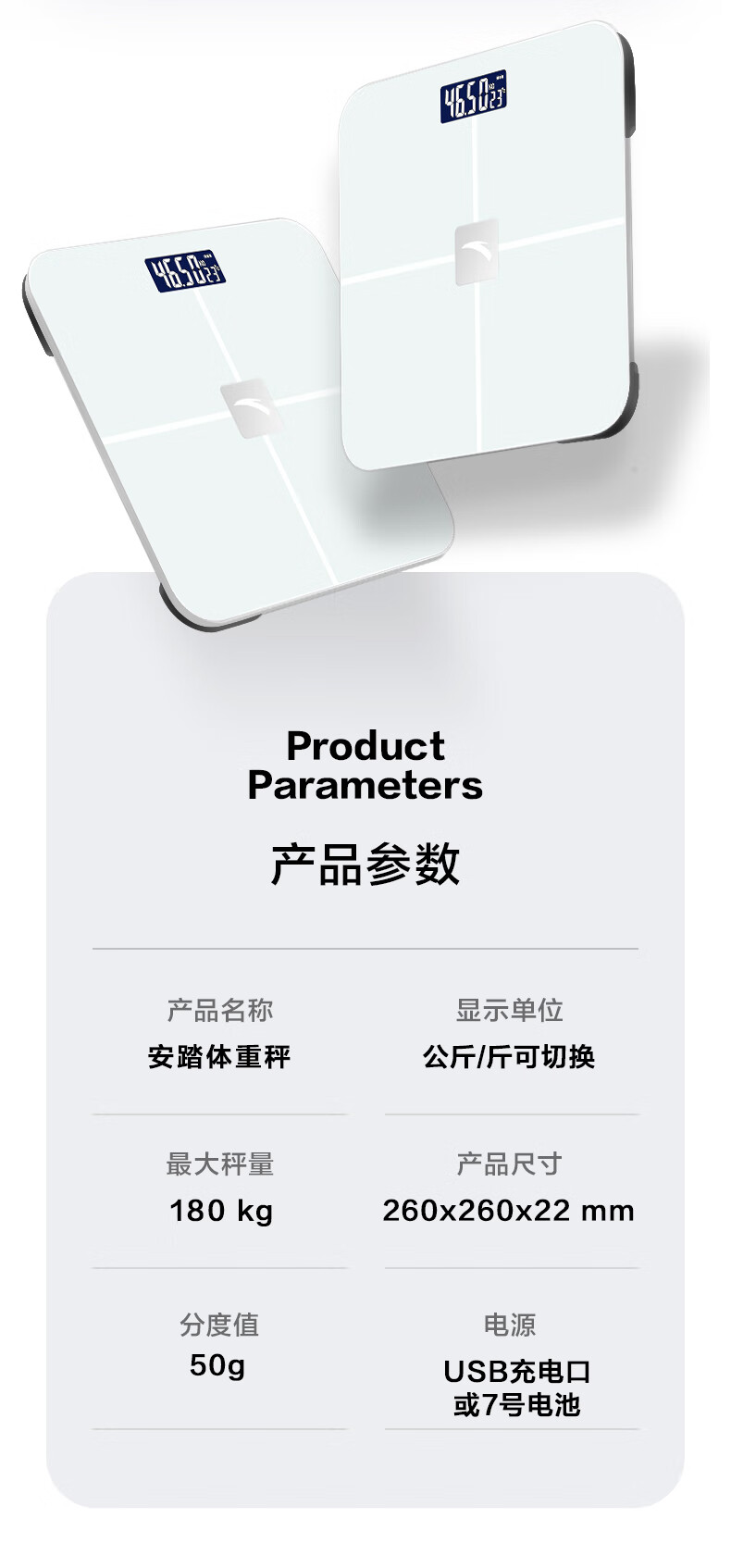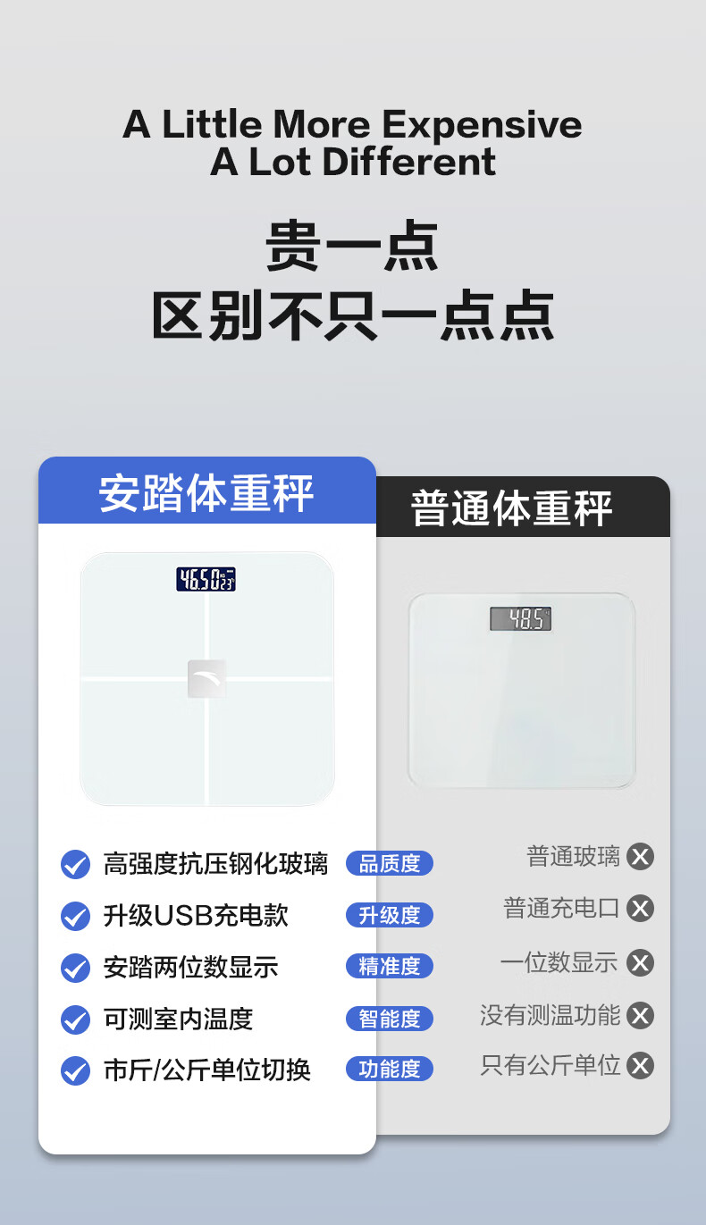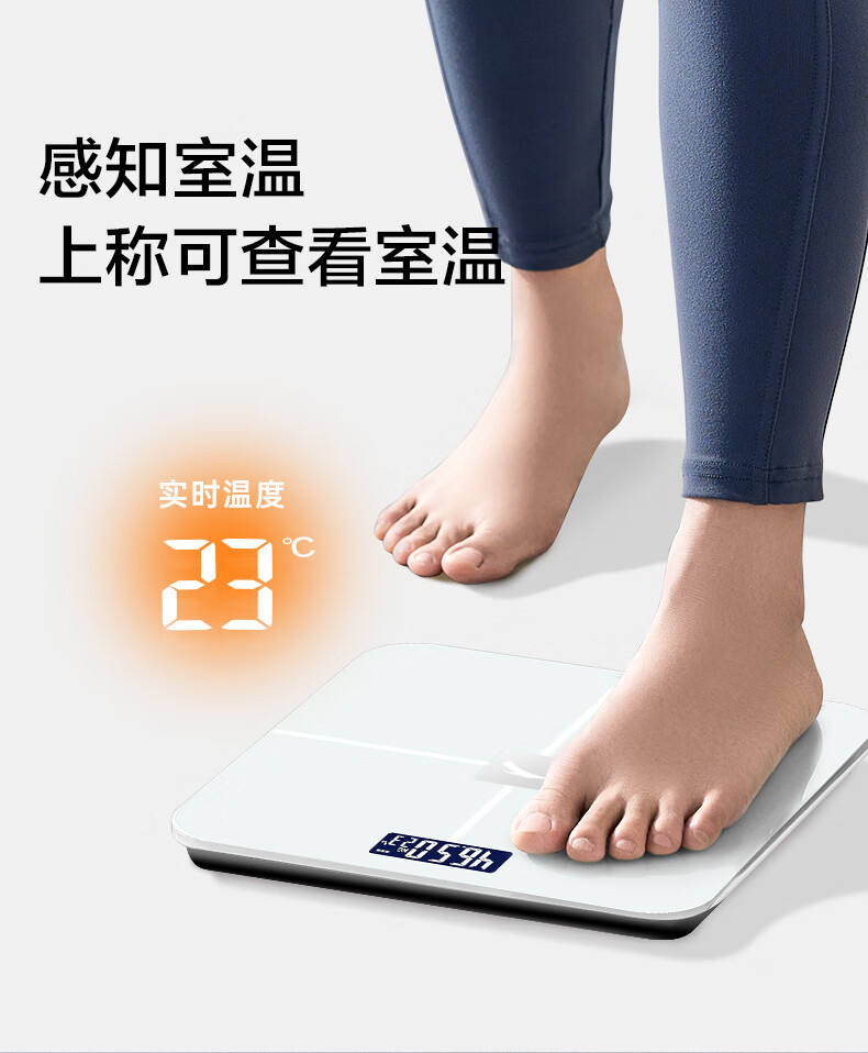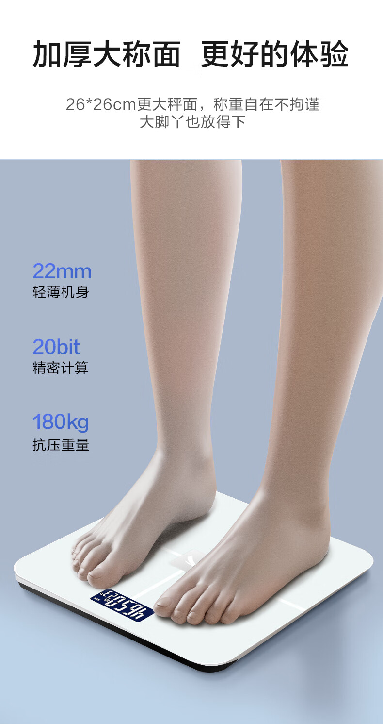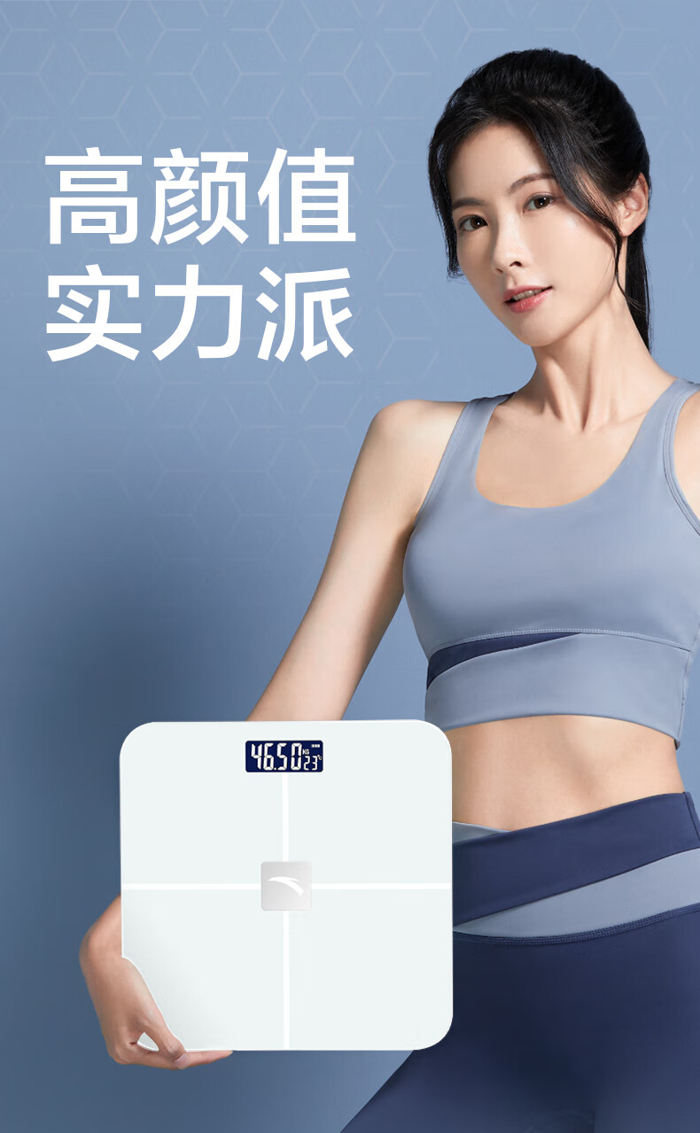 安踏体重秤精准高精度家用健康电子秤小型人体秤女生宿舍专业充电减肥 莹白-体重秤-电池款