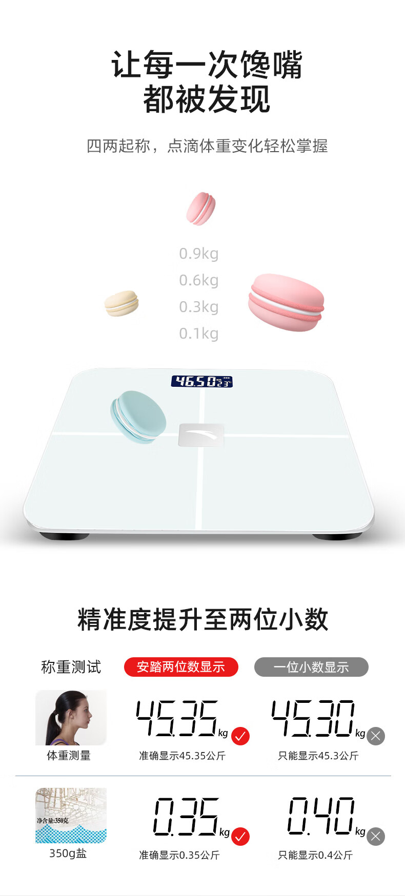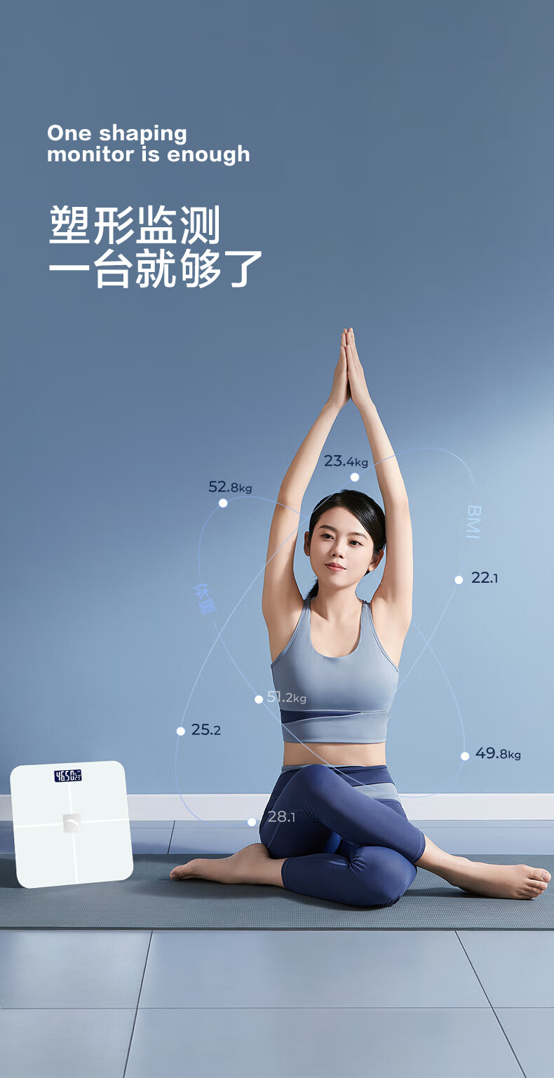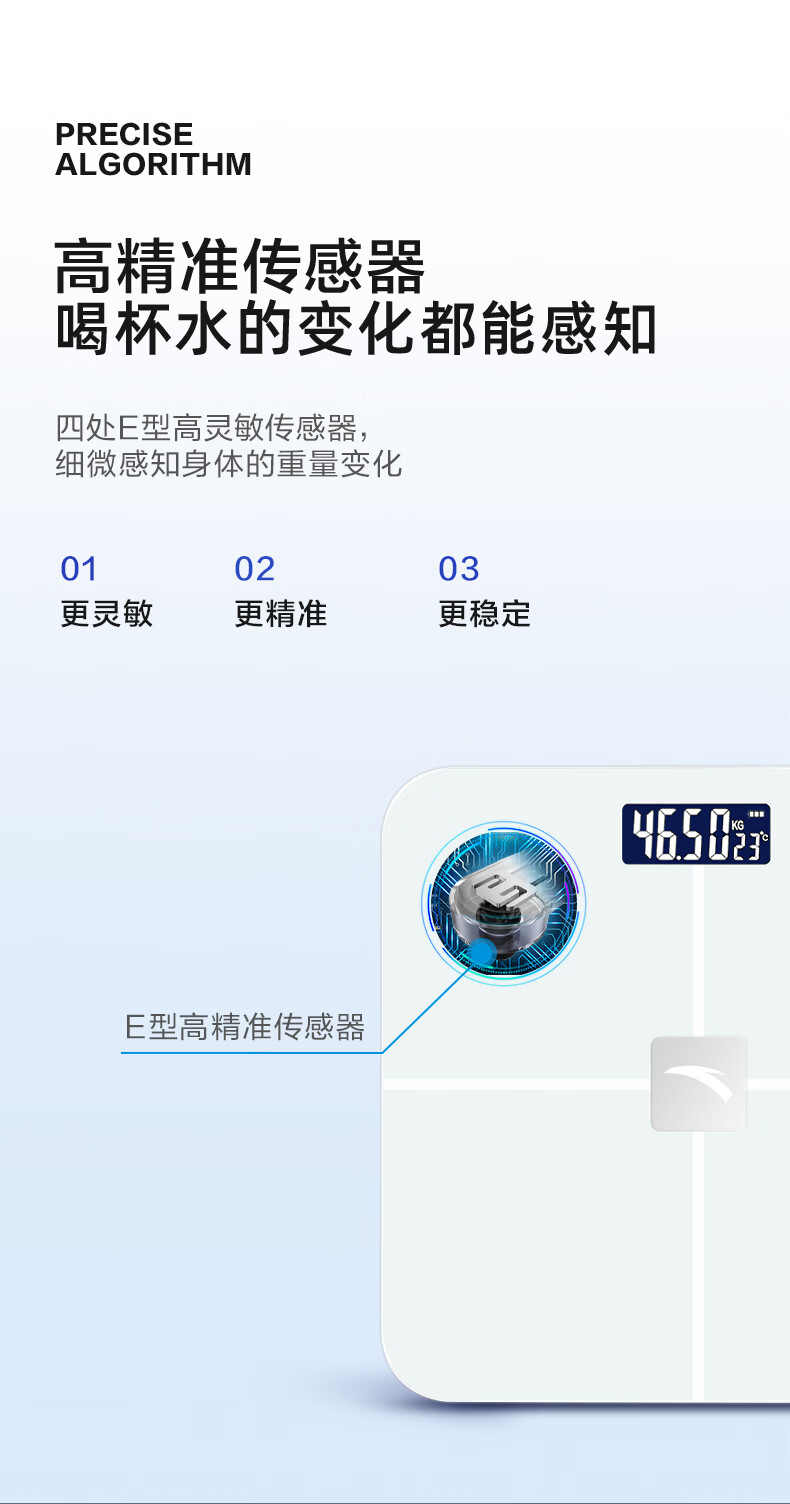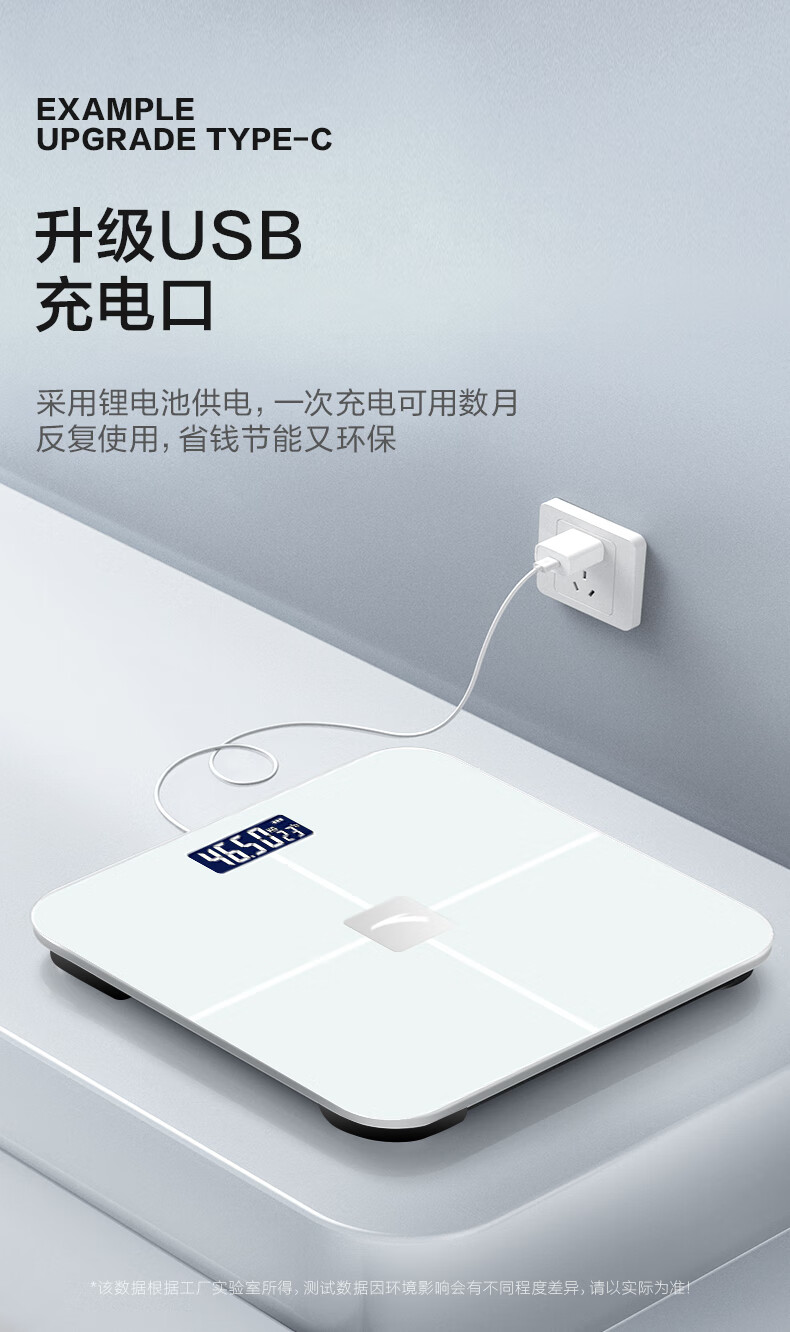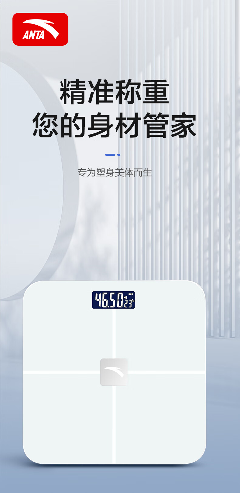 安踏体重秤精准高精度家用健康电子秤小型人体秤女生宿舍专业充电减肥 莹白-体重秤-电池款