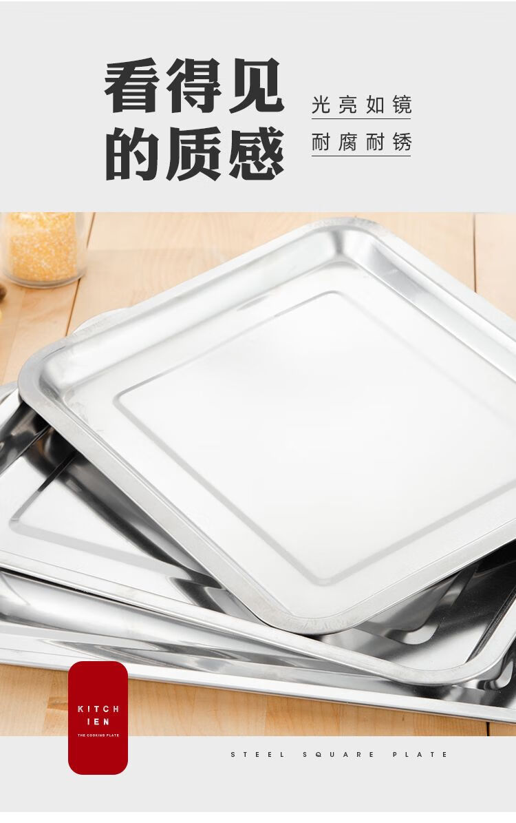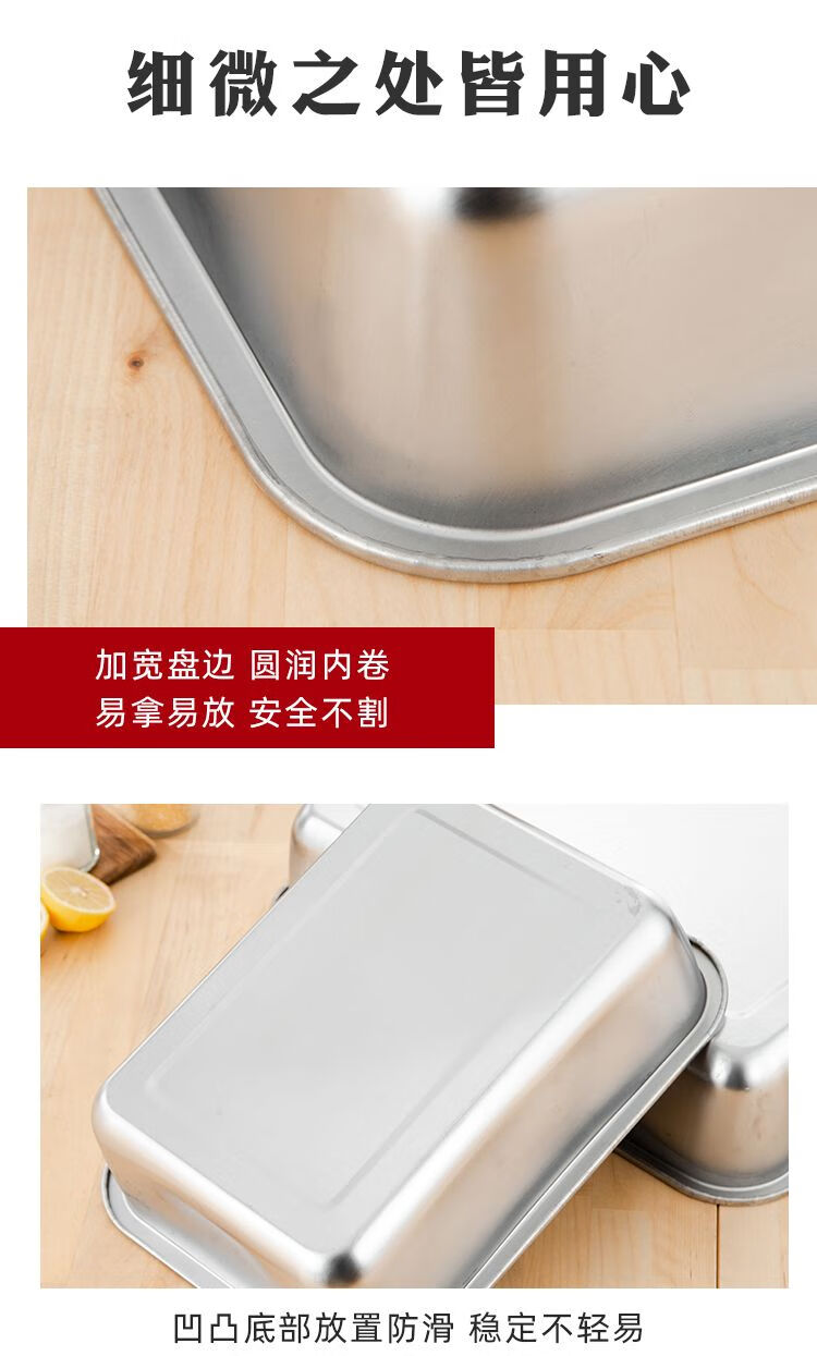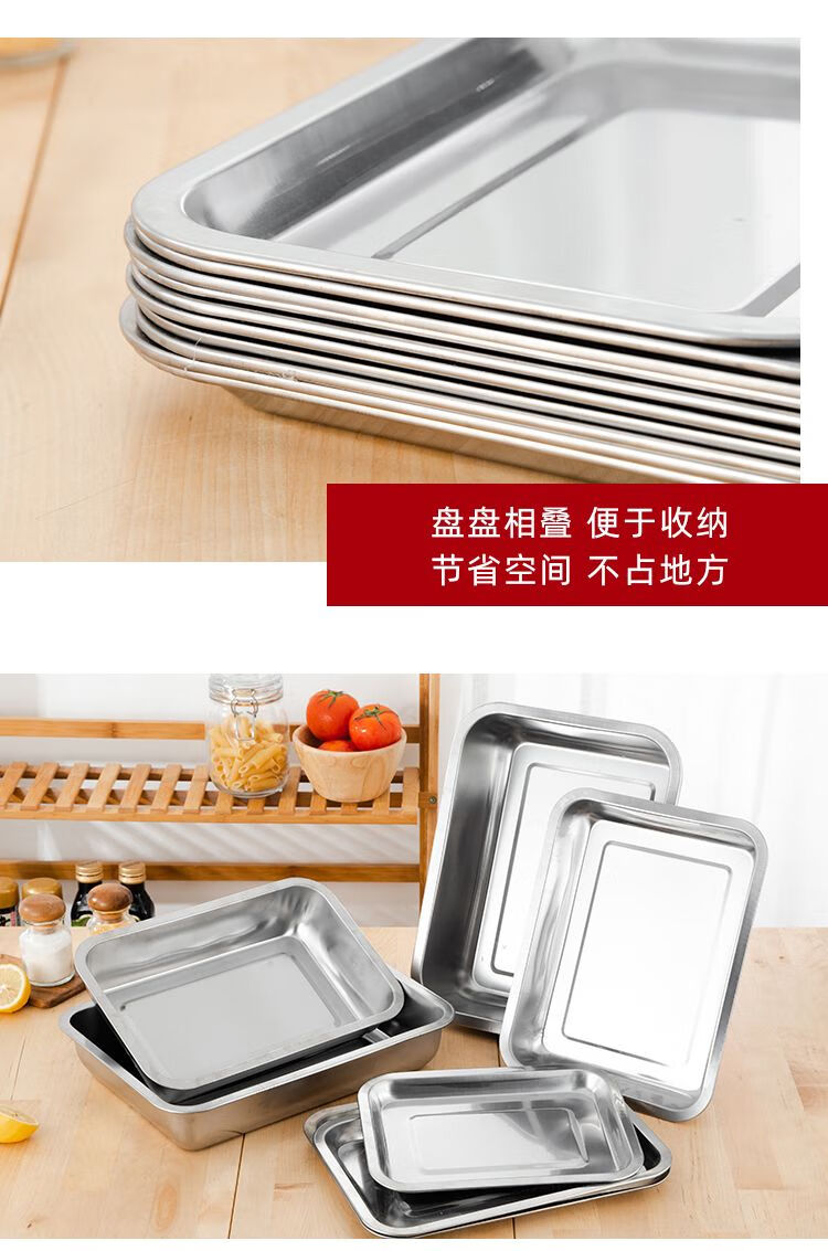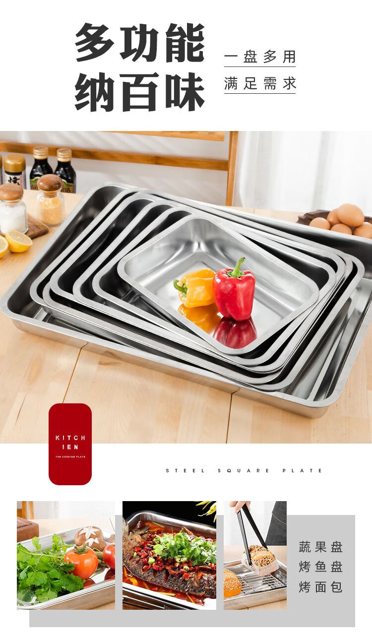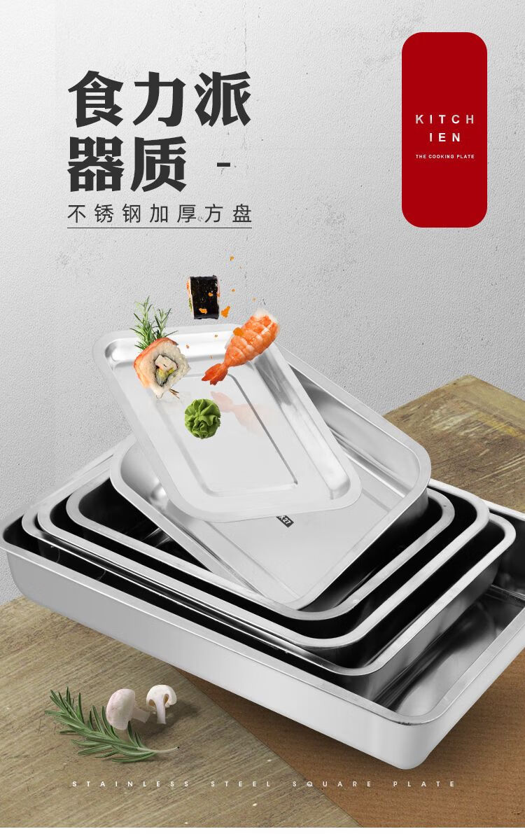 DEATKN不锈钢方盘特厚长方形盘子烧烤盘蒸饭盘托盘盘子水饺盘子茶盘 32*22*2【特厚浅盘】