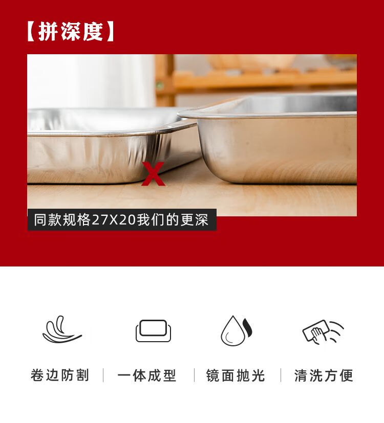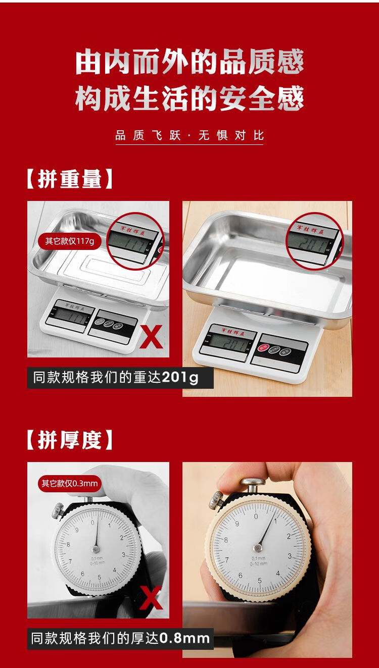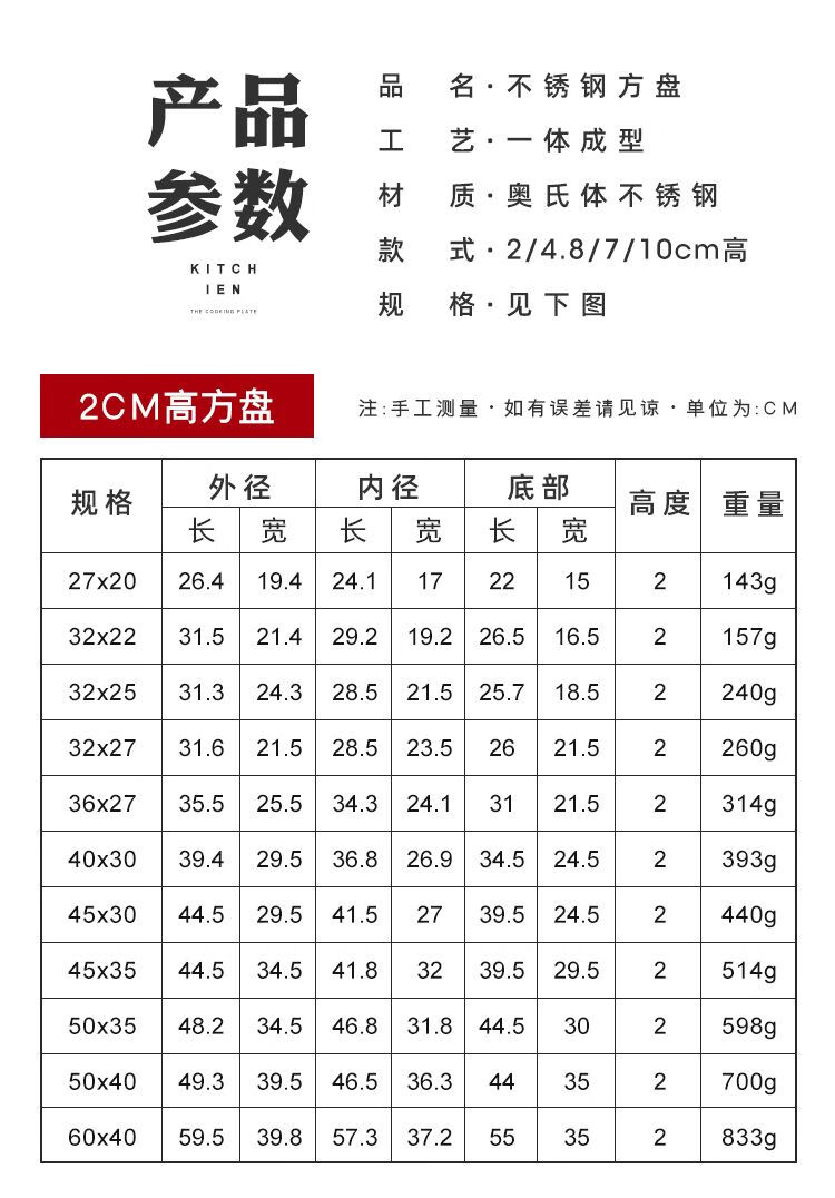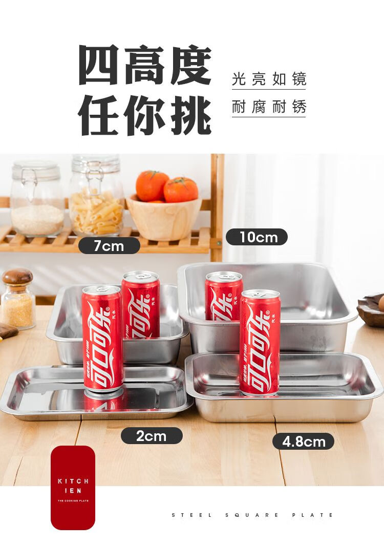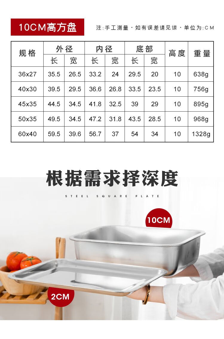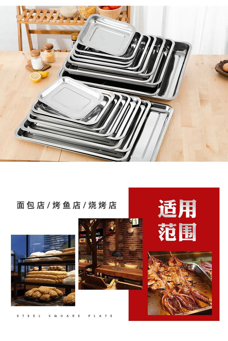 DEATKN不锈钢方盘特厚长方形盘子烧烤盘蒸饭盘托盘盘子水饺盘子茶盘 32*22*2【特厚浅盘】