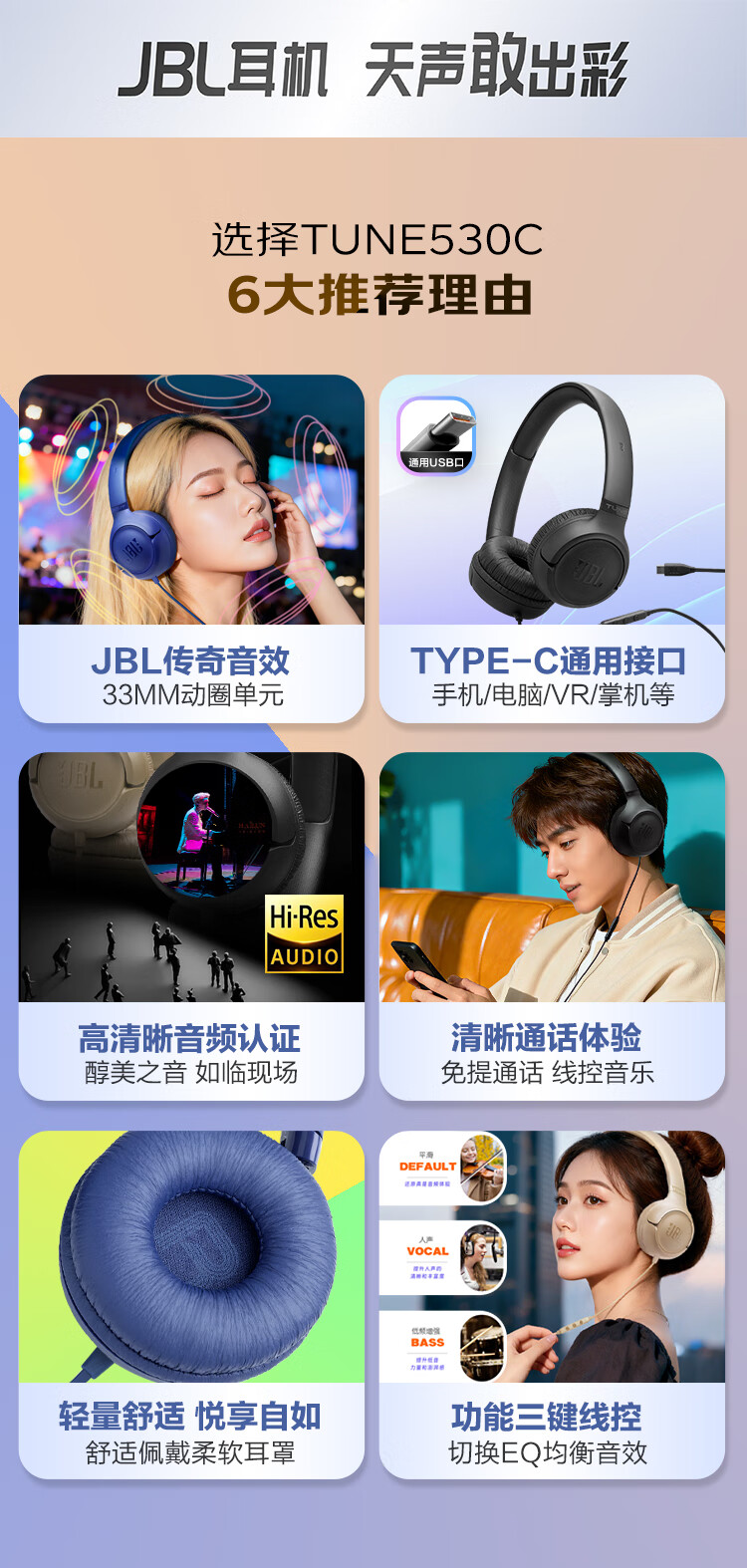 JBLTUNE530C有线耳机Type-C接口 头戴式有线立体声耳机适用于USB-c接口设备卡其色双11 购物推荐