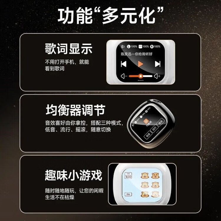 宙星悦启灵S09真无线蓝牙耳机mp3琉璃airpods带屏幕降噪运动跑步游戏电竞音乐触屏插卡耳塞电脑 白色选配32G内存卡+读卡器】 359 四种听歌模式+歌词流动显示