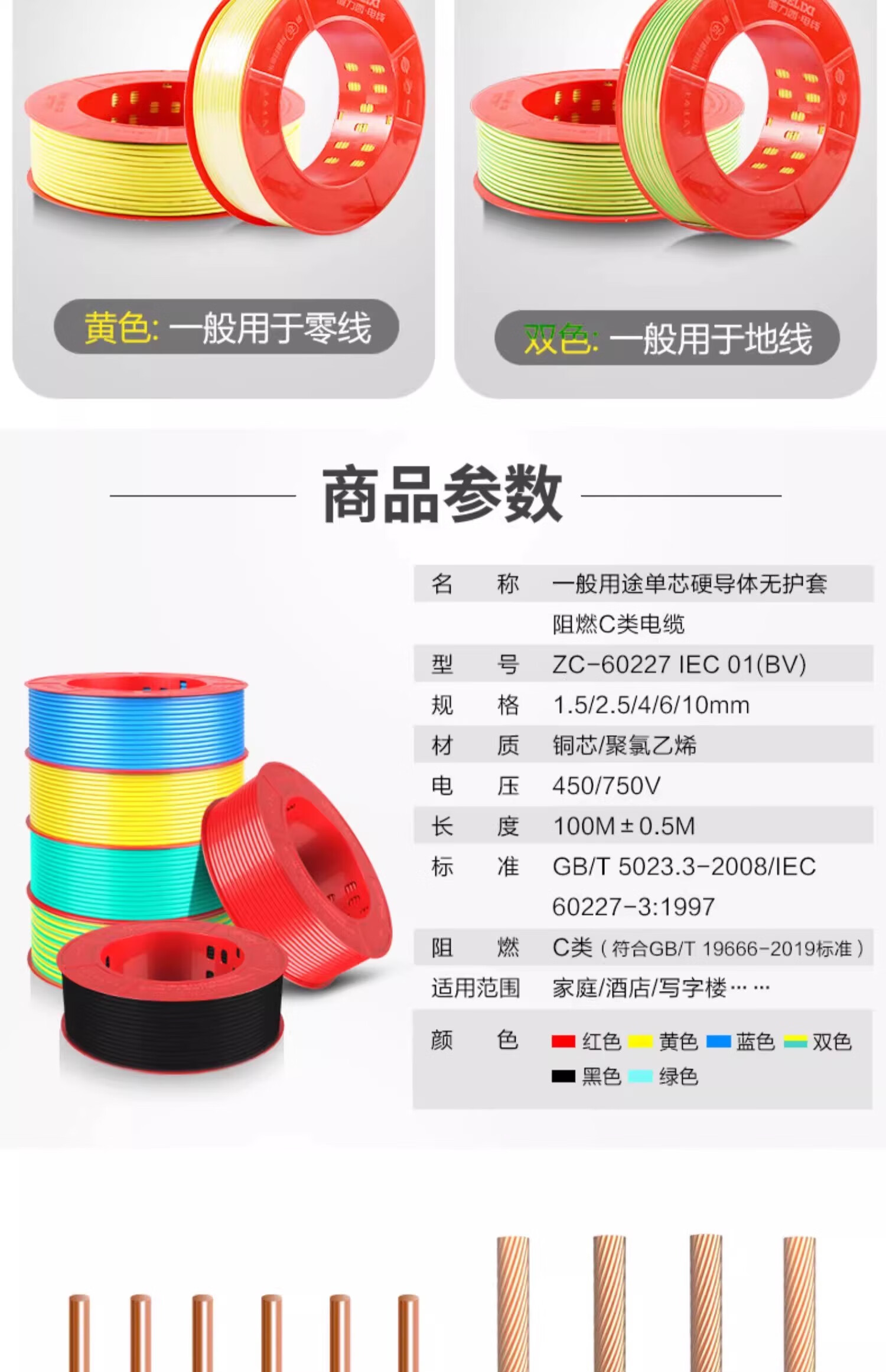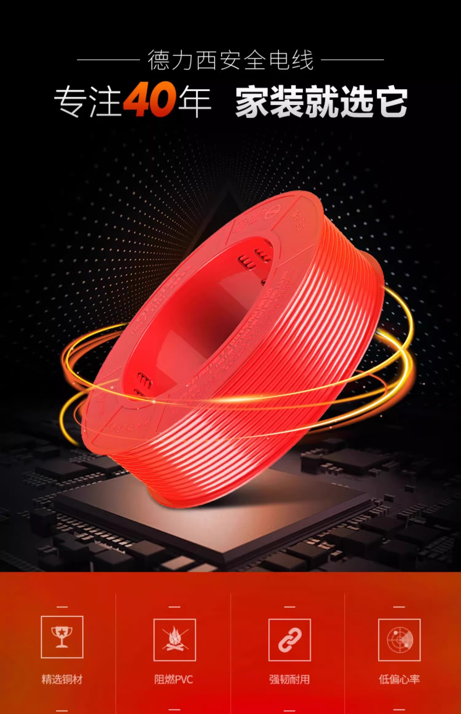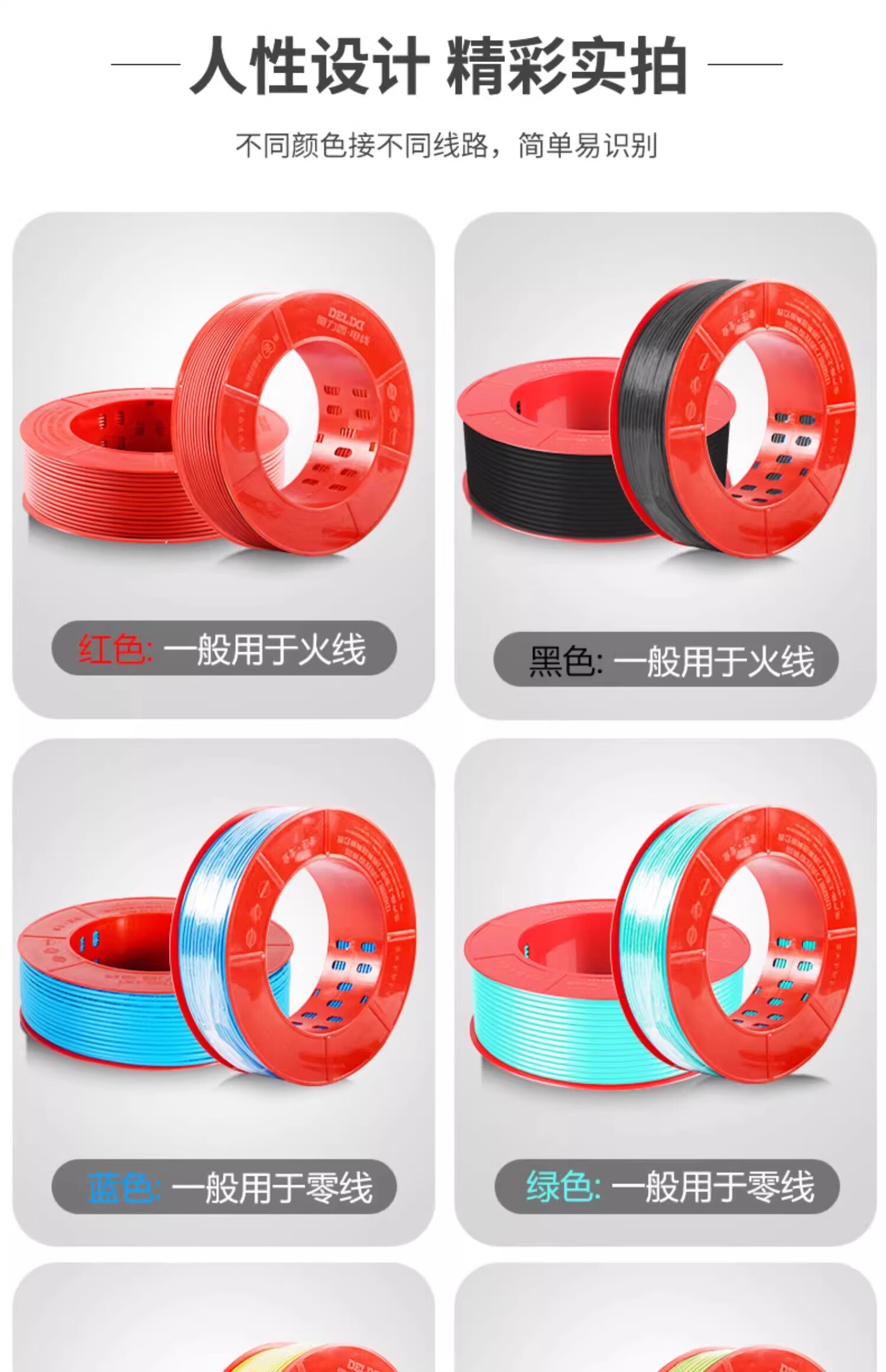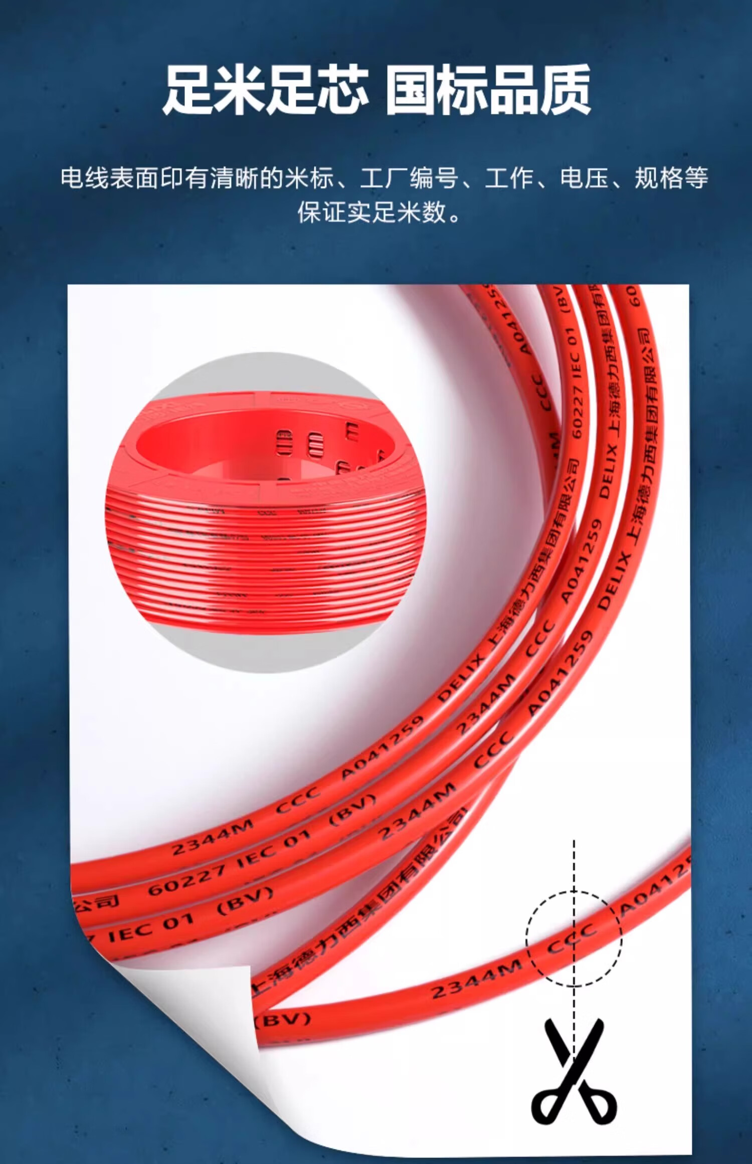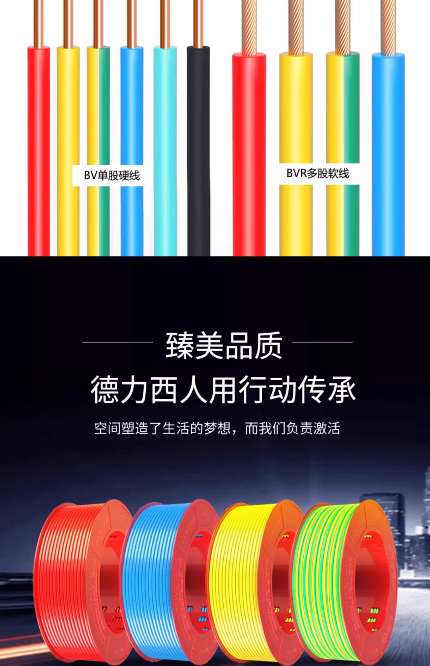 德力西电气 DELIXI ELECTRIC电线电缆国标纯铜BV/BVR铜芯线4/6/10/16平单芯硬线电源线 国标足米 BV硬线(红色) 2.5m㎡(1米)