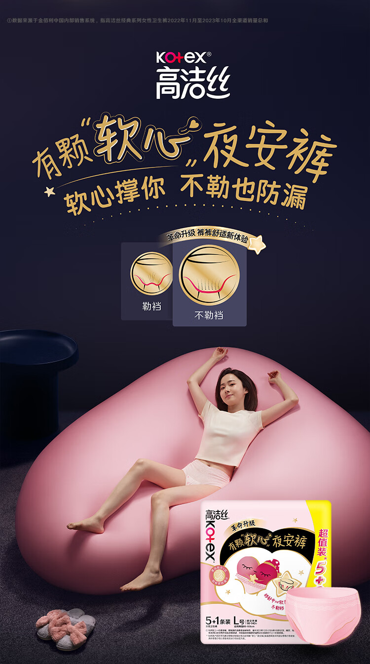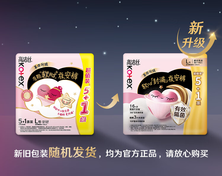 高洁丝【有效隔菌】软心夜安裤L号12条90-140斤裤型卫生巾安睡裤自营