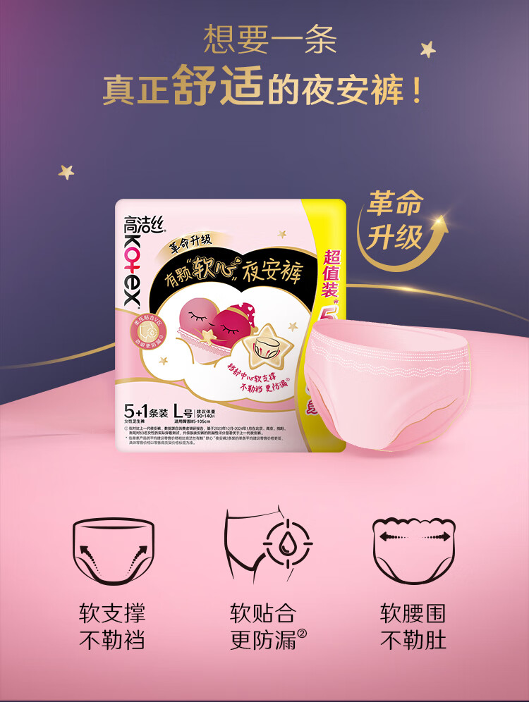 高洁丝【有效隔菌】软心夜安裤XL号32条120-180斤裤型卫生巾安睡裤自营