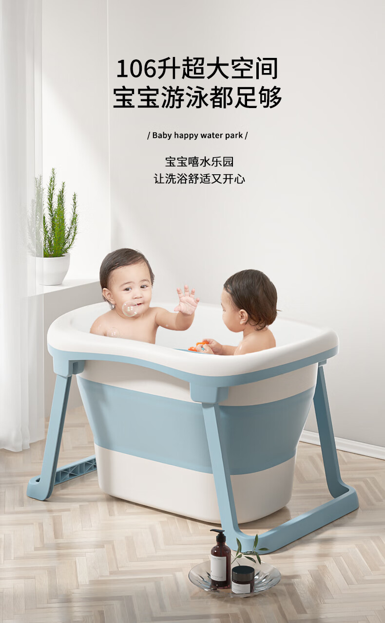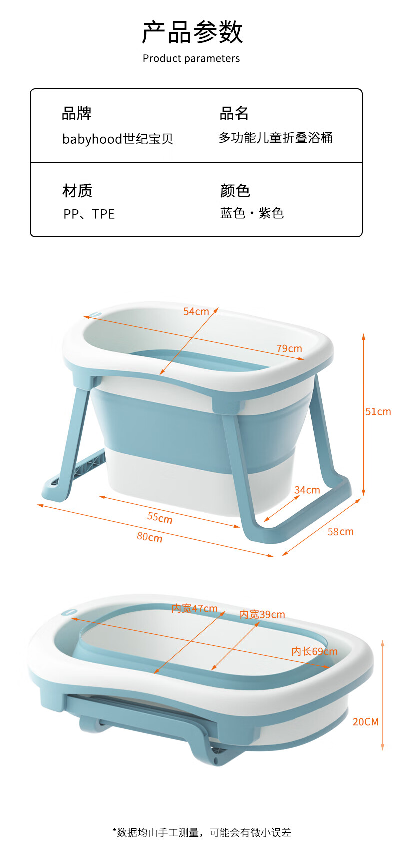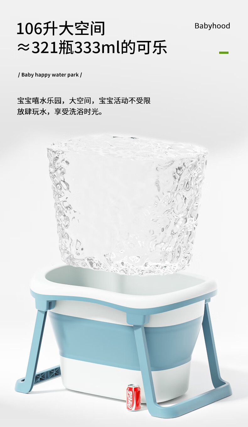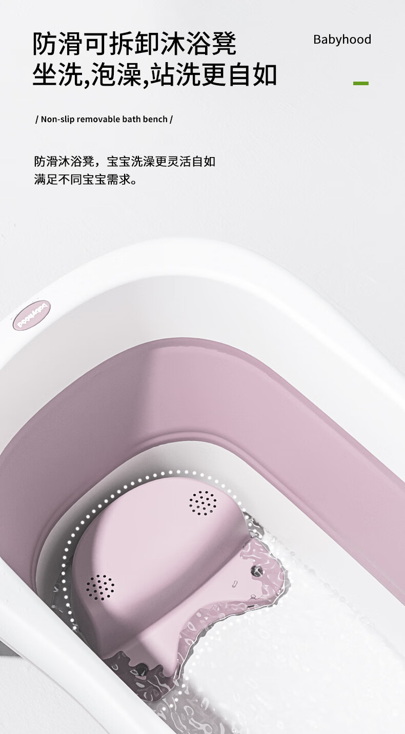 世纪宝贝(babyhood)儿童泡澡桶 婴儿洗澡盆游泳桶加大号折叠浴桶0-15岁赠浴凳 319紫