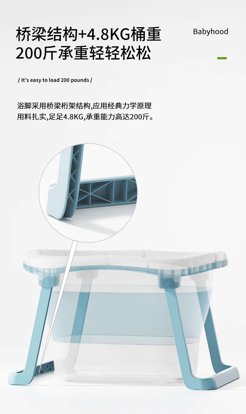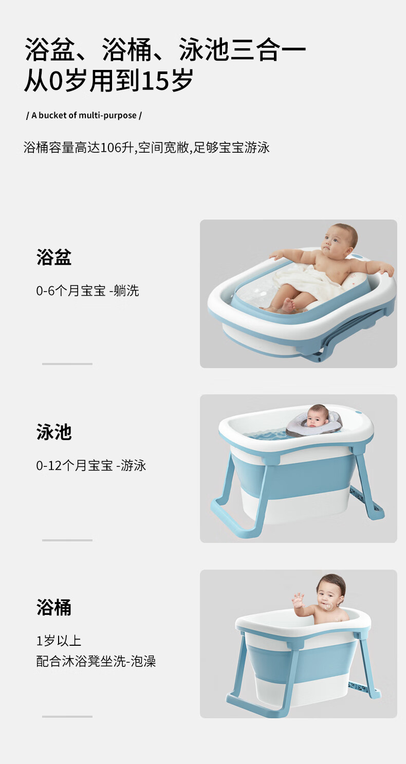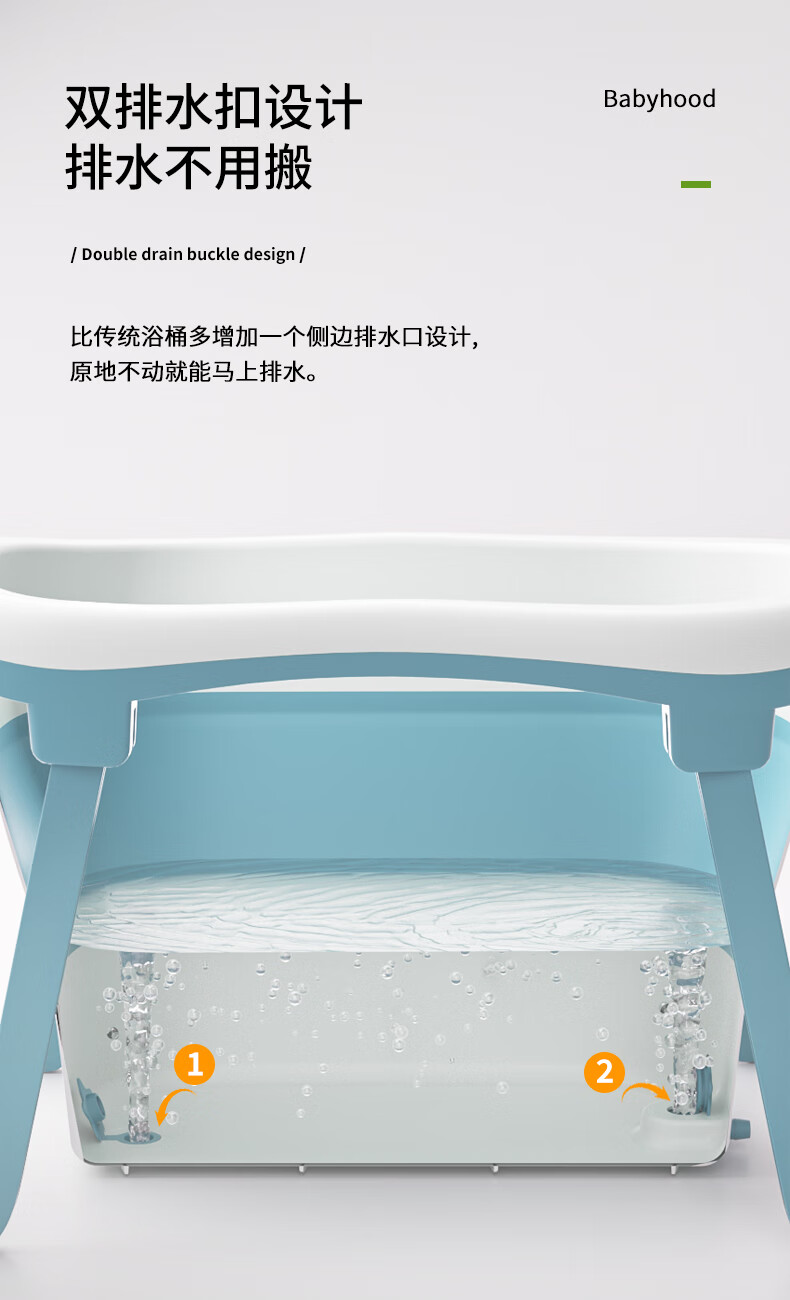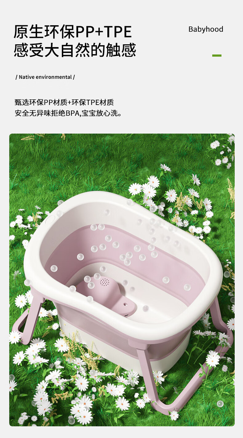 世纪宝贝(babyhood)儿童泡澡桶 婴儿洗澡盆游泳桶加大号折叠浴桶0-15岁赠浴凳 319紫