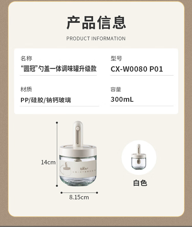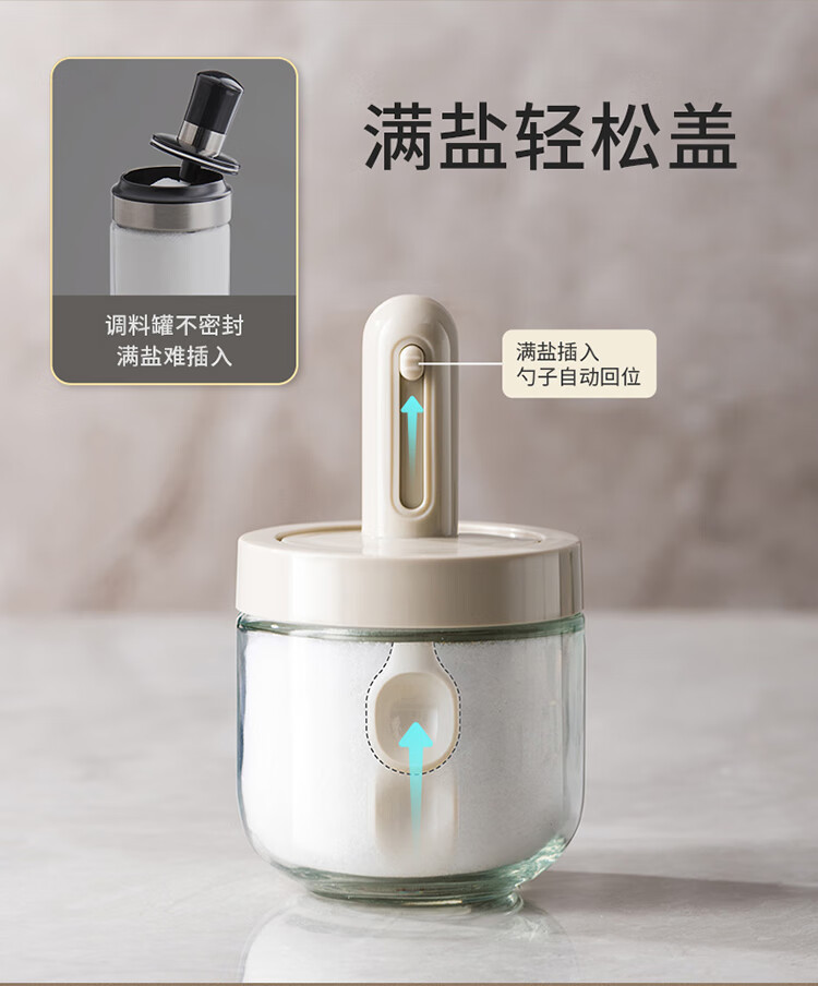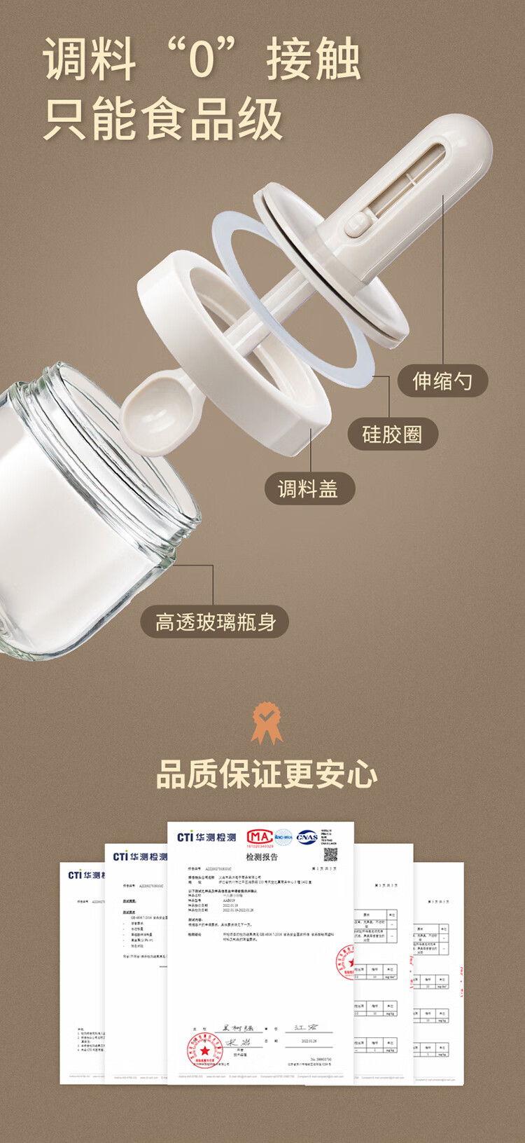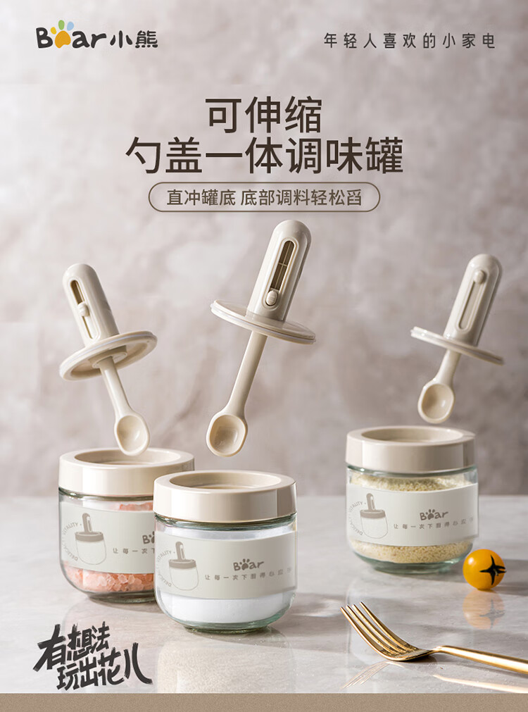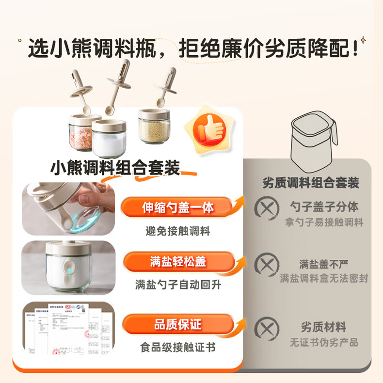 小熊(Bear)调料罐3件套 调味盒调料瓶套装厨房盐罐勺盖一体调味盒玻璃收纳盒
