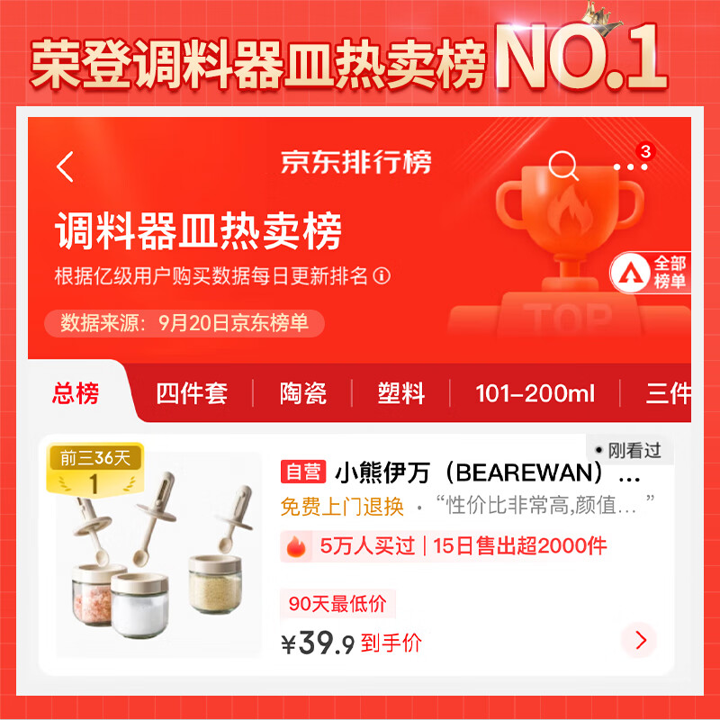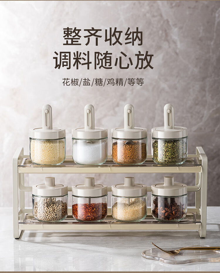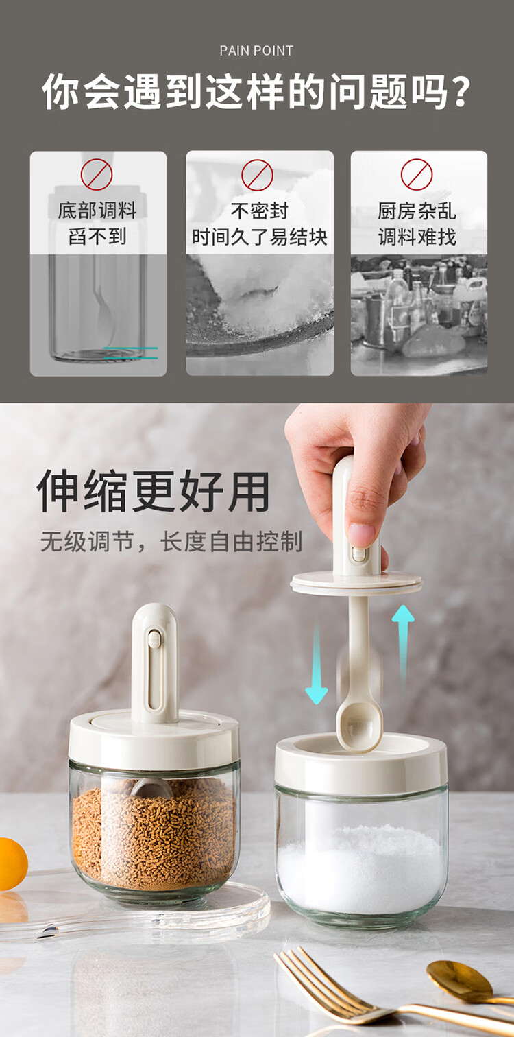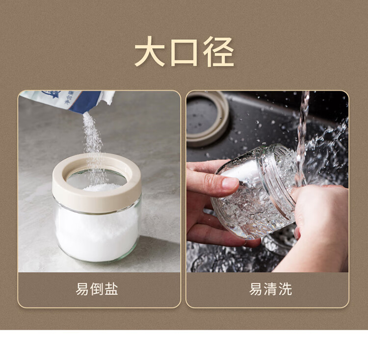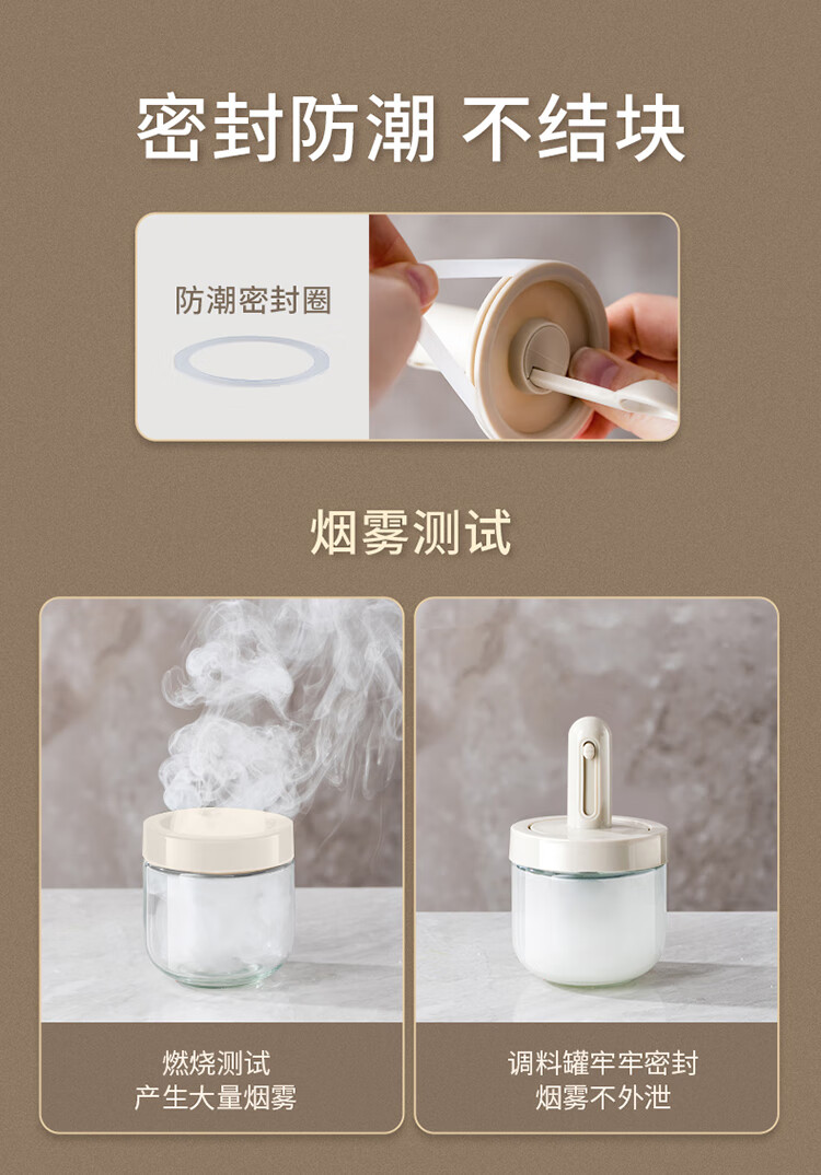 小熊(Bear)调料罐3件套 调味盒调料瓶套装厨房盐罐勺盖一体调味盒玻璃收纳盒