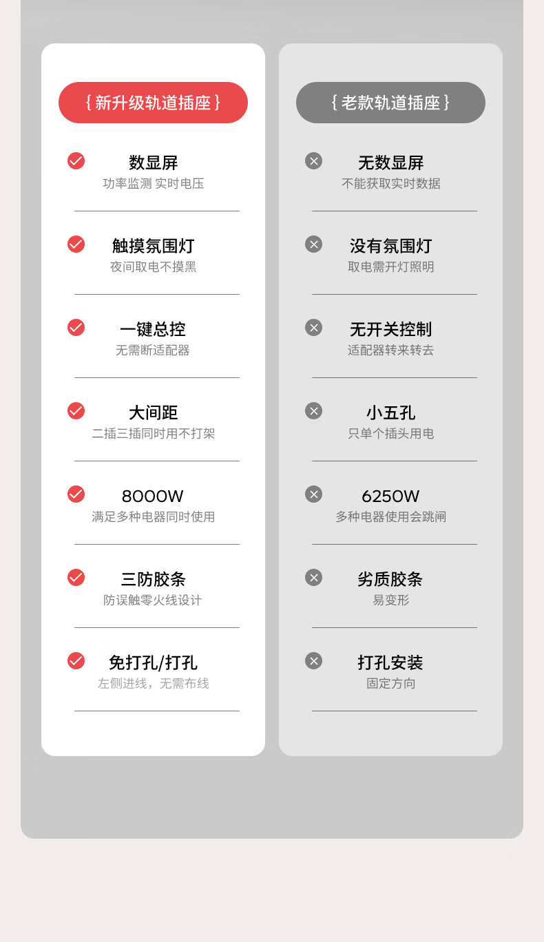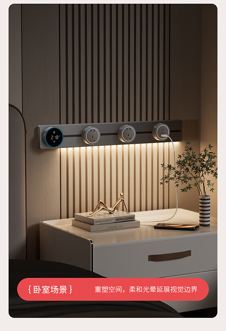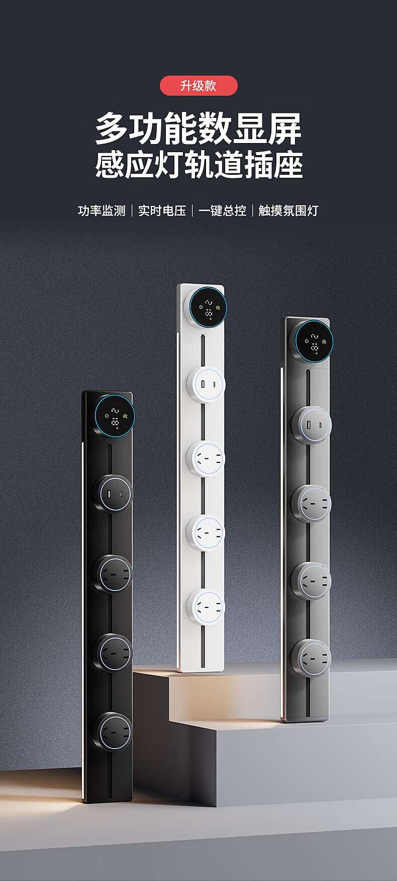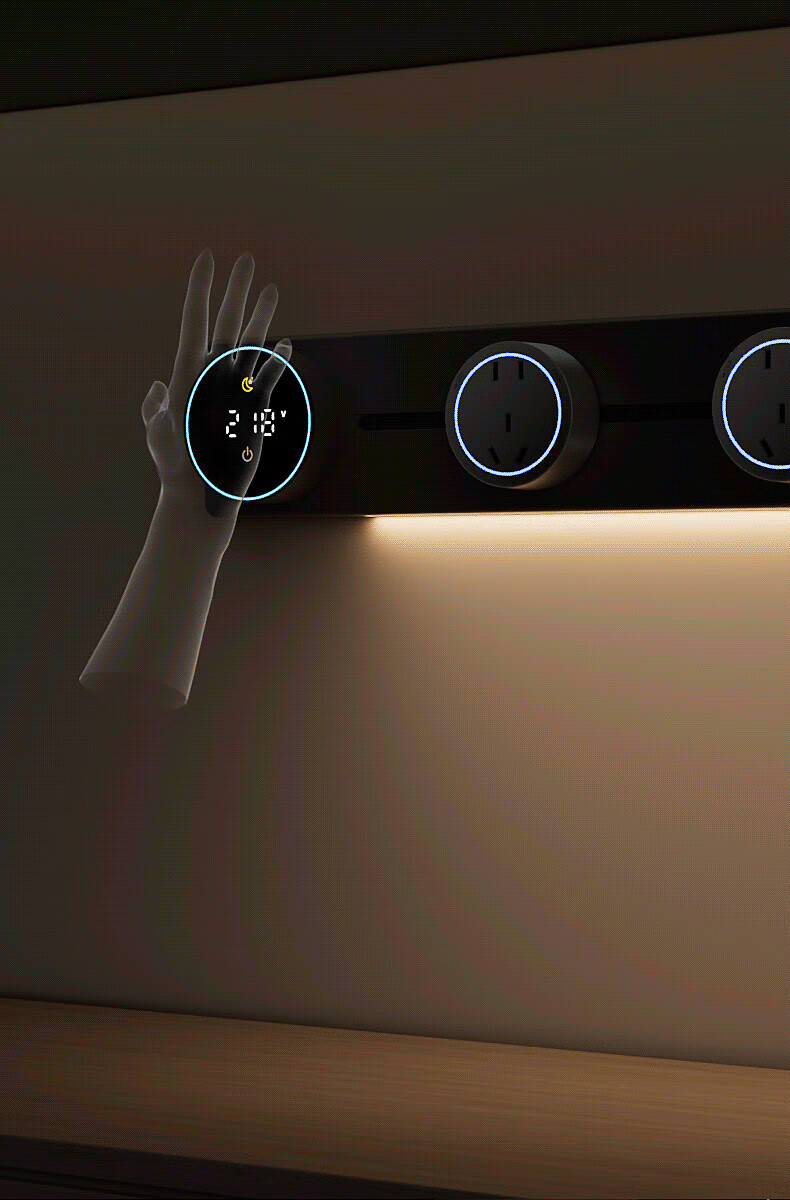 国际电工厨房滑动轨道插座移动插排免打孔明装扩展插座智能数显屏电力轨道 【一键断电数显款】50cm+4大五孔(带灯)