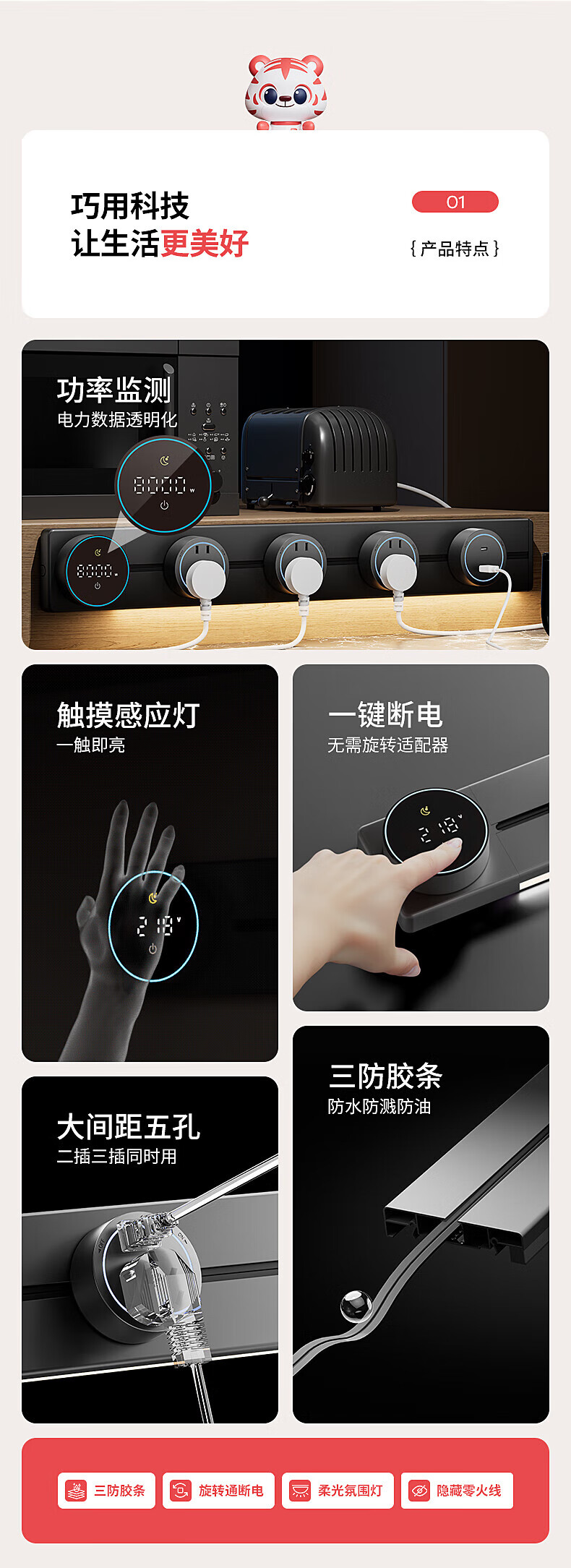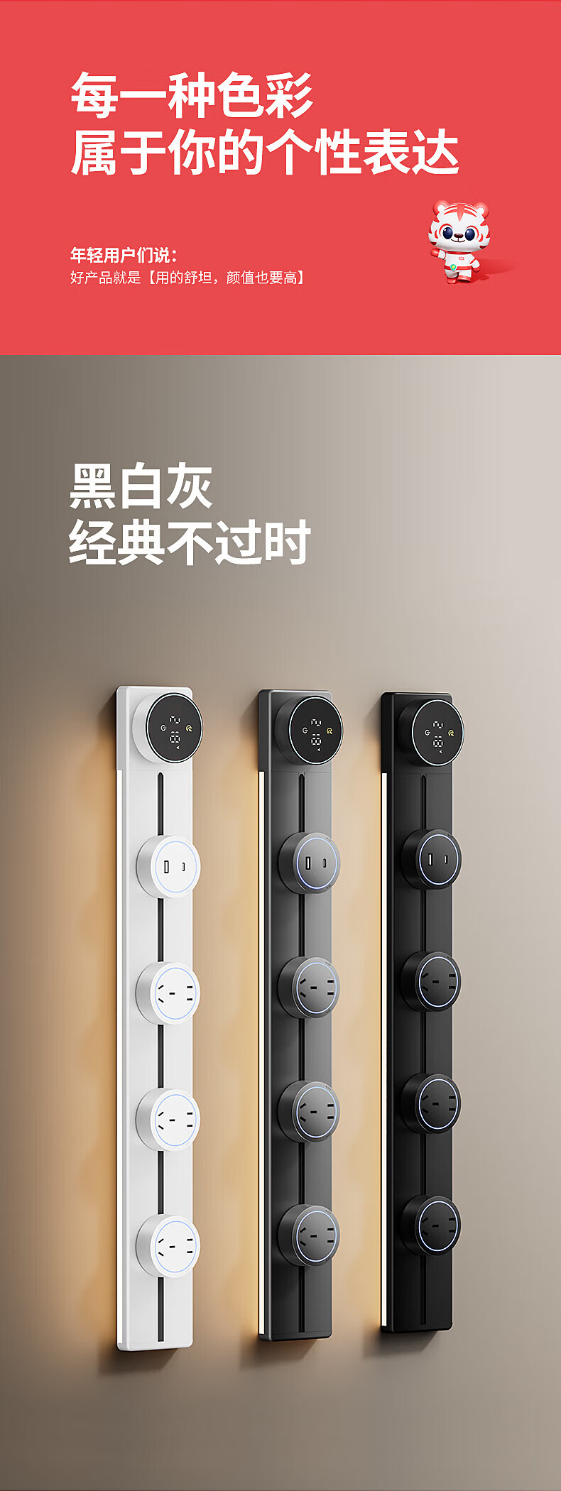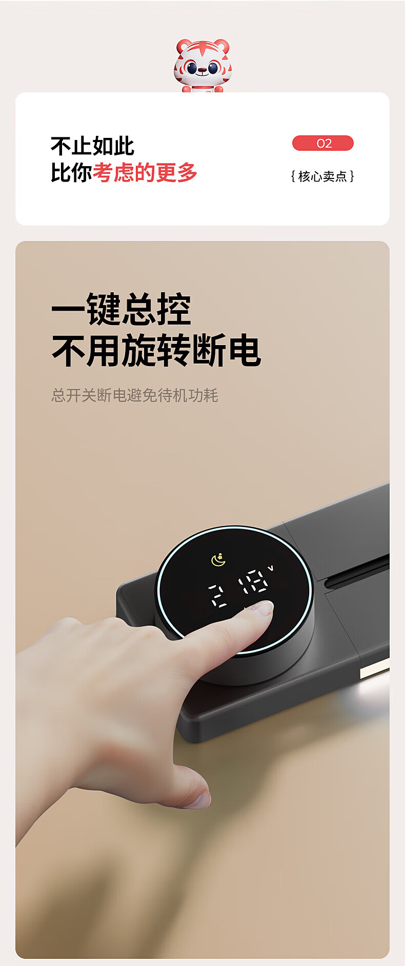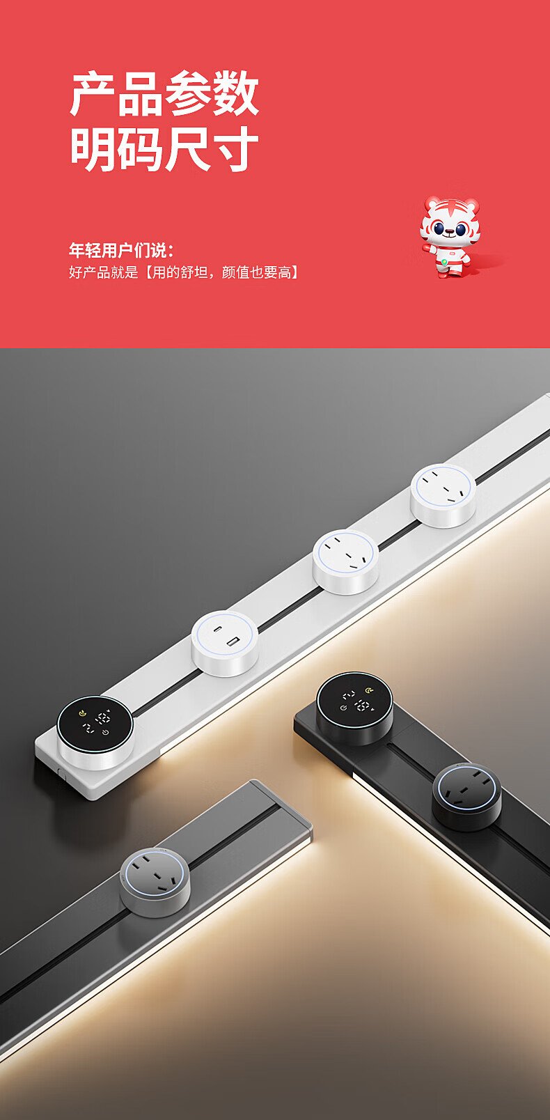 国际电工厨房滑动轨道插座移动插排免打孔明装扩展插座智能数显屏电力轨道 【一键断电数显款】50cm+4大五孔(带灯)
