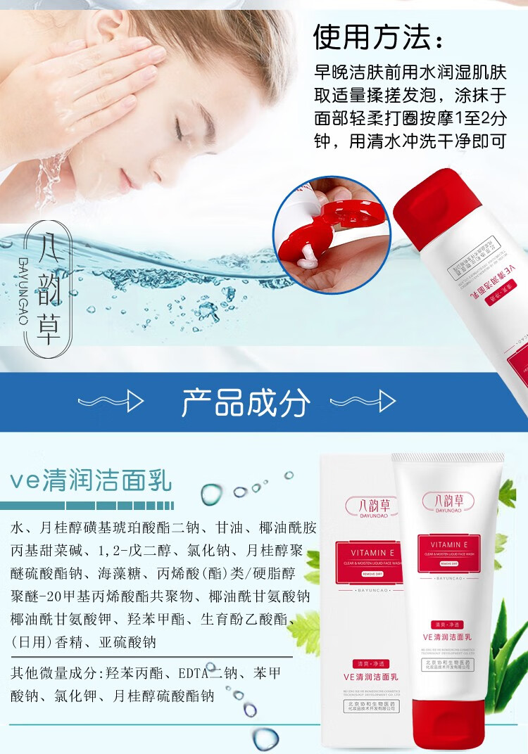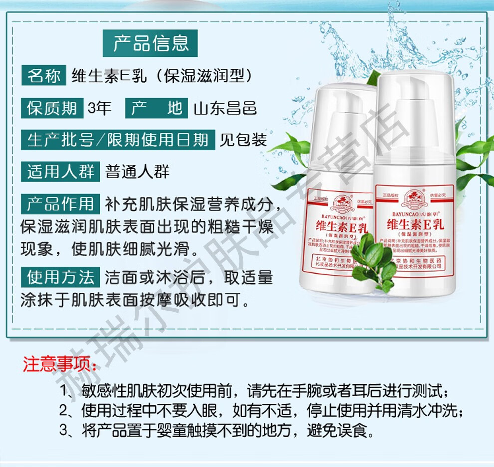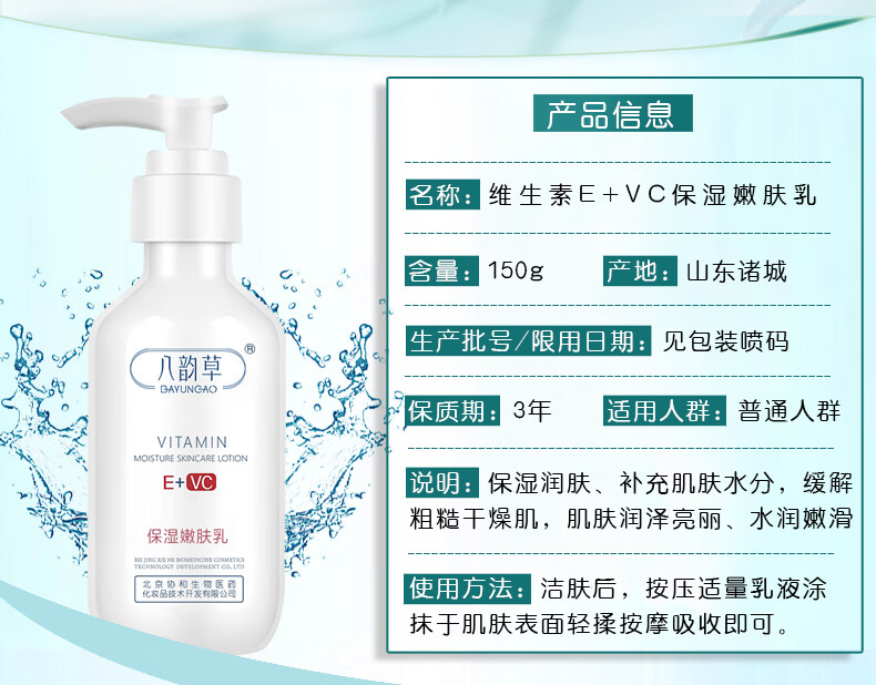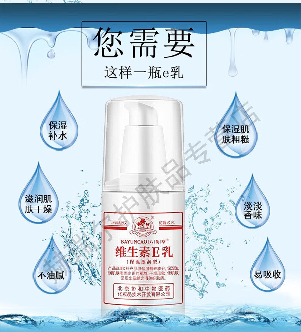 八韵草(BAYUNCAO) 维生素e乳液面霜女男身体润肤乳ve乳保湿补水护手滋润护肤品套装 按压E乳100g*5瓶