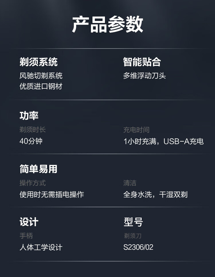 飞利浦(PHILIPS)电动剃须刀经典2系小旋风 超净切剃刮胡刀 送男友送老公 父亲生日礼物