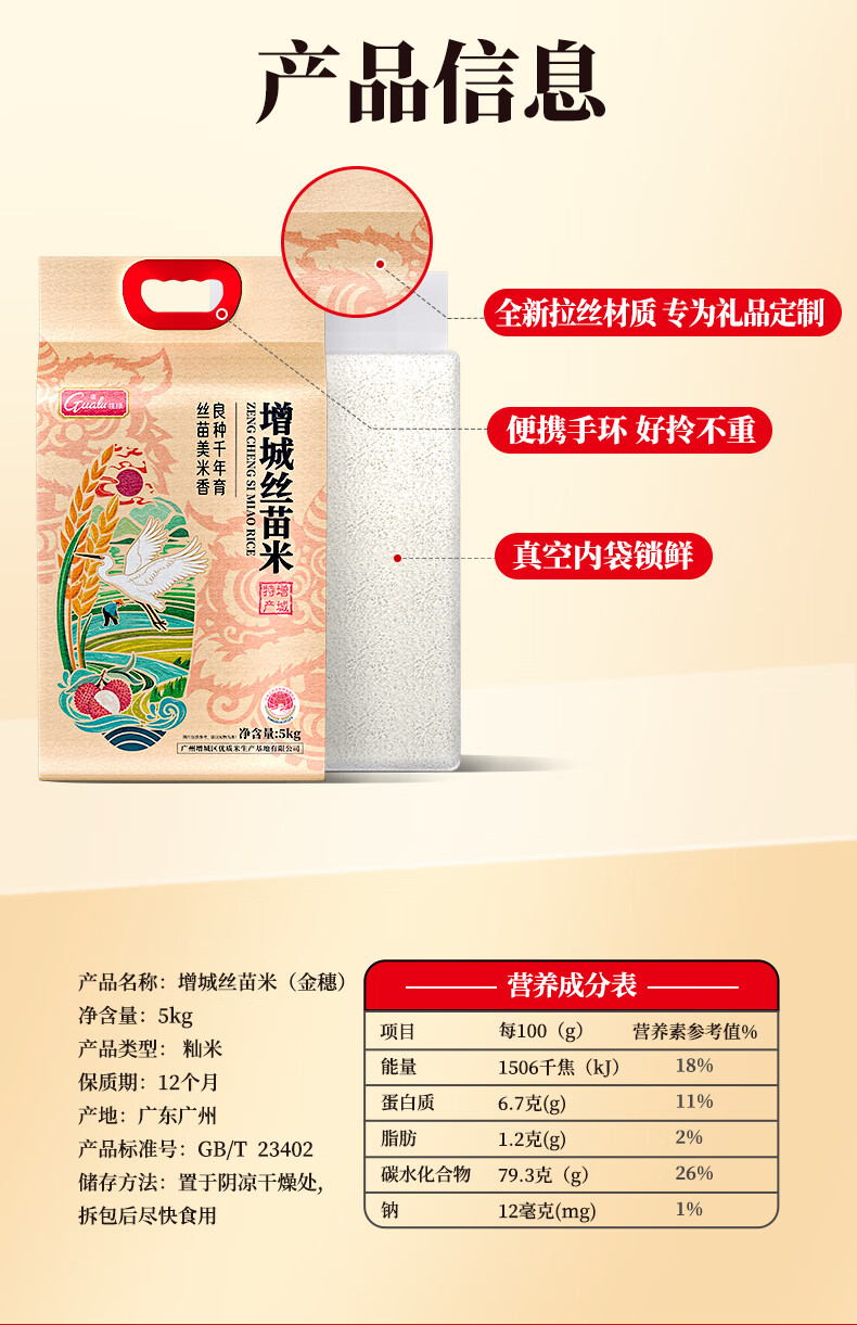 挂绿增城丝苗米10斤(金穗)国家地标认证 增城特产南方籼米