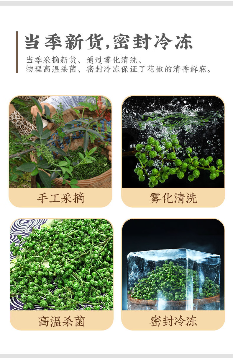 鲜青花椒真空冷冻保鲜花椒重庆江津区新鲜青花椒鲜藤椒鲜青麻椒 350g*2袋