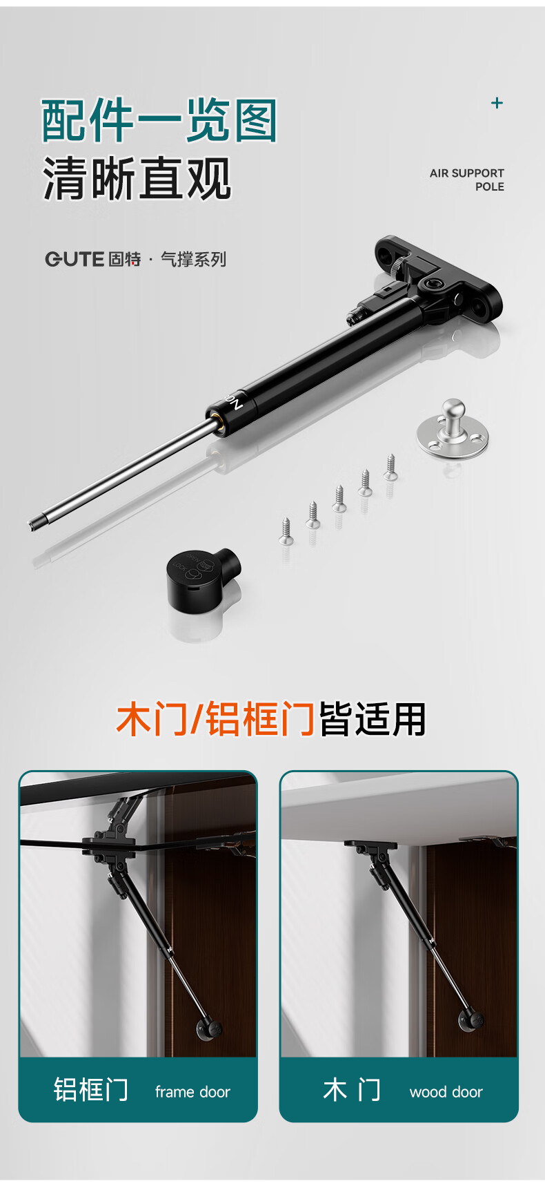 固特上翻门液压支撑杆橱柜铝宽门木门双用气撑杆通用随意停气压撑杆 上翻门黑色80N