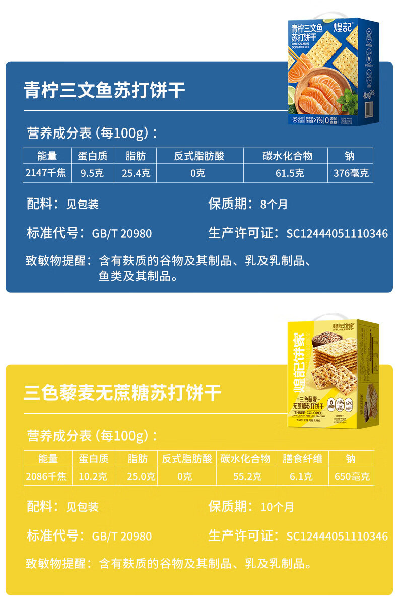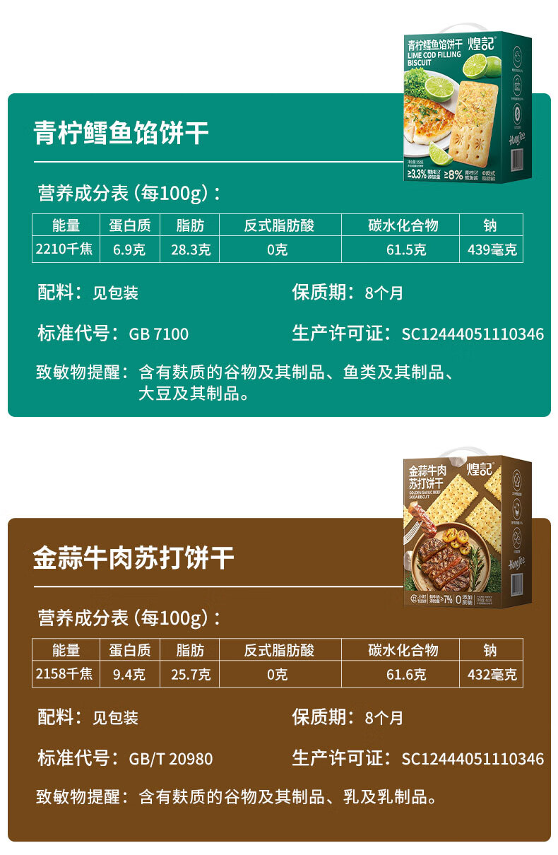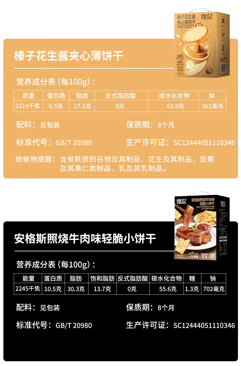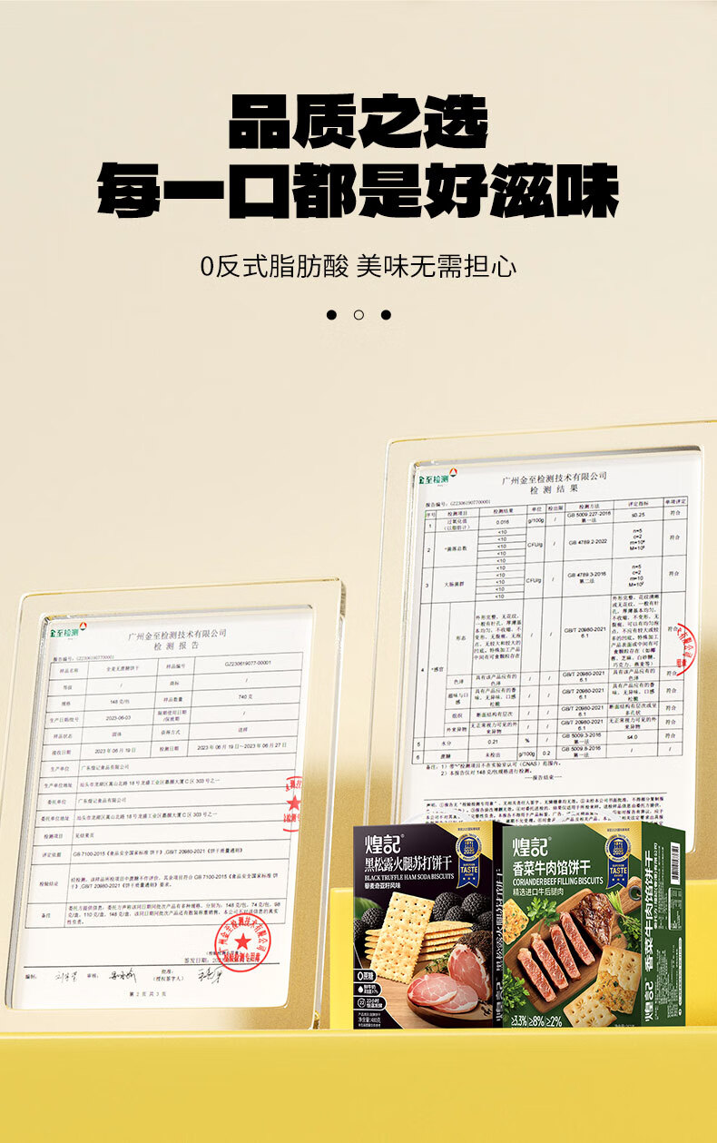 煌记黑松露火腿苏打饼干年货礼盒小零食送礼节日薄饼香菜牛肉薄脆黑巧 高蛋白肉馅饼干405手提礼盒装