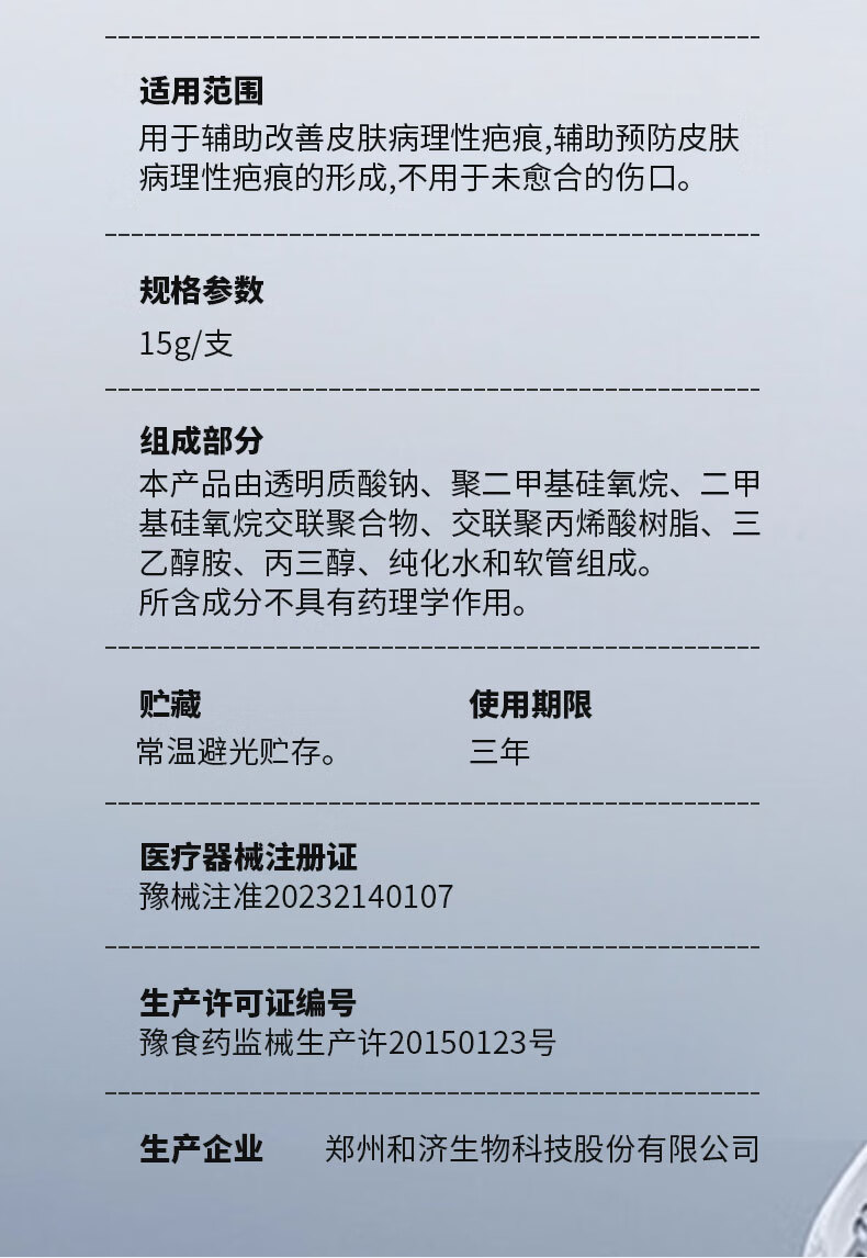 帕米修医用透明质酸钠硅凝胶辅助改善烫烧伤剖腹产疤痕护理预防疤痕增生 帕米修15g*1支