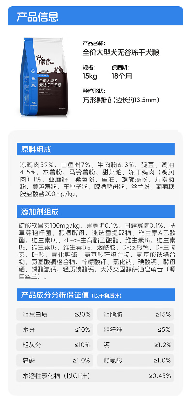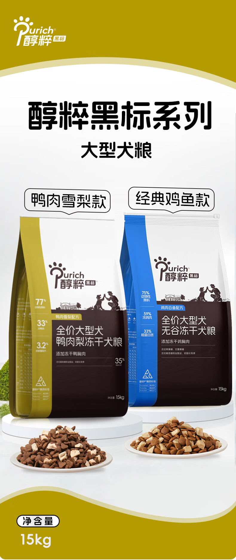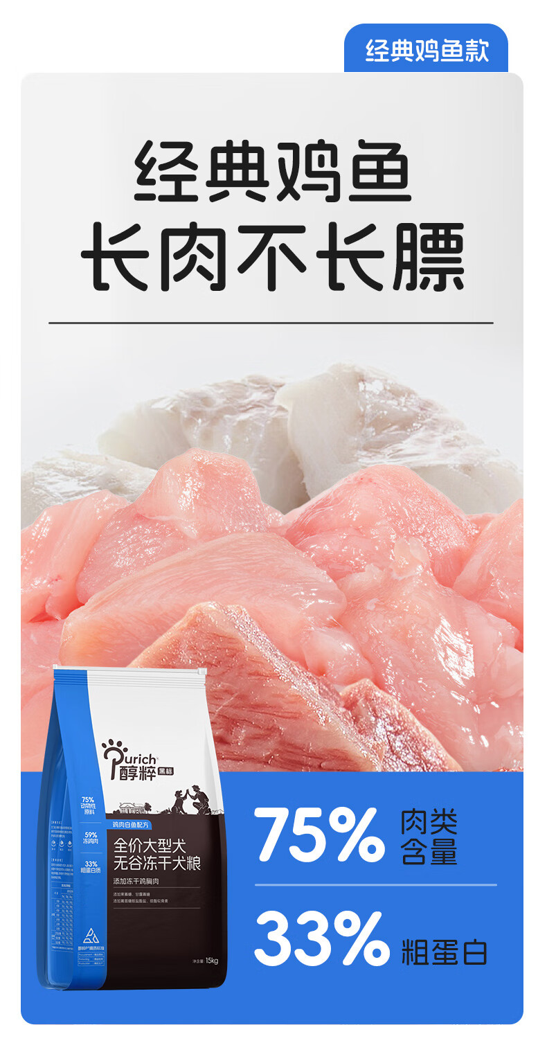 醇粹黑标狗粮无谷冻干犬粮大型犬成犬幼犬通用型鸡肉鱼肉狗粮30斤