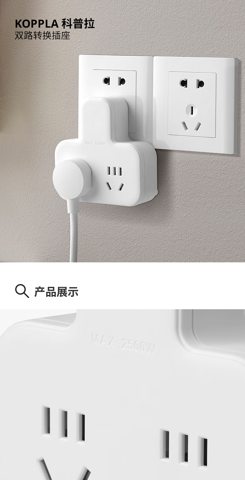 宜家(IKEA)顺手买一件KOPPLA 科普拉 生活日用双路转换插座日用杂货 白色 双路转换插座白色