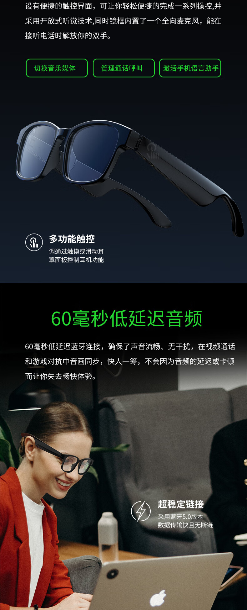 匠子CD01多功能智能蓝牙眼镜防蓝光可换镜片iOS安卓兼容蓝牙眼镜 智能眼镜耳机 CD01