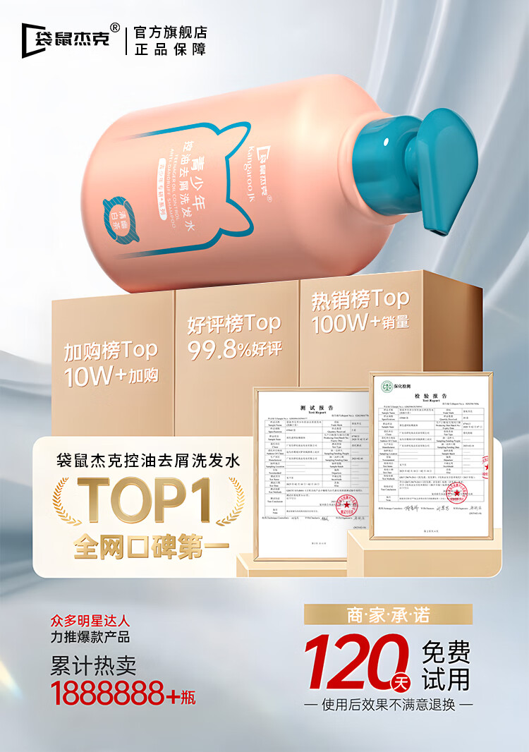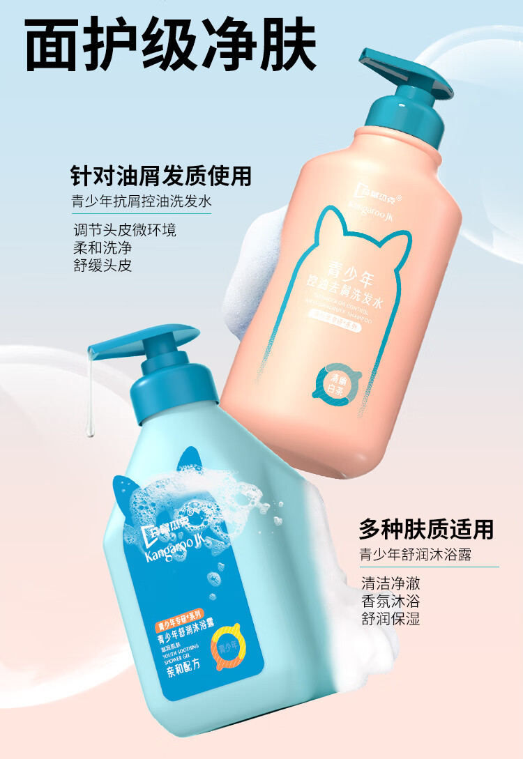 袋鼠杰克青少年洗发水520ml 深层洁净 控油抗屑儿童洗发水13岁+ 【13岁+】青少年洗发水*1 东来青少年洗发水热销Top榜