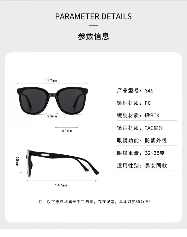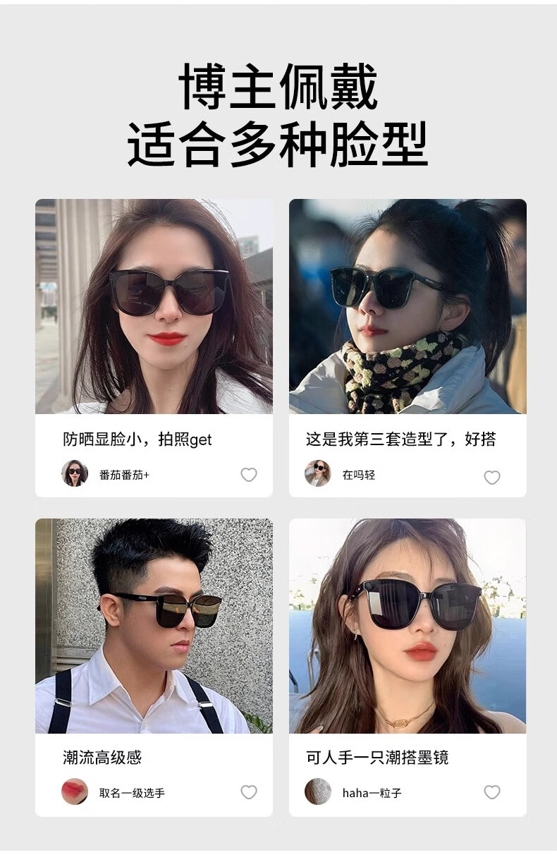 沸士特墨镜 男女款方框偏光太阳镜 高清男女眼镜 开车驾驶七夕礼物墨镜
