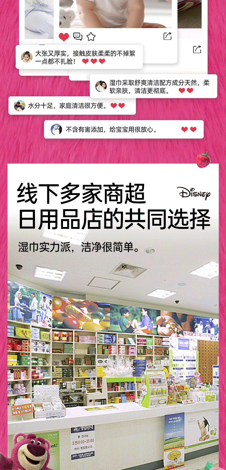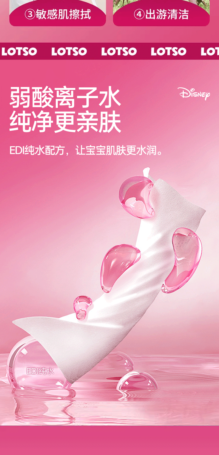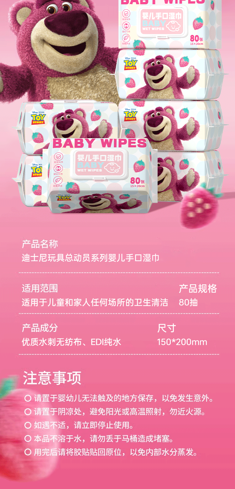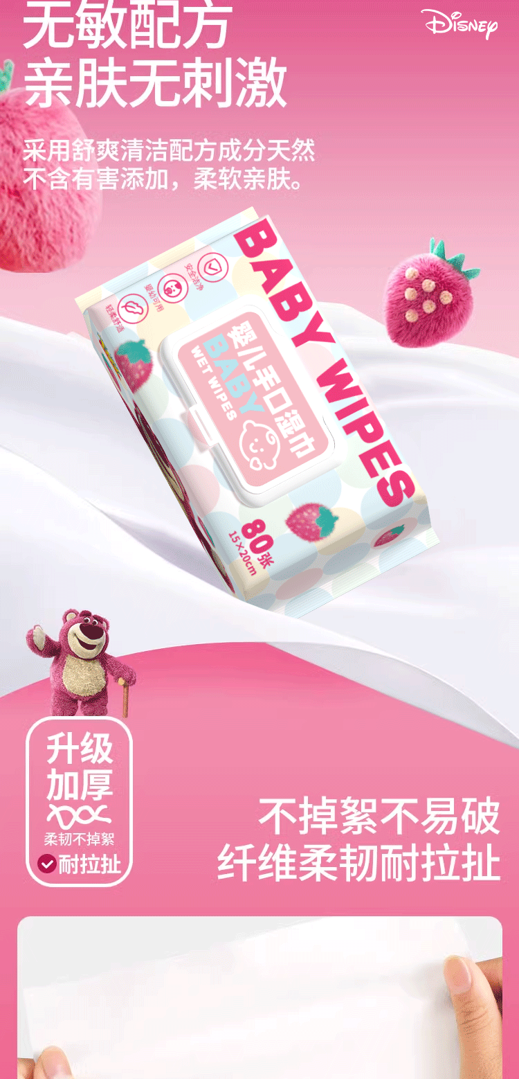 爱怡优×迪士尼联名 手口湿巾 80抽*单包 EDI纯水 湿纸巾婴幼儿童湿巾纸