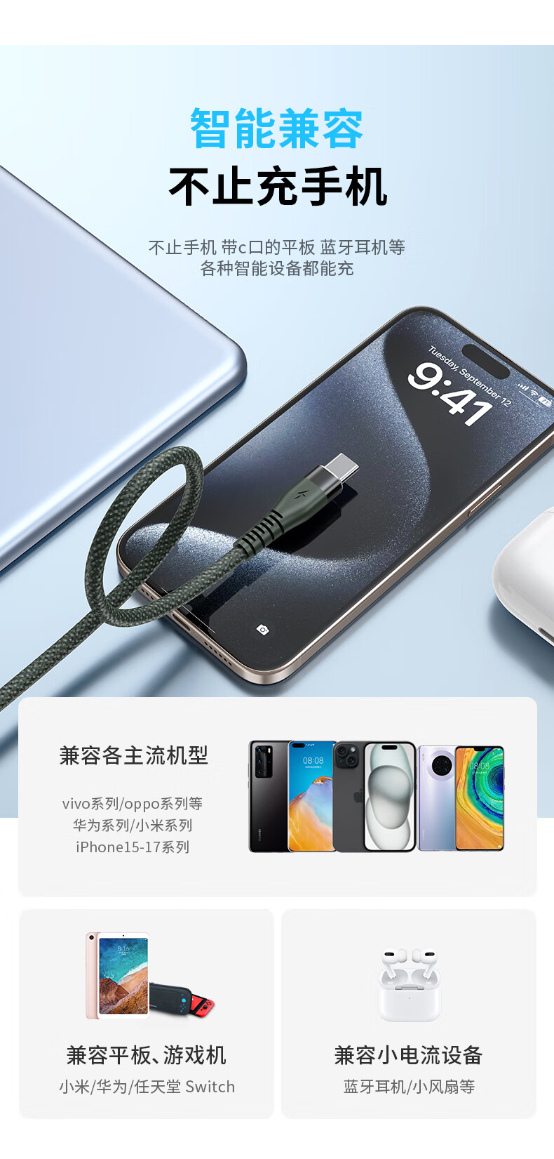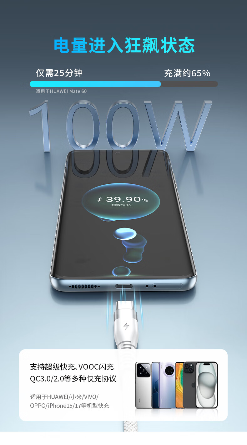 KY康友数据线6A超级快充100W/88W/66W 适用苹果17/16/15小米华为荣耀平板Pura80/Mate70/60 白色1米