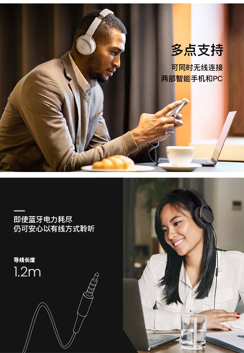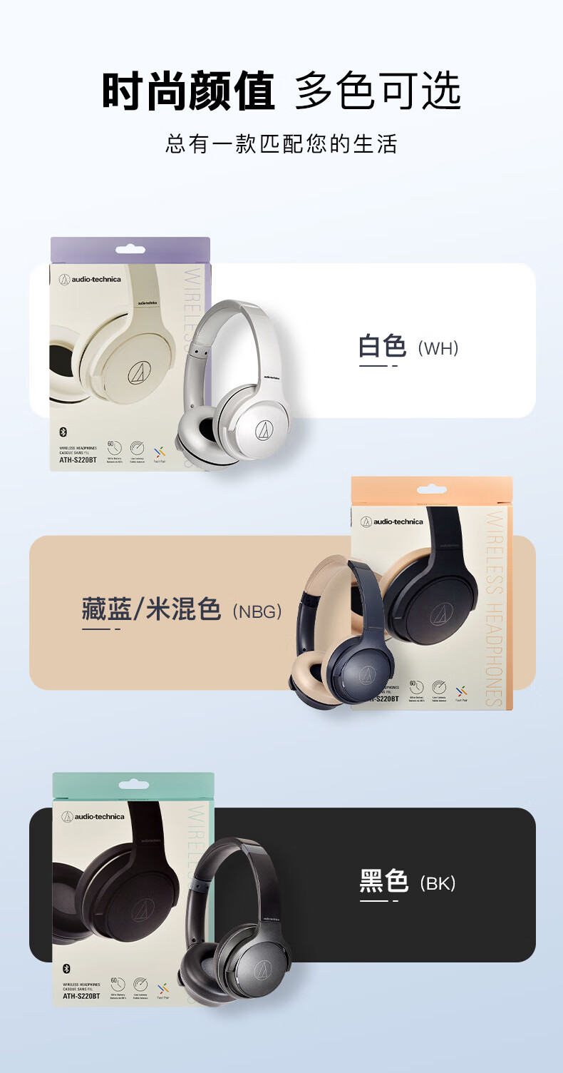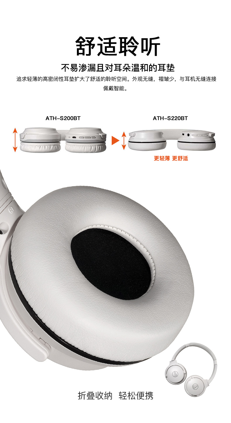 铁三角 S220BT 头戴式立体声无线蓝牙耳机 长久续航 音乐耳机 便携式 WH 政府补贴【保价11.11】