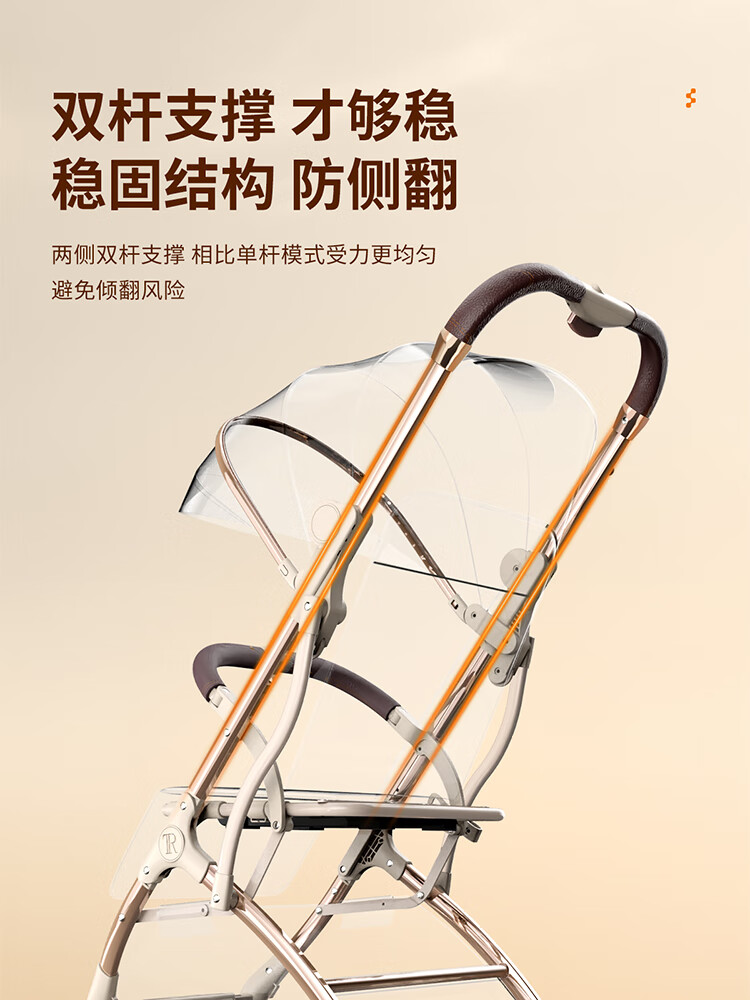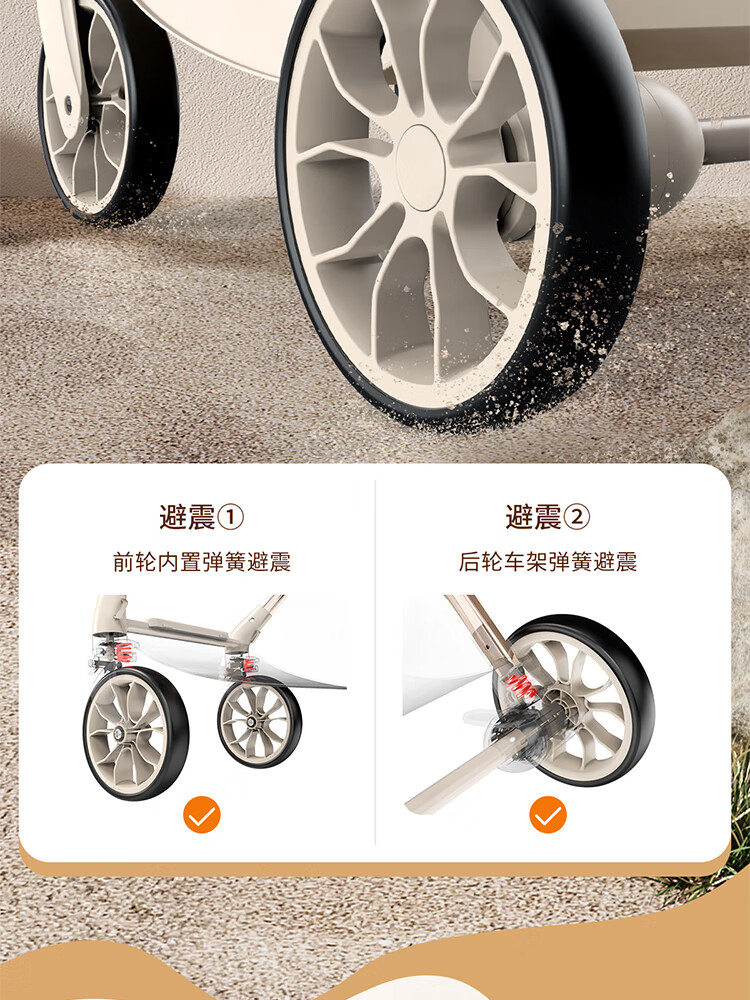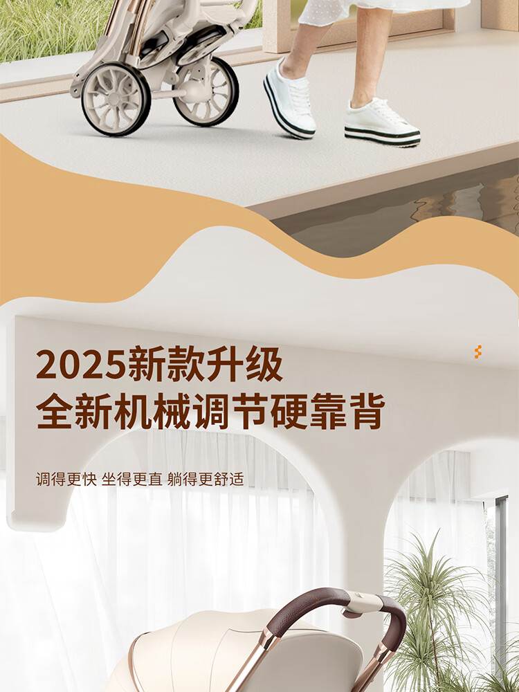 虎贝尔(HBR)遛娃神器轻便可折叠双向高景观可坐可躺婴儿推车城市漫步车黑白格