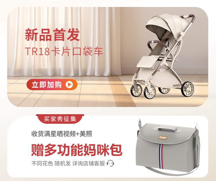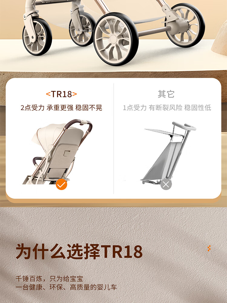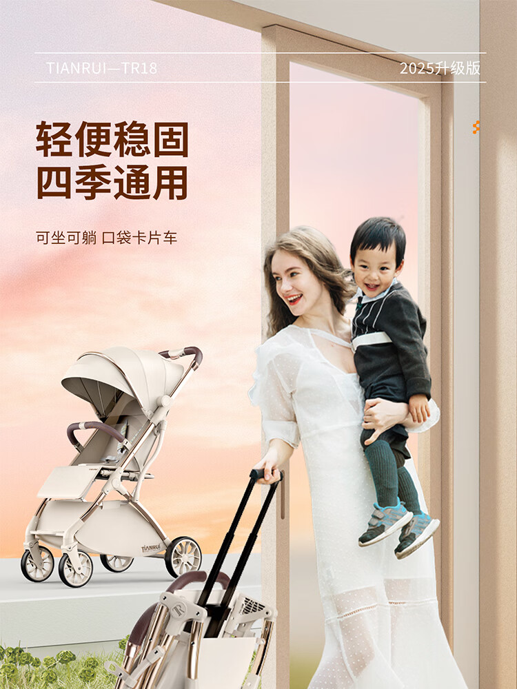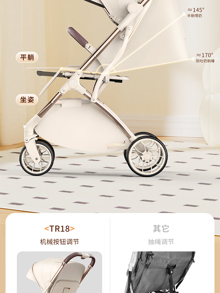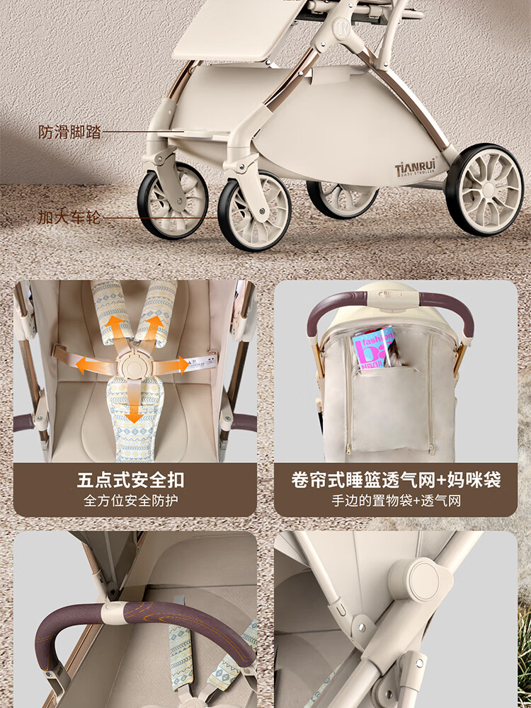 TianRui 婴儿推车轻便折叠婴儿车可坐可躺新生儿宝宝小巧遛娃手推车 Fun6代 -摩卡绿