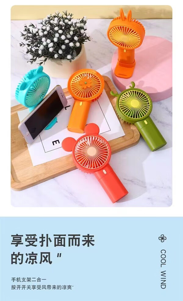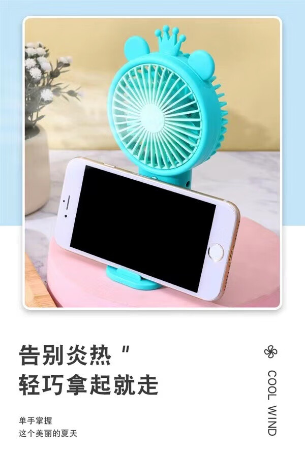 USB小风扇便携式USB迷你大风力随身携带充电风扇学生宿舍床上办公 【绿色】小菊礼品风扇+底座