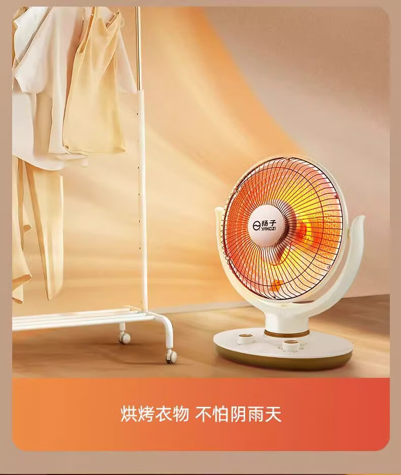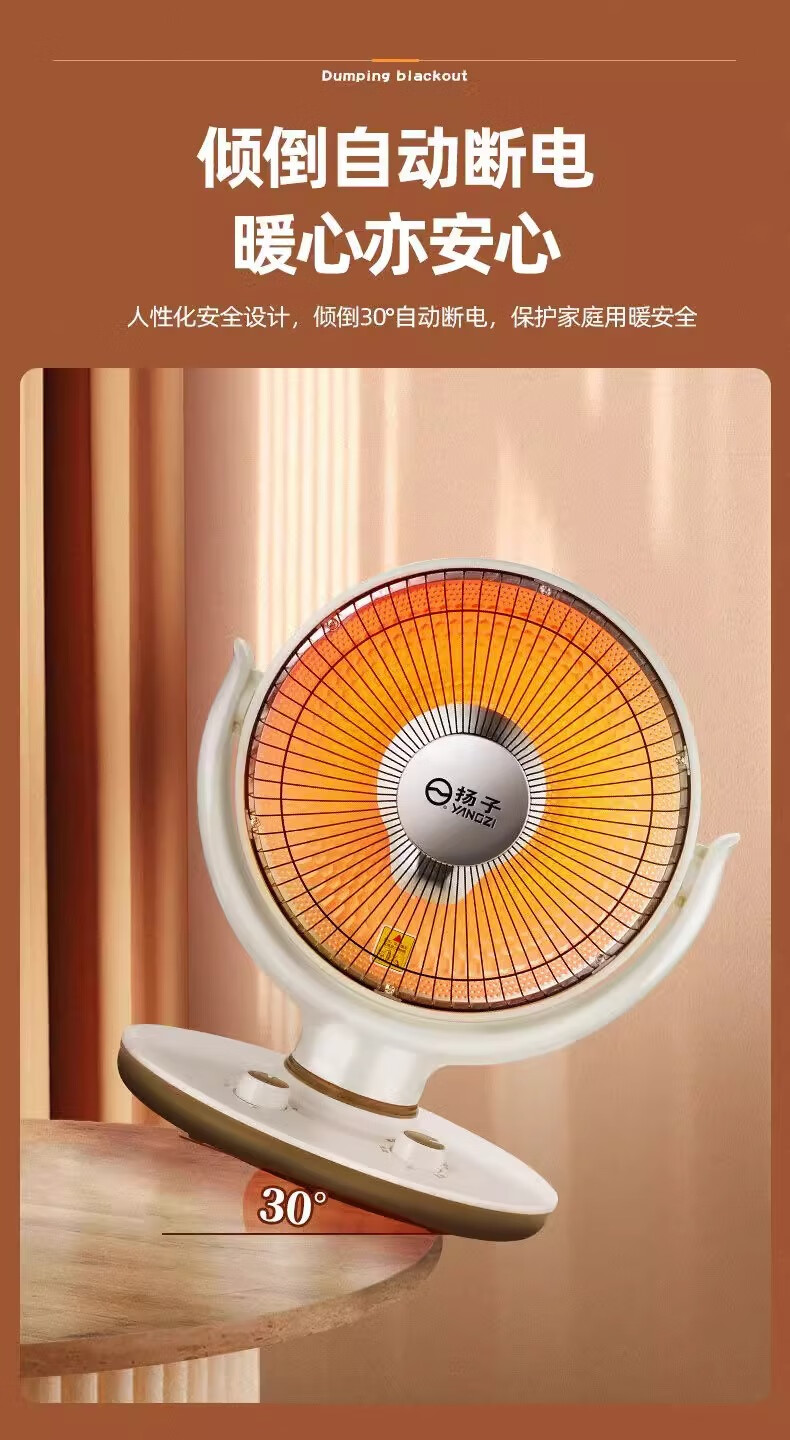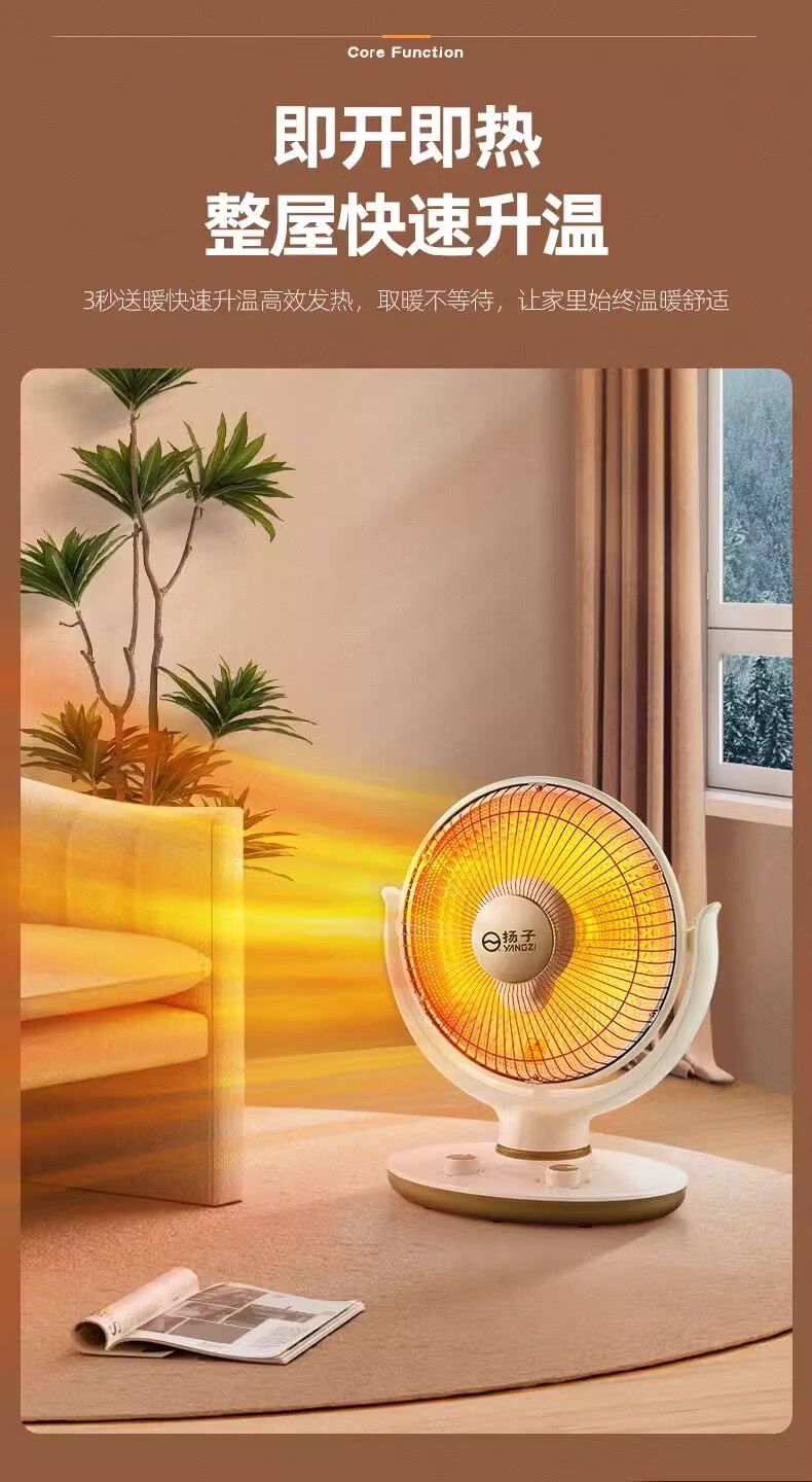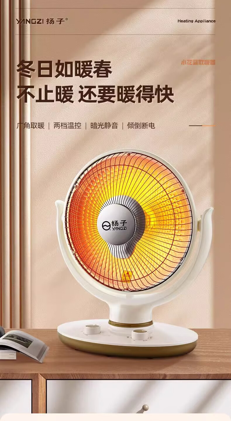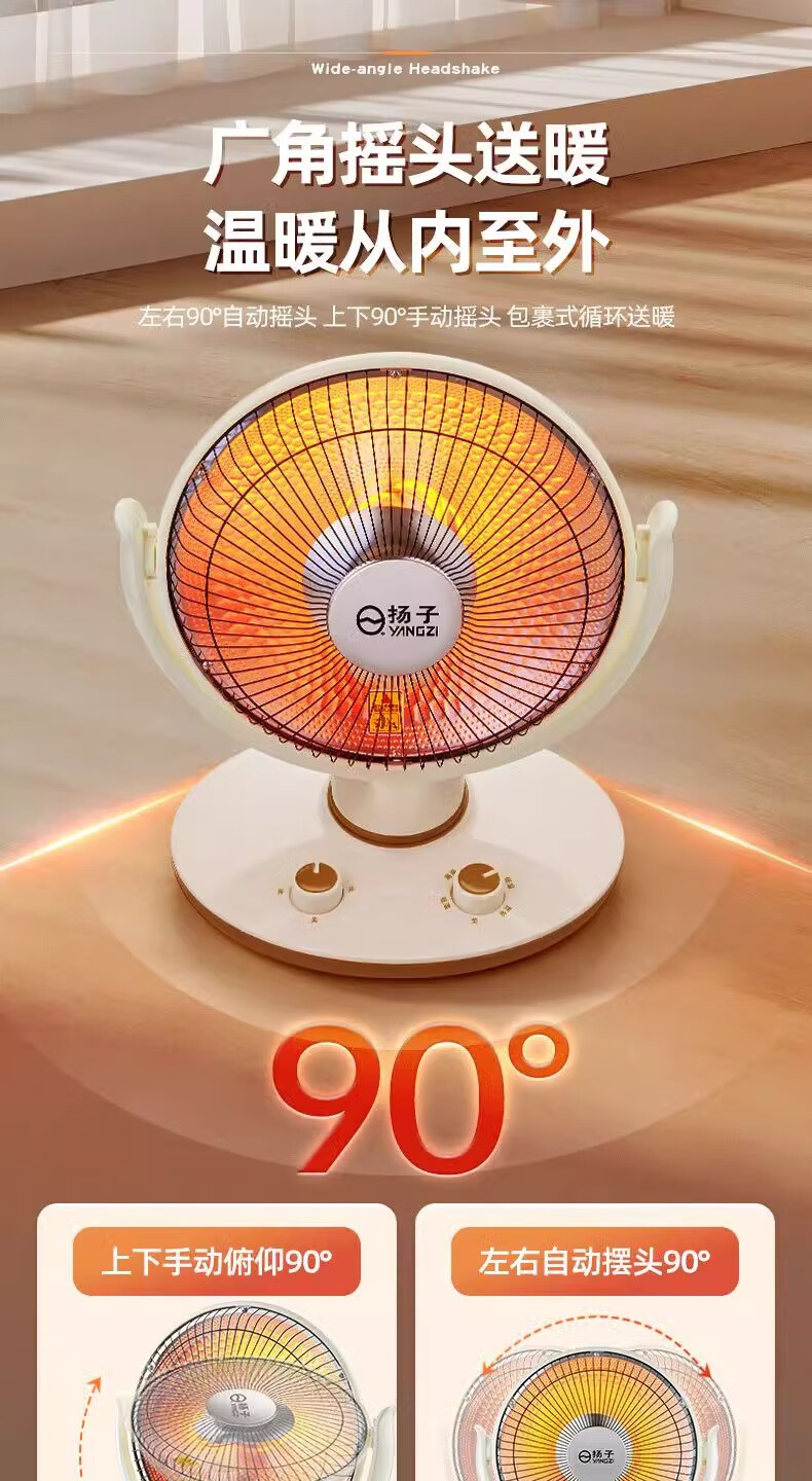 扬子小太阳取暖器家用节能省电台式烤火器电热扇电暖气速热烤火炉 米色大号升级摇头款喷塑网罩