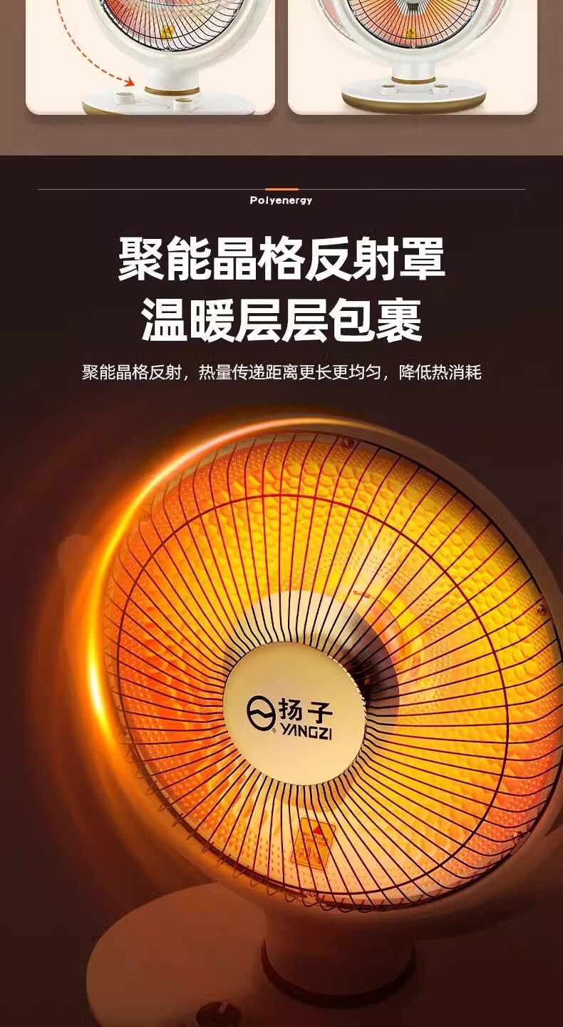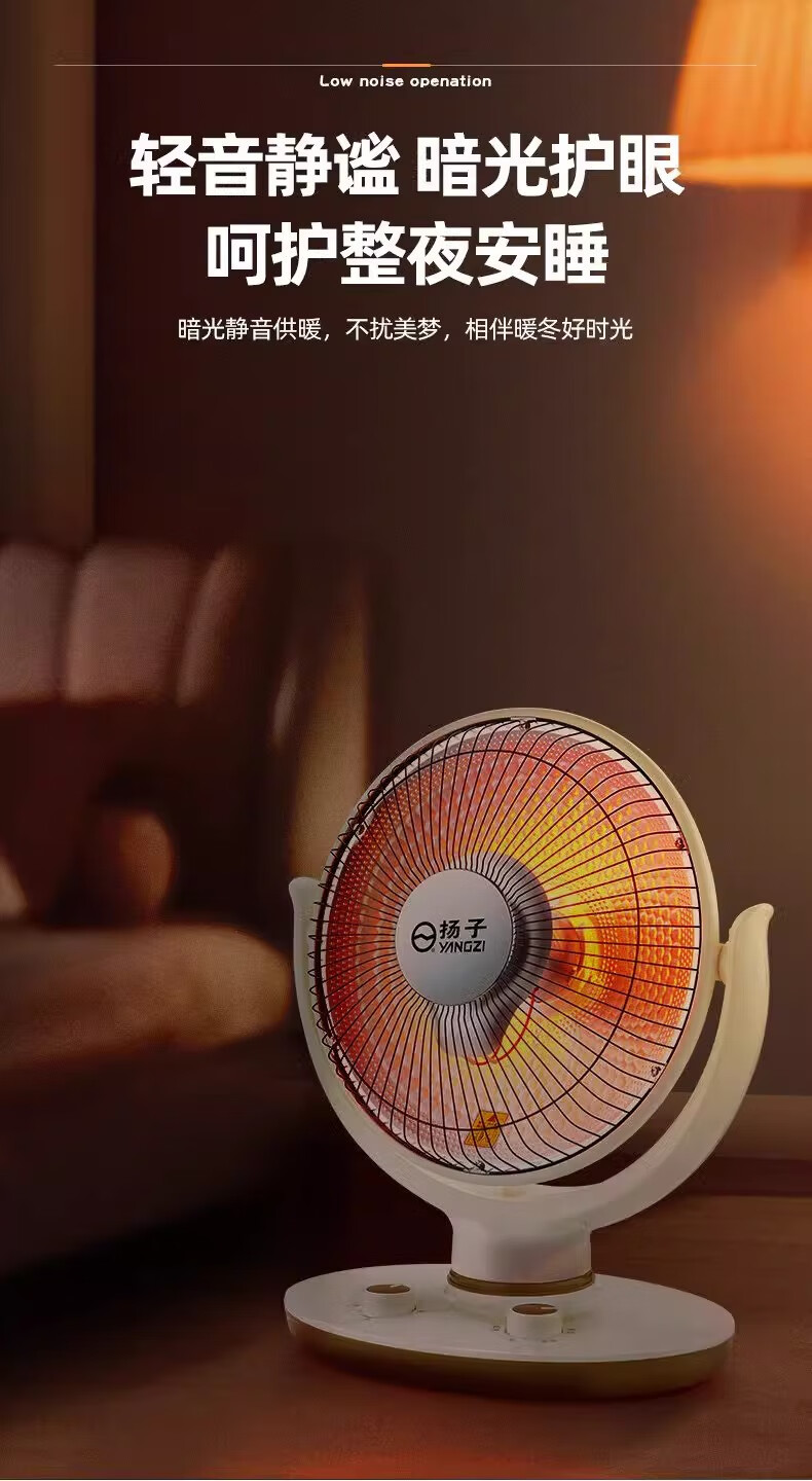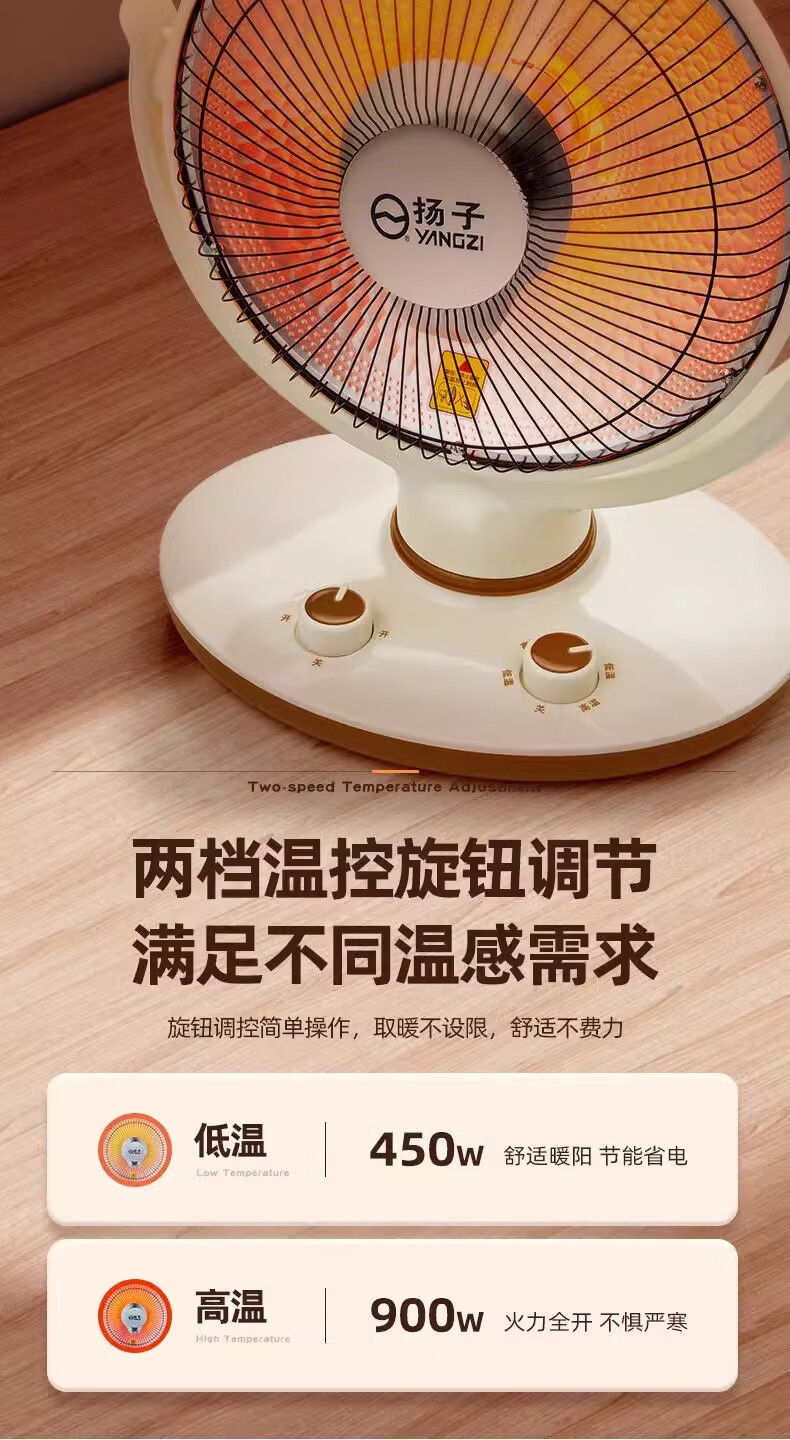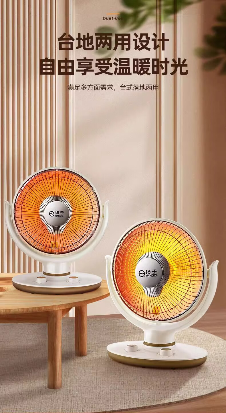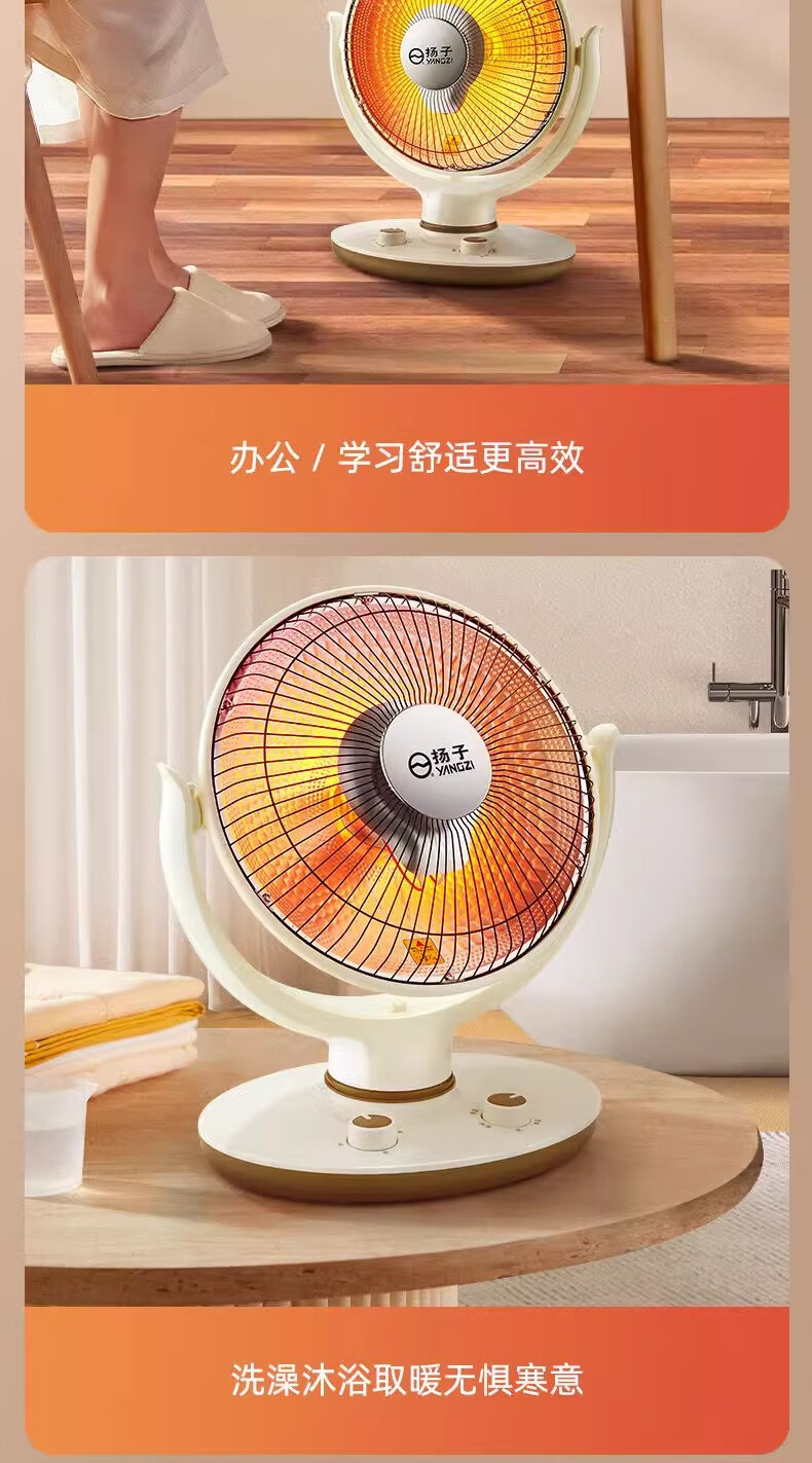 扬子小太阳取暖器家用节能省电台式烤火器电热扇电暖气速热烤火炉 米色大号升级摇头款喷塑网罩