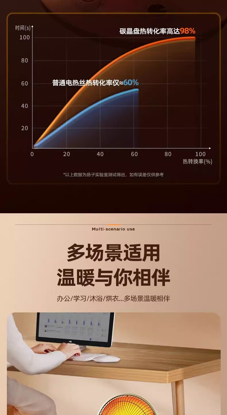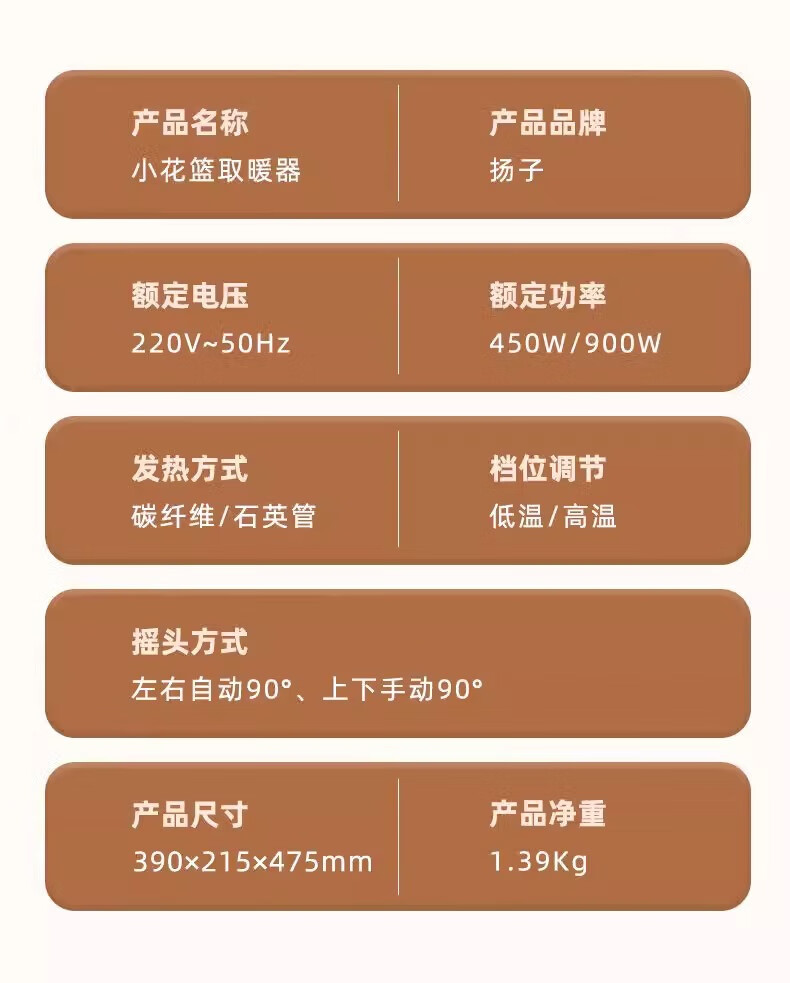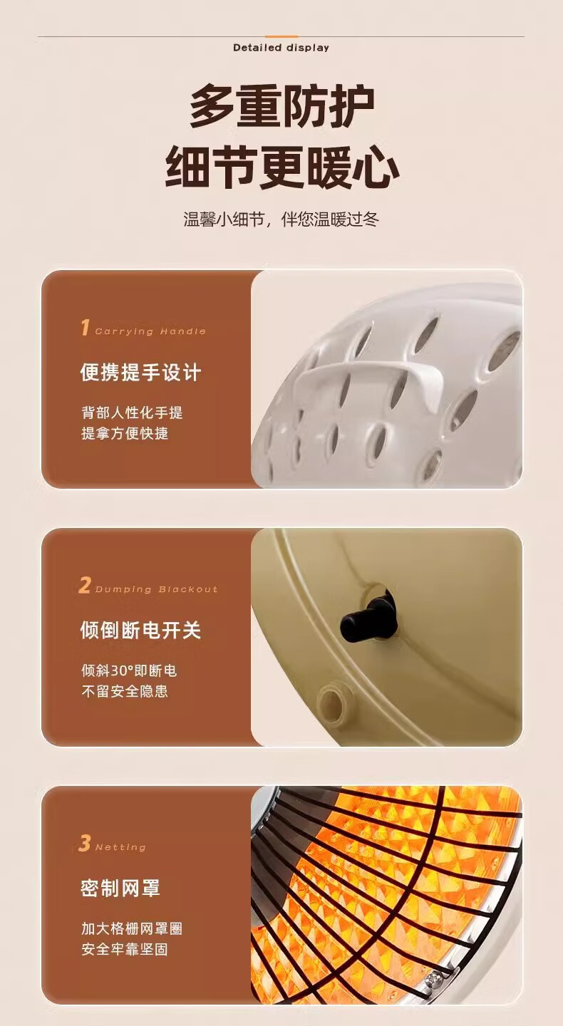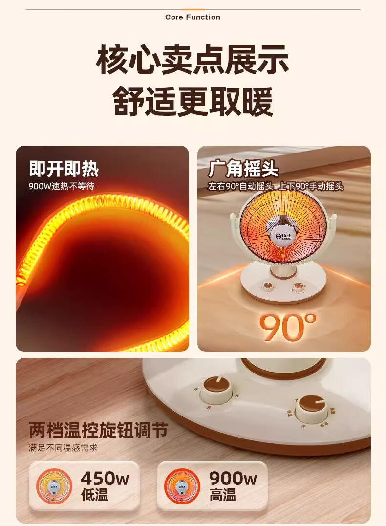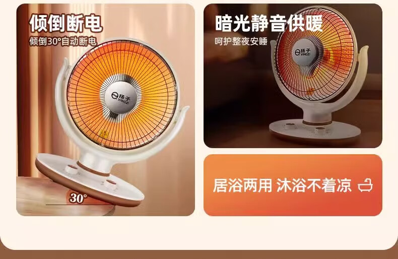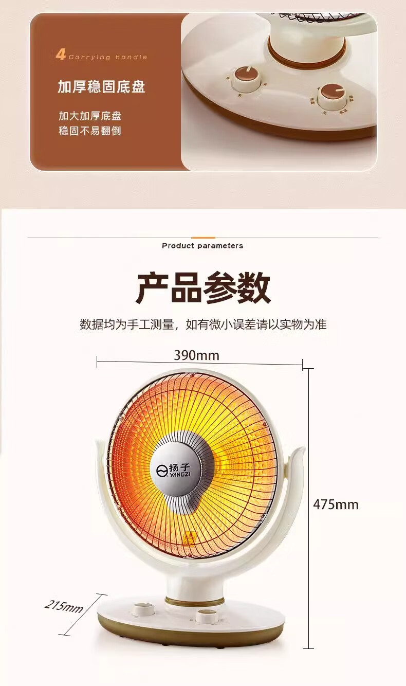 扬子小太阳取暖器家用节能省电台式烤火器电热扇电暖气速热烤火炉 米色大号升级摇头款喷塑网罩