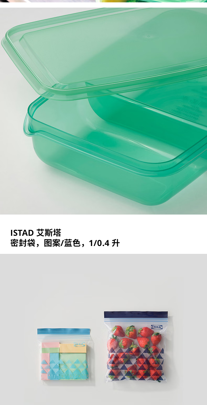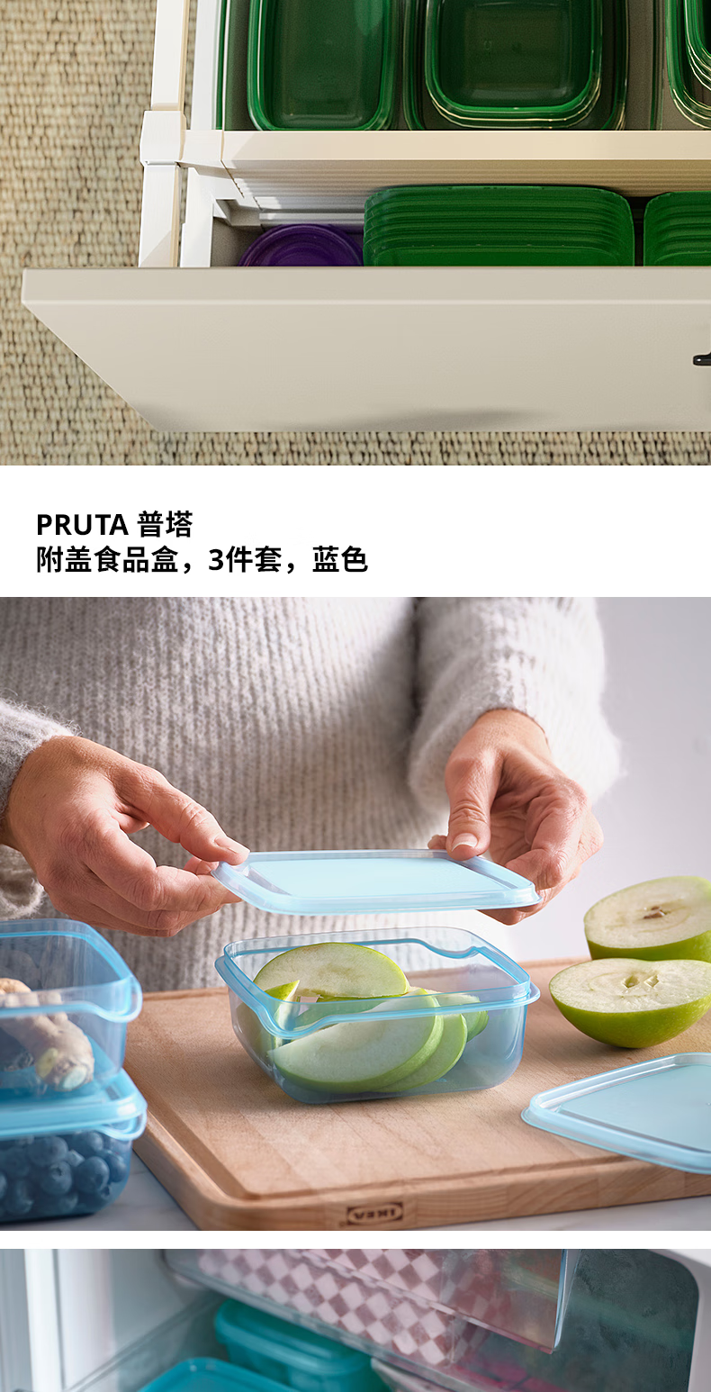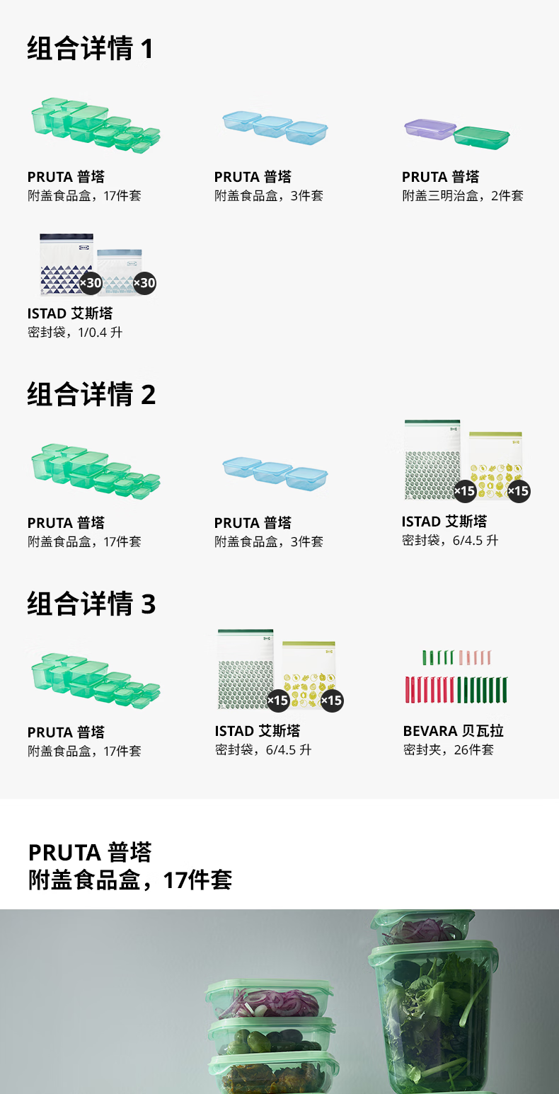 宜家(IKEA)【热销套组】PRUTA 普塔附盖食品盒保鲜收纳组合 食品盒密封袋密封夹82件组合