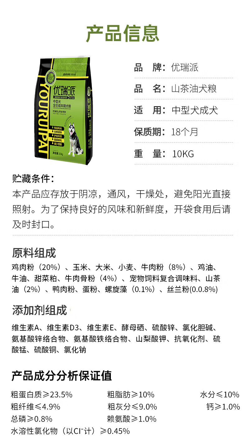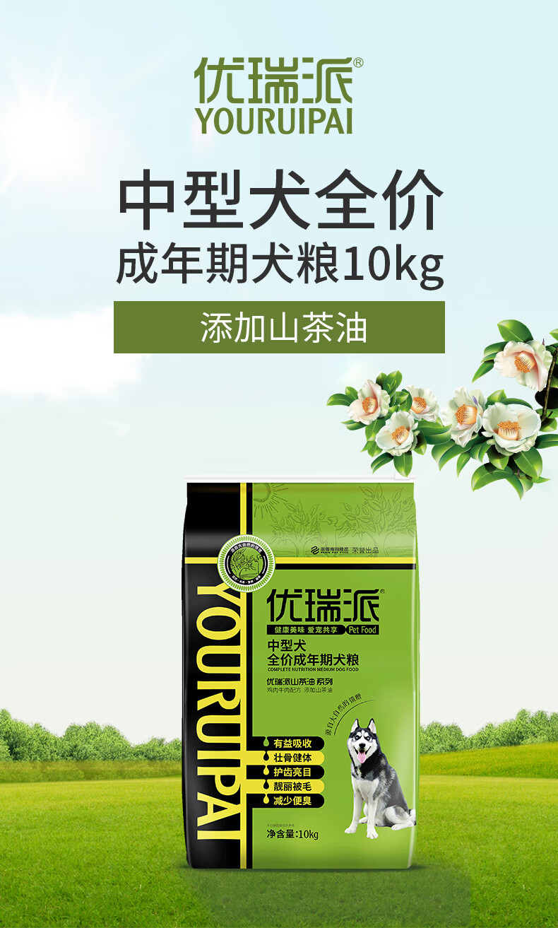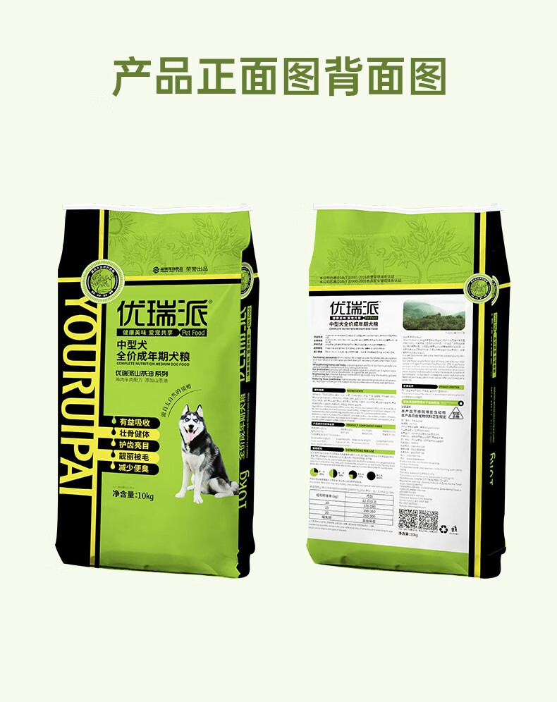 优瑞派狗粮 中大型犬 哈士奇金毛拉布拉多边牧柴犬 中型犬成犬粮丨20斤丨送狗粮1斤