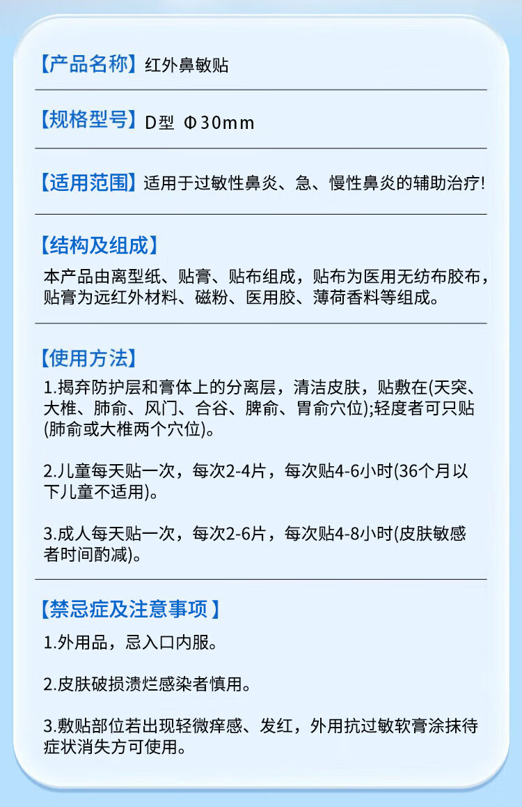 修正D型Φ30mm红外鼻敏贴过敏性鼻窦炎成人专用鼻痒塞通气鼻贴