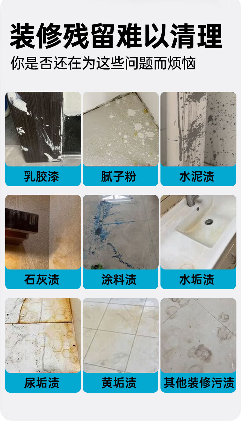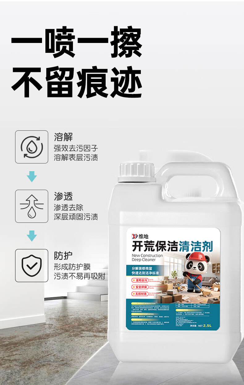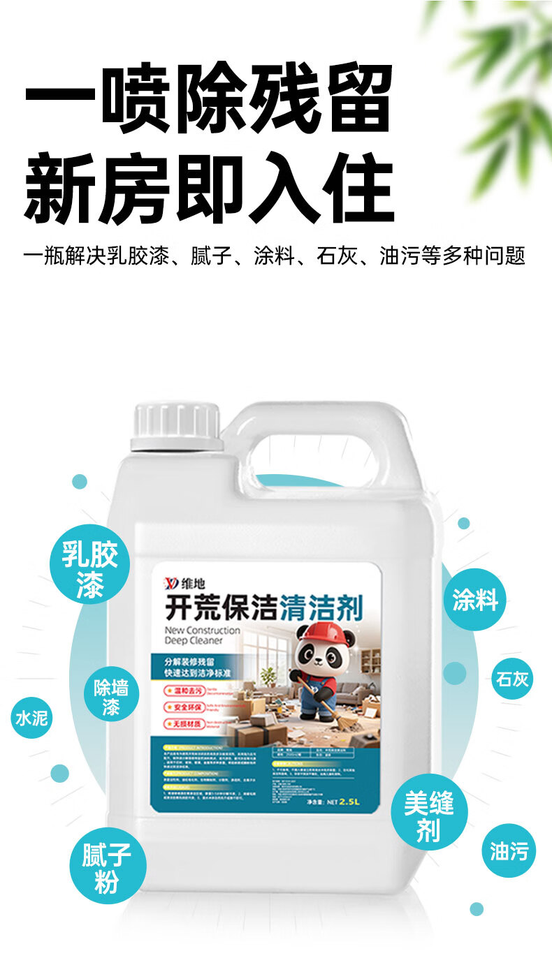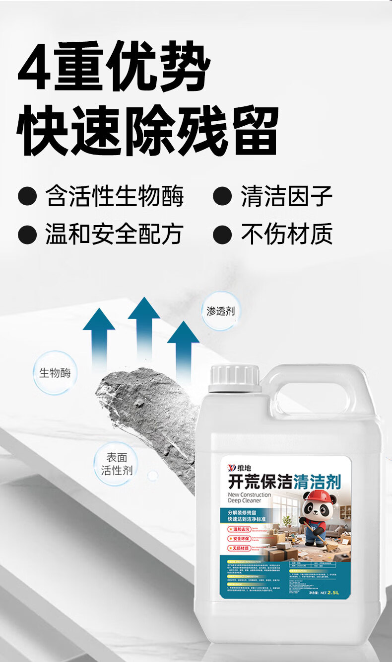 维地开荒保洁清洁剂乳胶漆腻子粉水泥涂料清洗剂瓷砖地板残留去除剂 开荒保洁清洁剂2500ml+工具