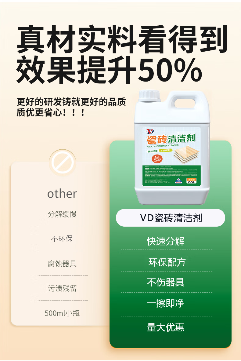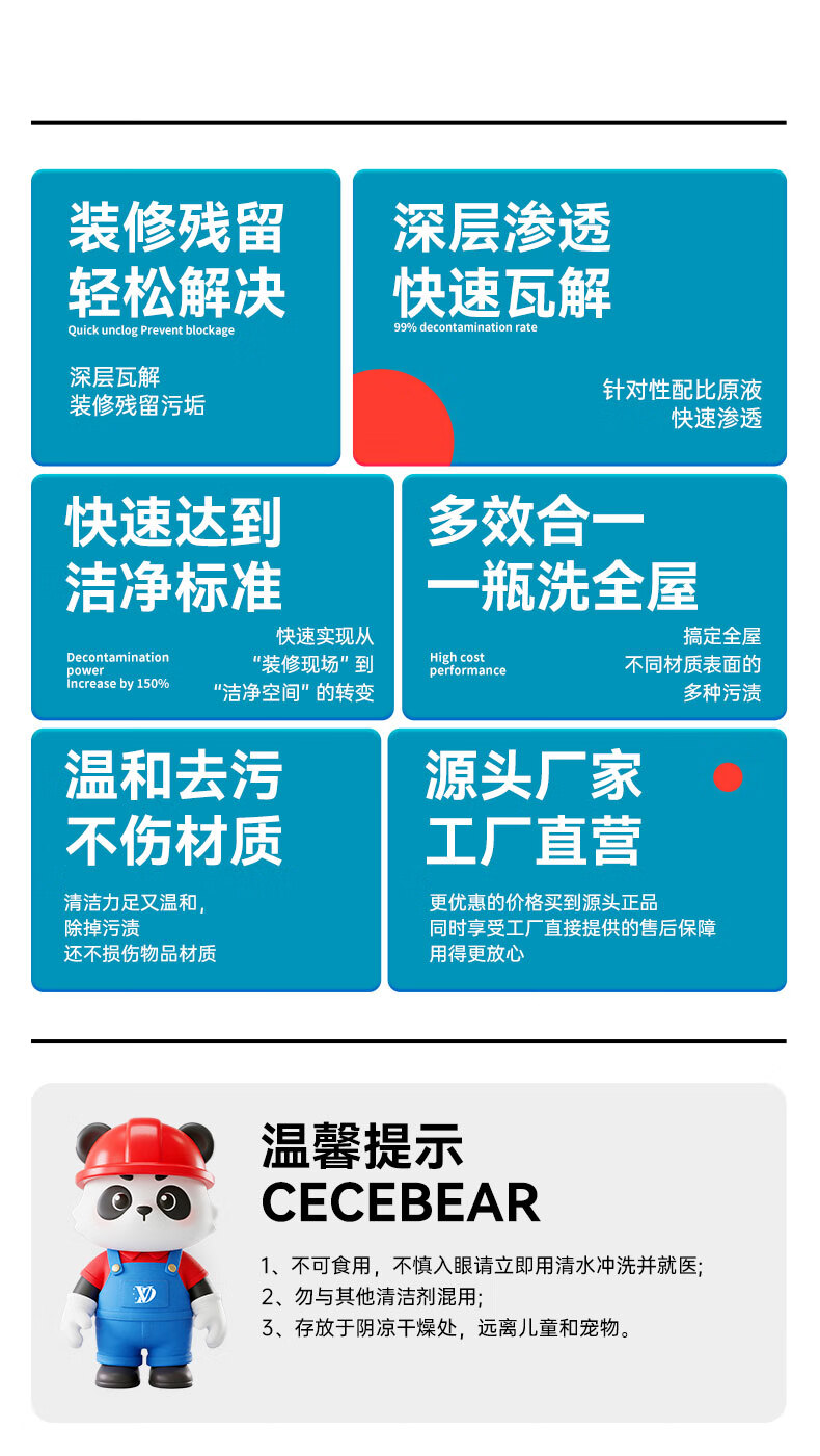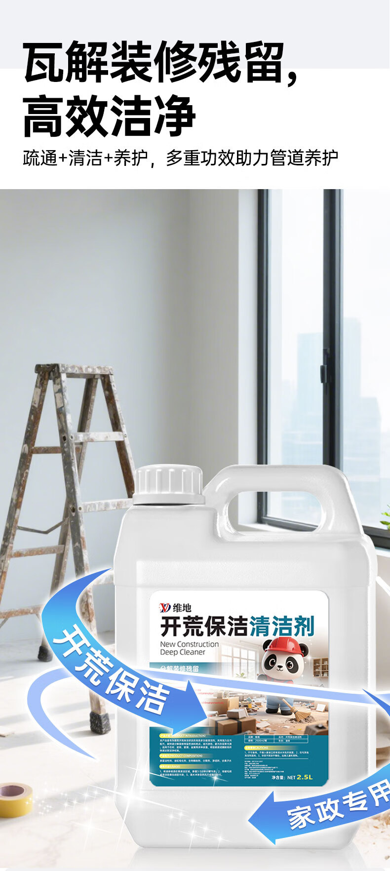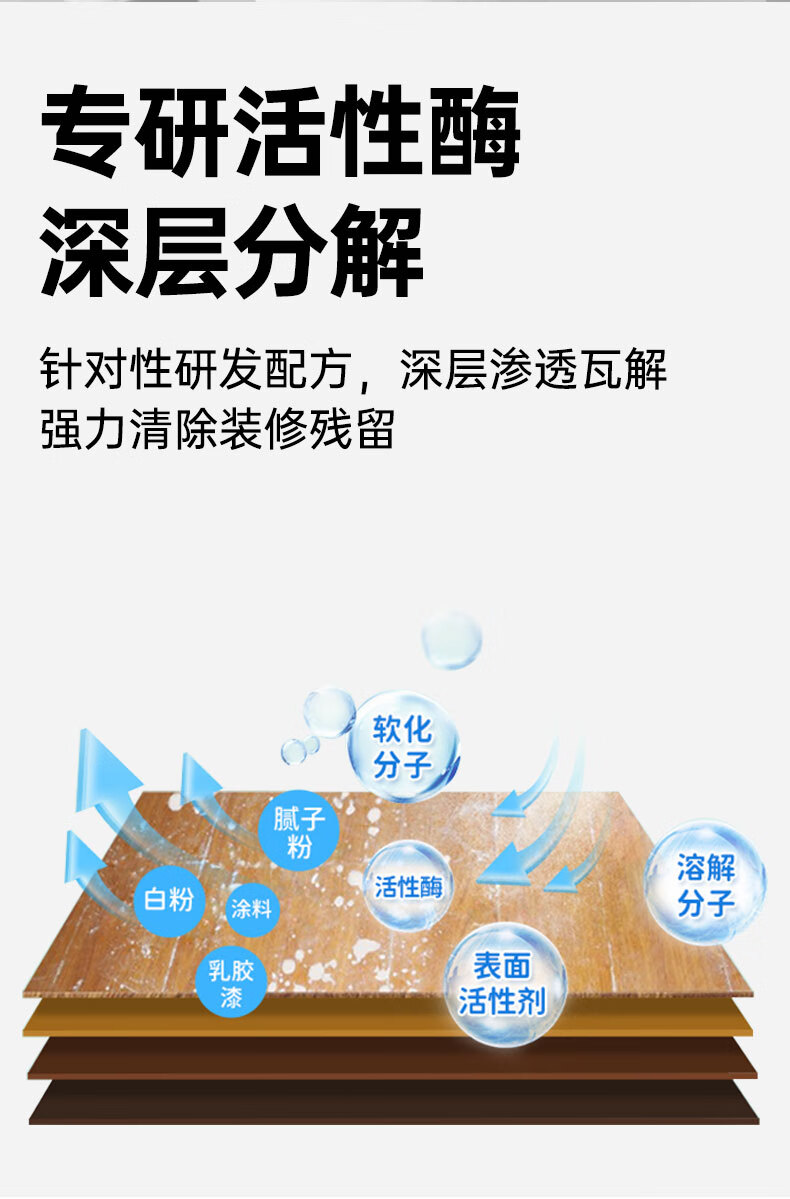 维地开荒保洁清洁剂乳胶漆腻子粉水泥涂料清洗剂瓷砖地板残留去除剂 开荒保洁清洁剂2500ml+工具